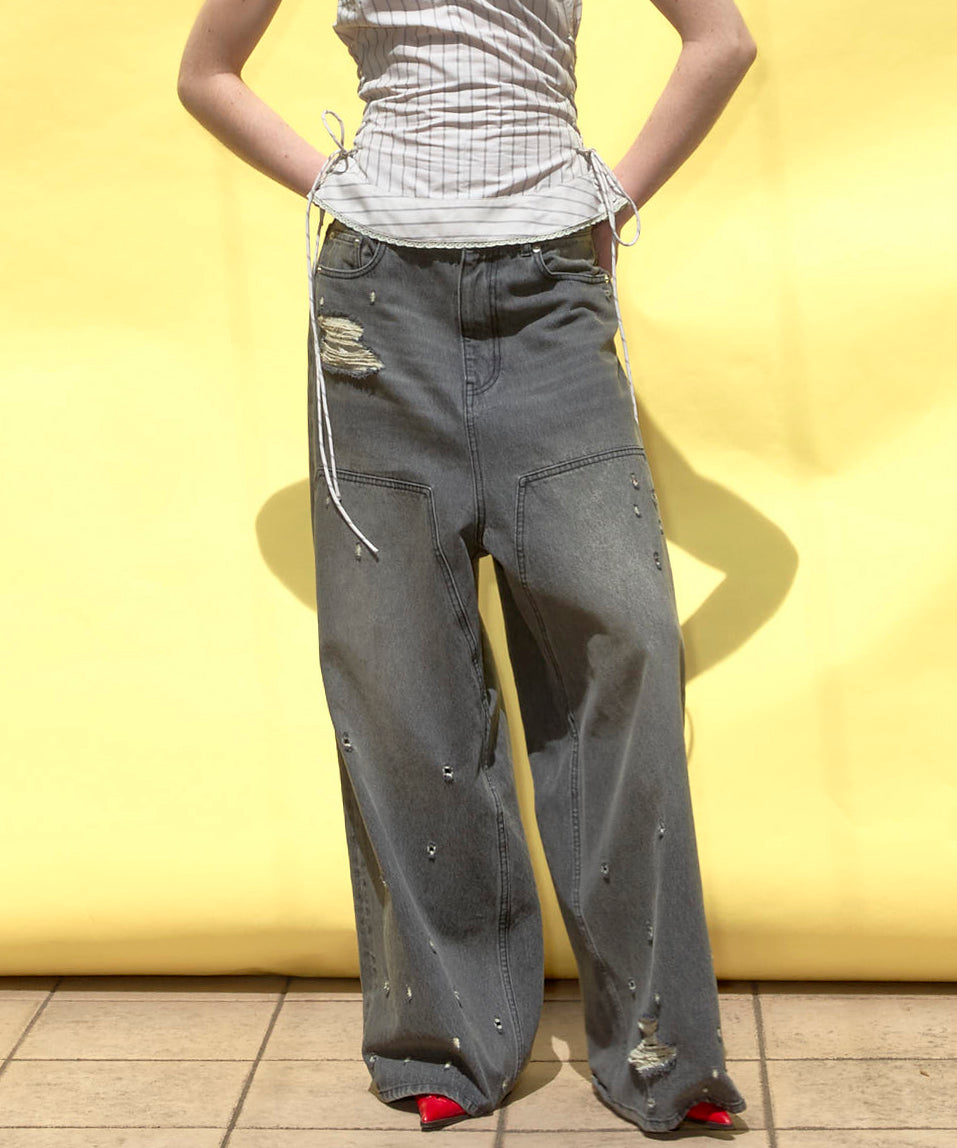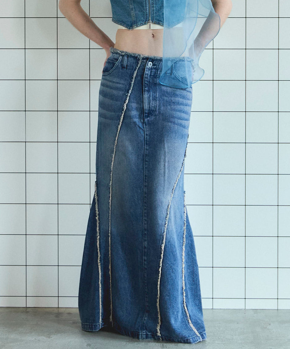 【SALE】Docking Lace Tulle Frill Maxidresses