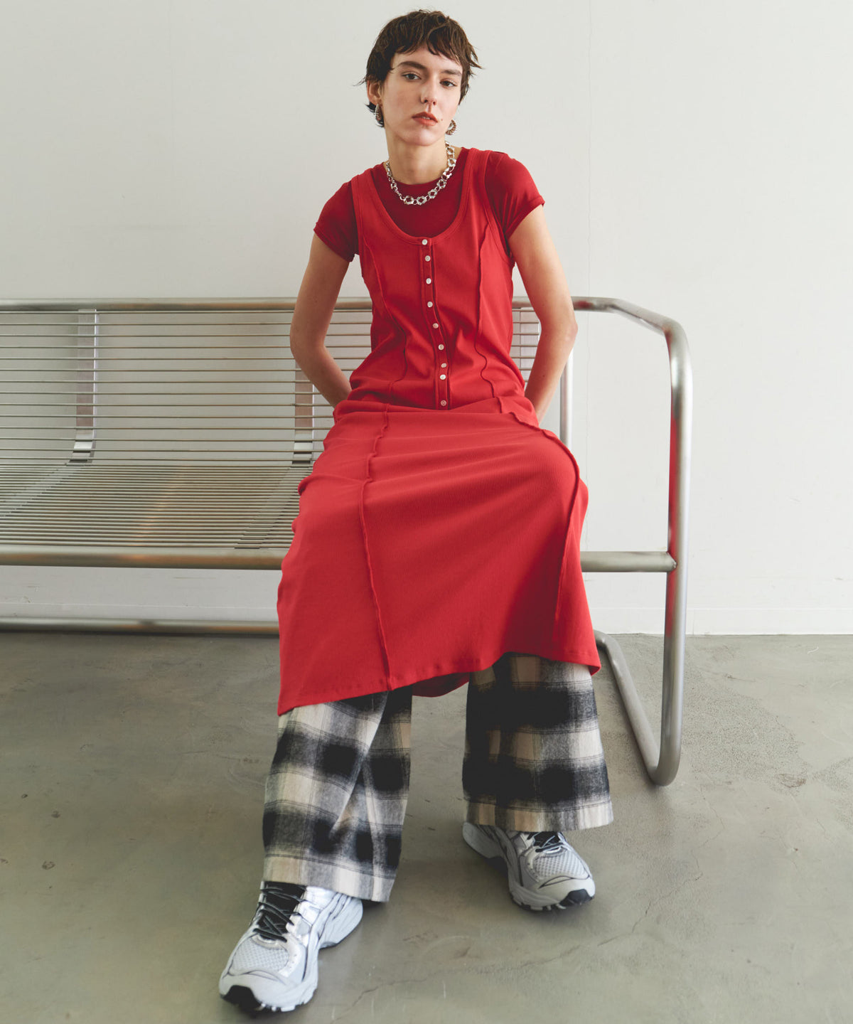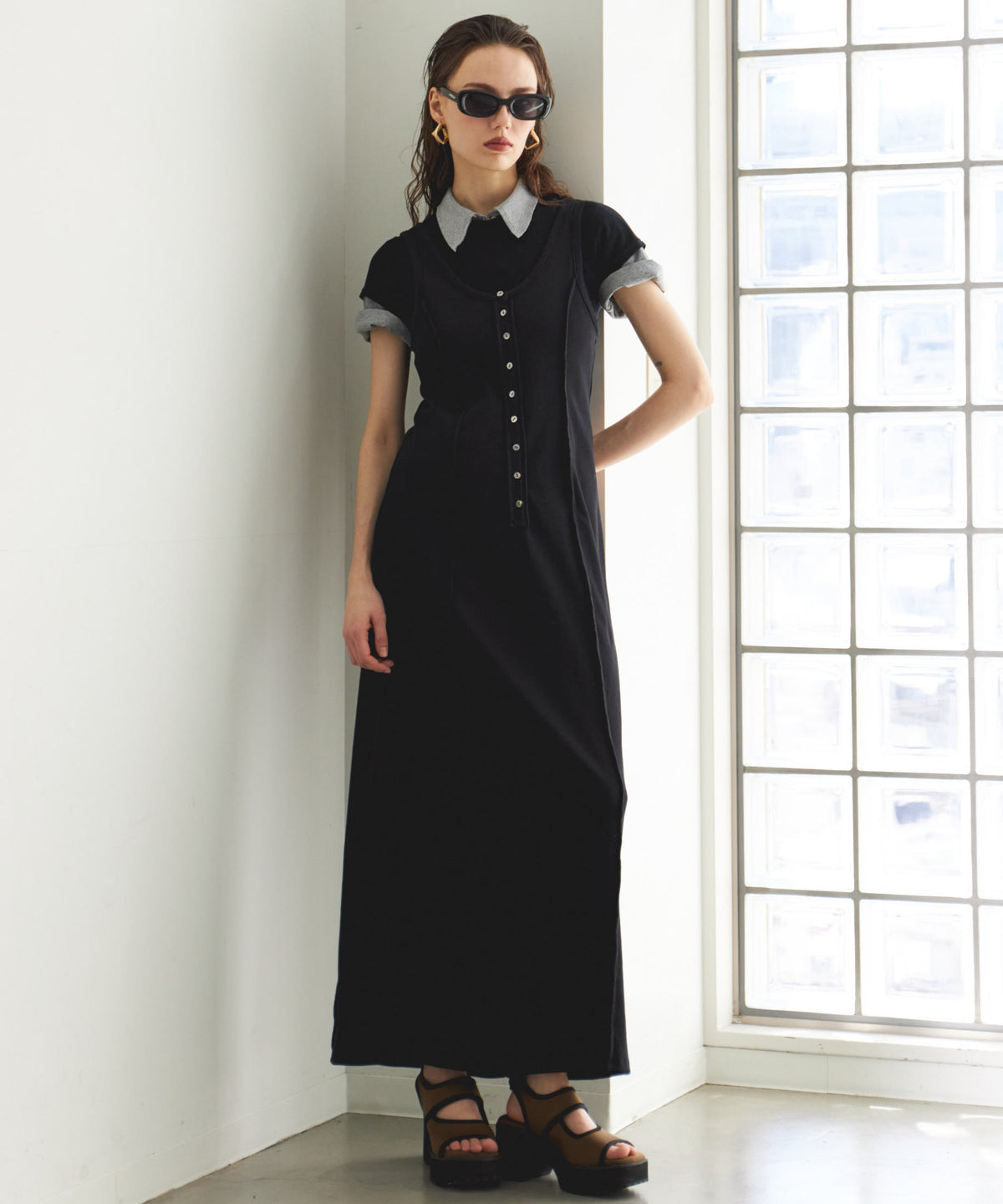 【SALE】Henry Neck Layered Cut And Sew Dress