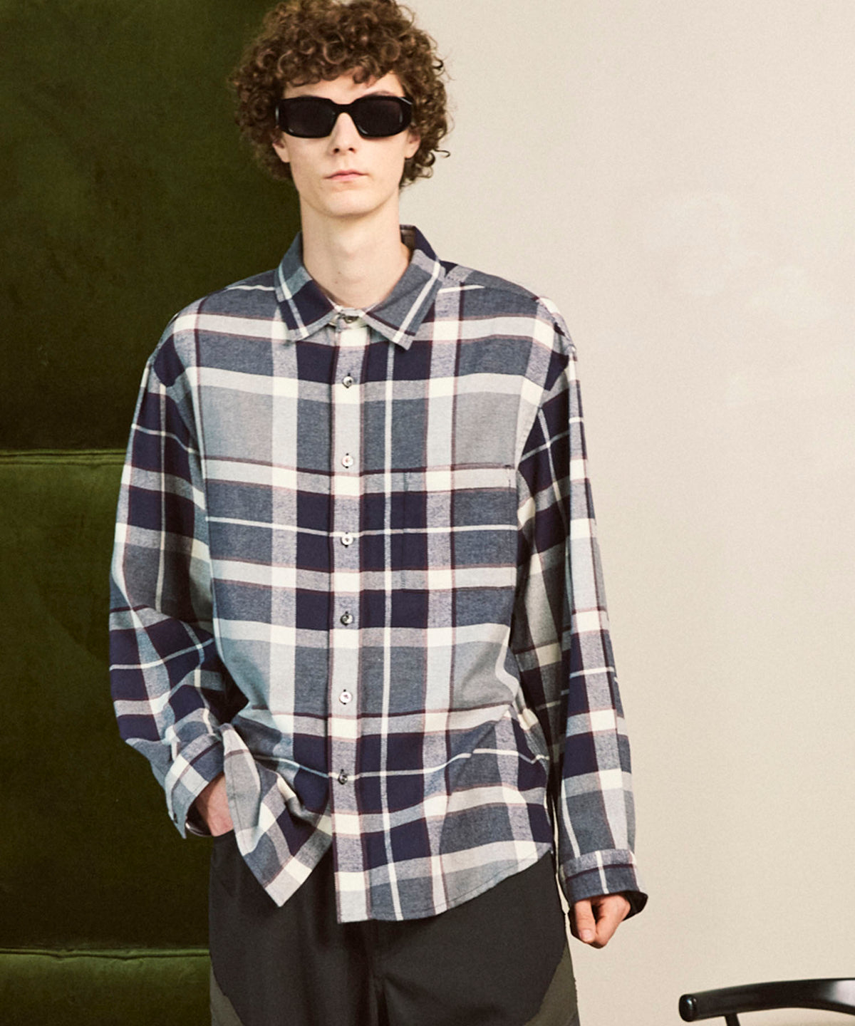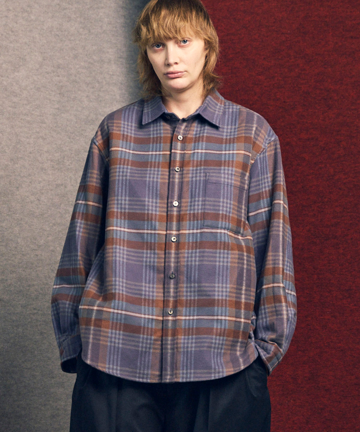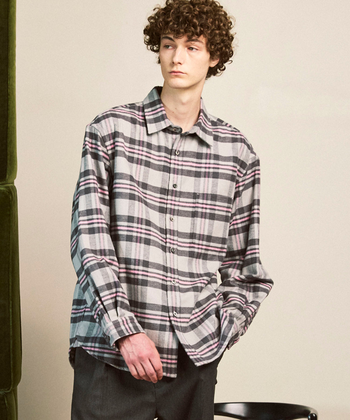 【Italian Dead Stock Fabric】Prime-Over Regular Collar Heavy-Weight Flannel Shirt
