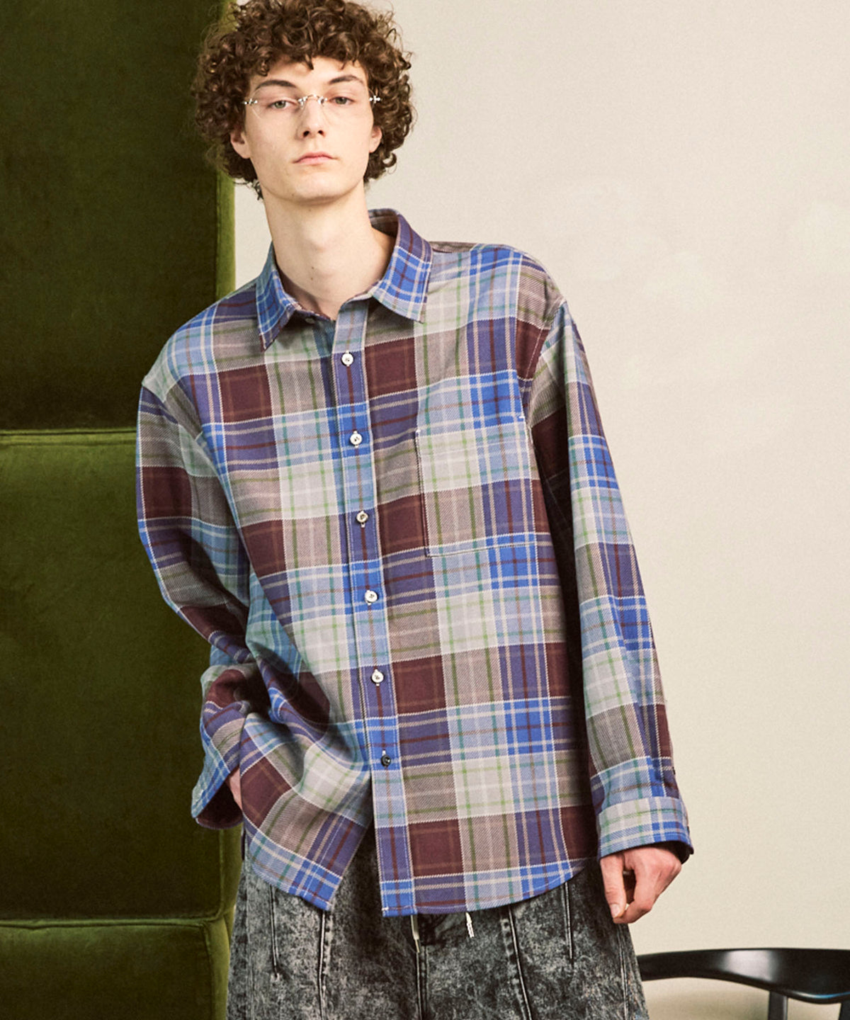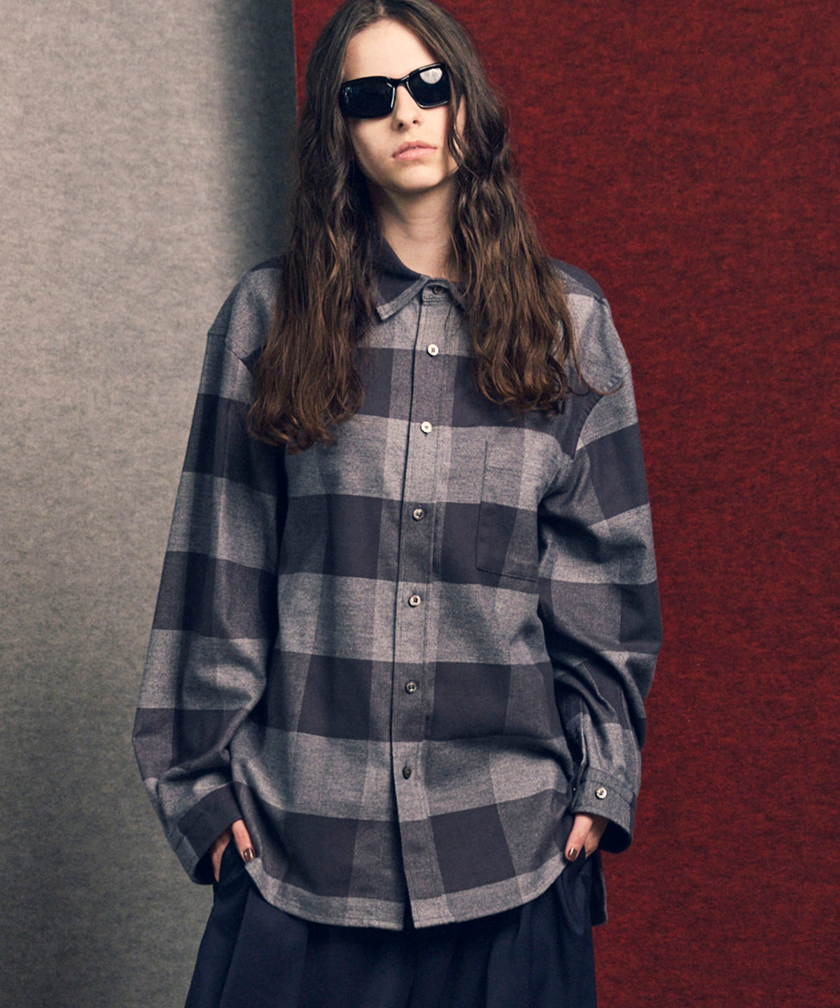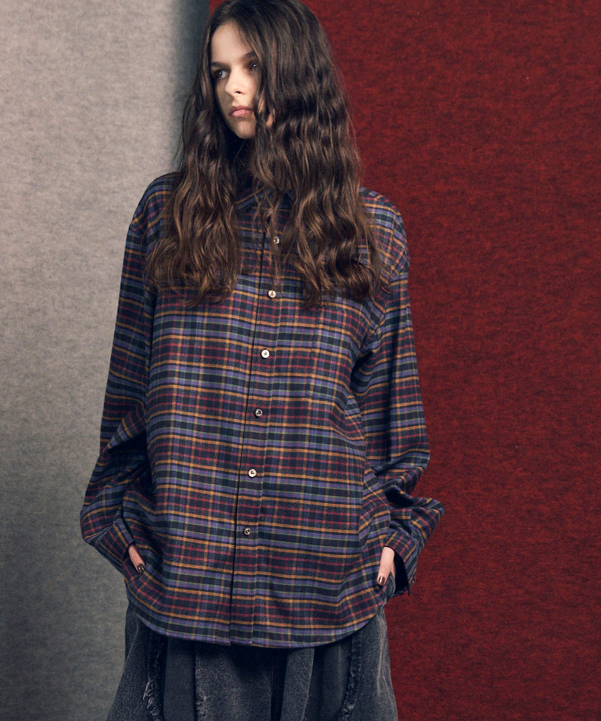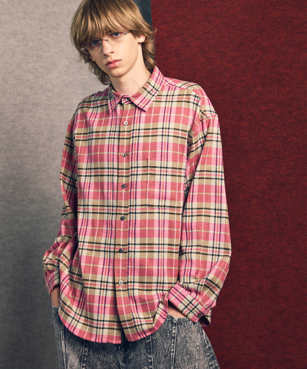 【Italian Dead Stock Fabric】Prime-Over Regular Collar Heavy-Weight Flannel Shirt