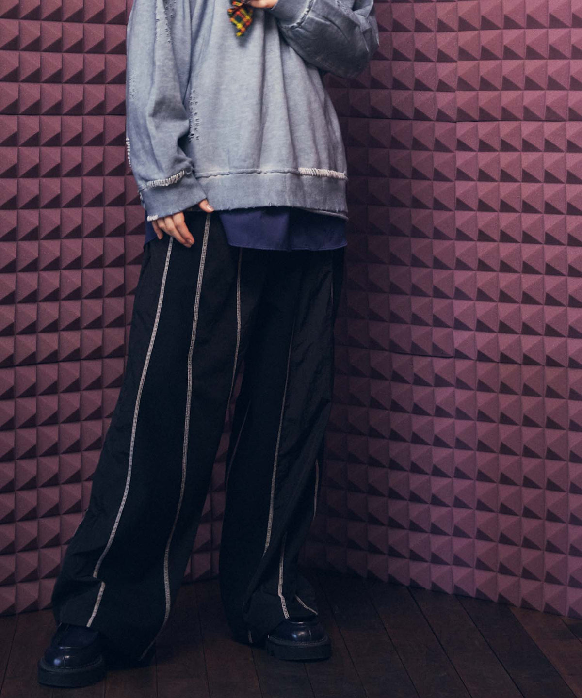 Omega Rib Pin Tuck Wide Pants