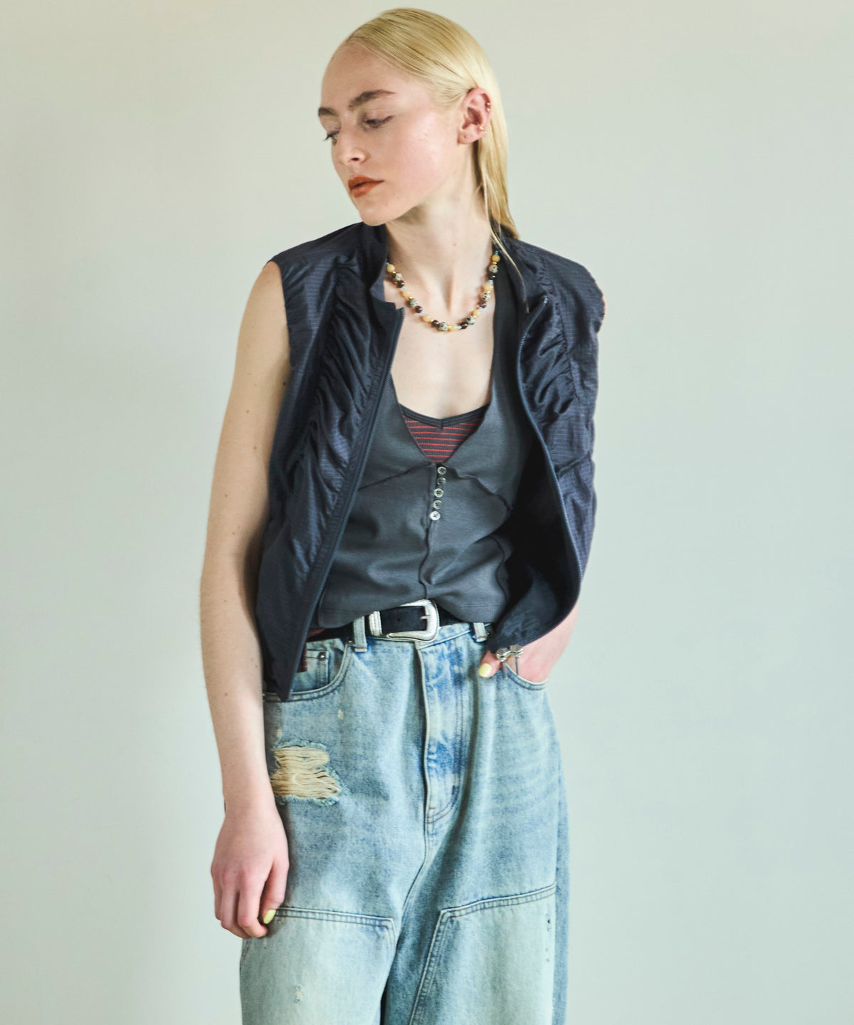 [25WINTER PRE-ORDER] Wave Shirring Tulle Puffer Jacket