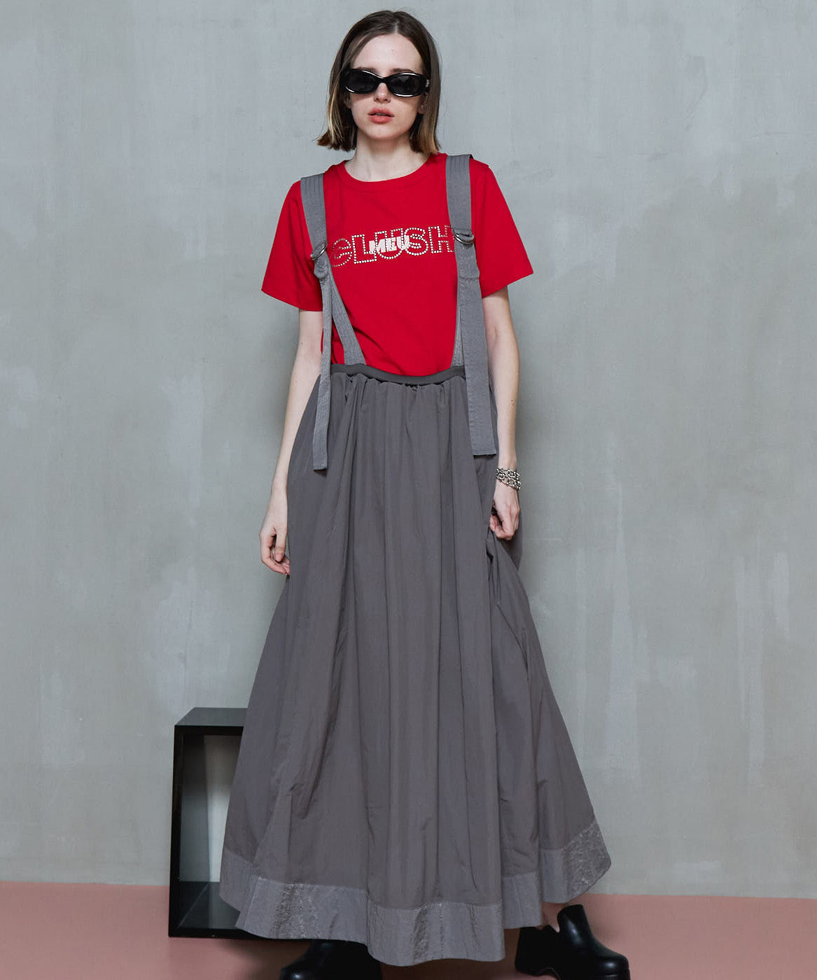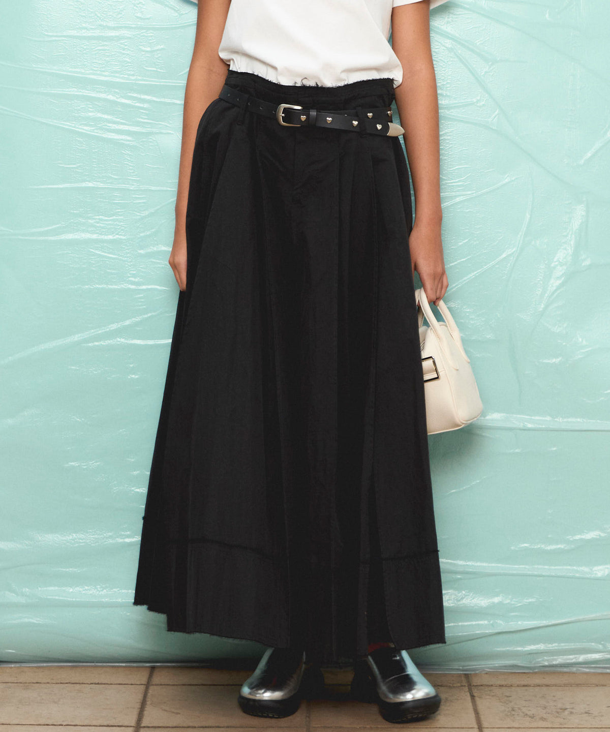 Belted 2way Flower Hem Volume Skirt