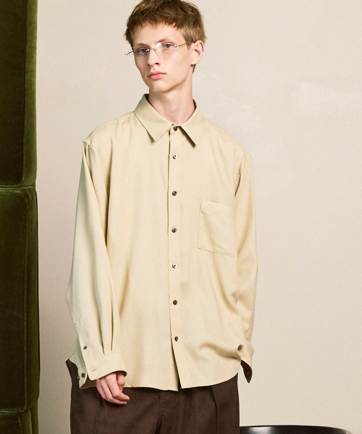 4 Colors Chambray Washable Wool Prime-Over Regular Collar Shirt