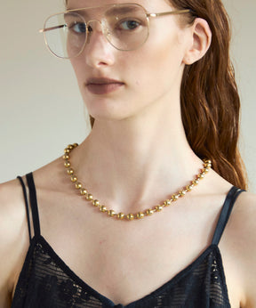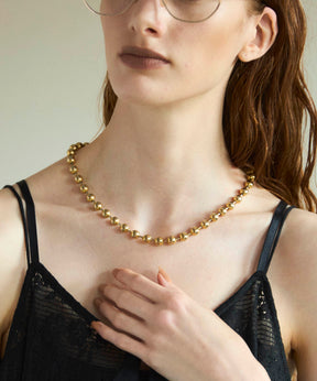 This chain necklace is made of small balls that are not too strong insightful and add a subtle touch to the chest.
