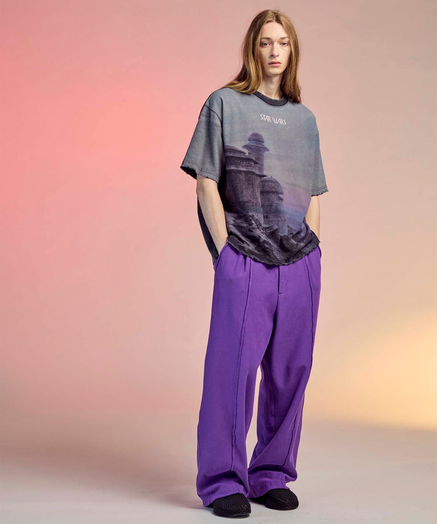 The plain sweatpants, which tend to be monotonous, are created with a rich expression, and the loungewear that is typical of sweatpants is beautifully wiped out.