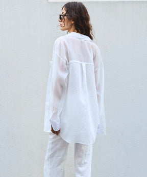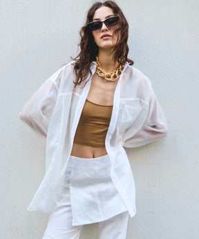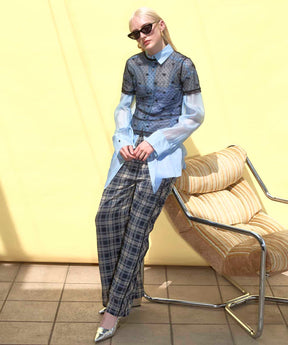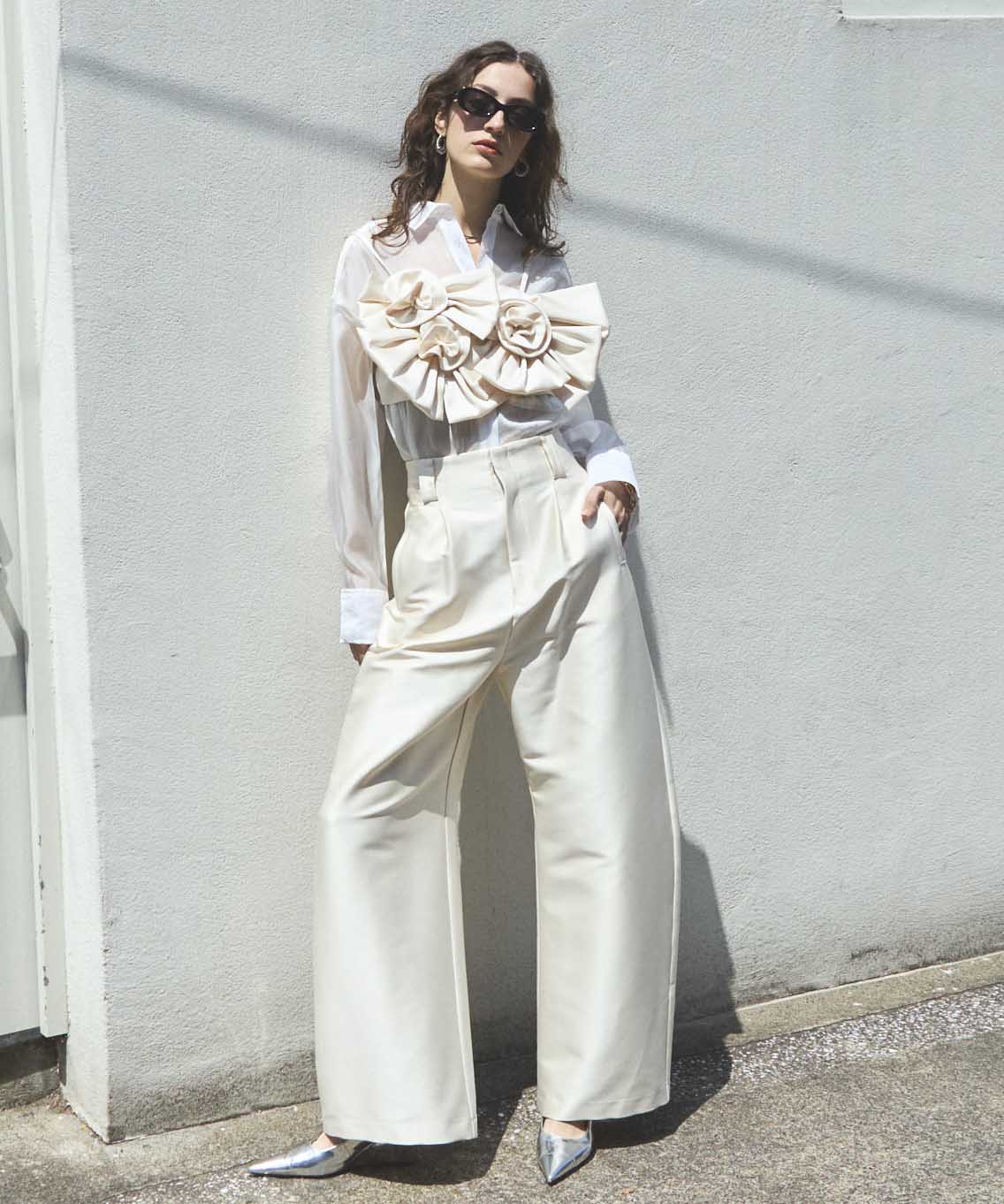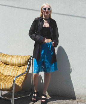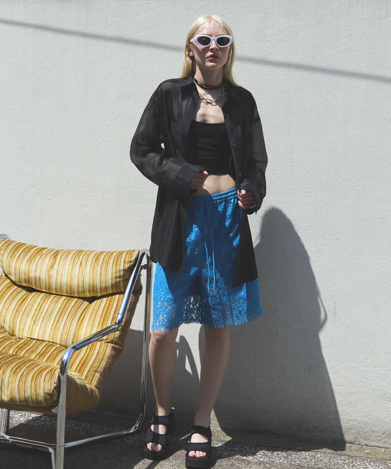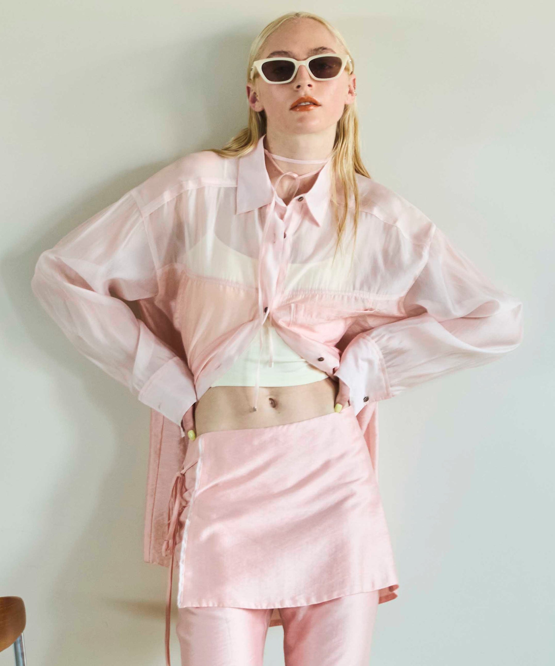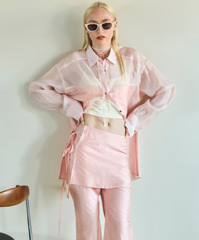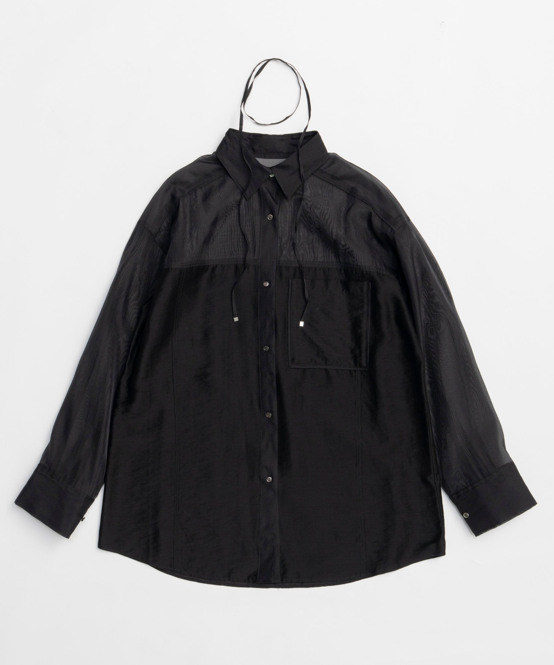 We docked sheer material with a firm feel and sheer material with a drape feel. The sheer material has a drape and is packed with Tencel at a high blend ratio, making it soft to the touch and extremely comfortable to wear. It is light and can be used as a measure to protect against air conditioning in the summer.