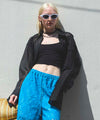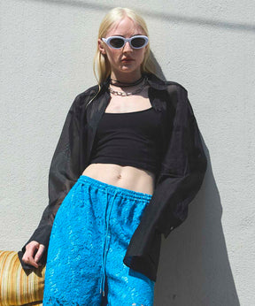 The chest is made of sheer material, which is highly transparent, so it is recommended to layer it with a logo T-shirt or camisole.
