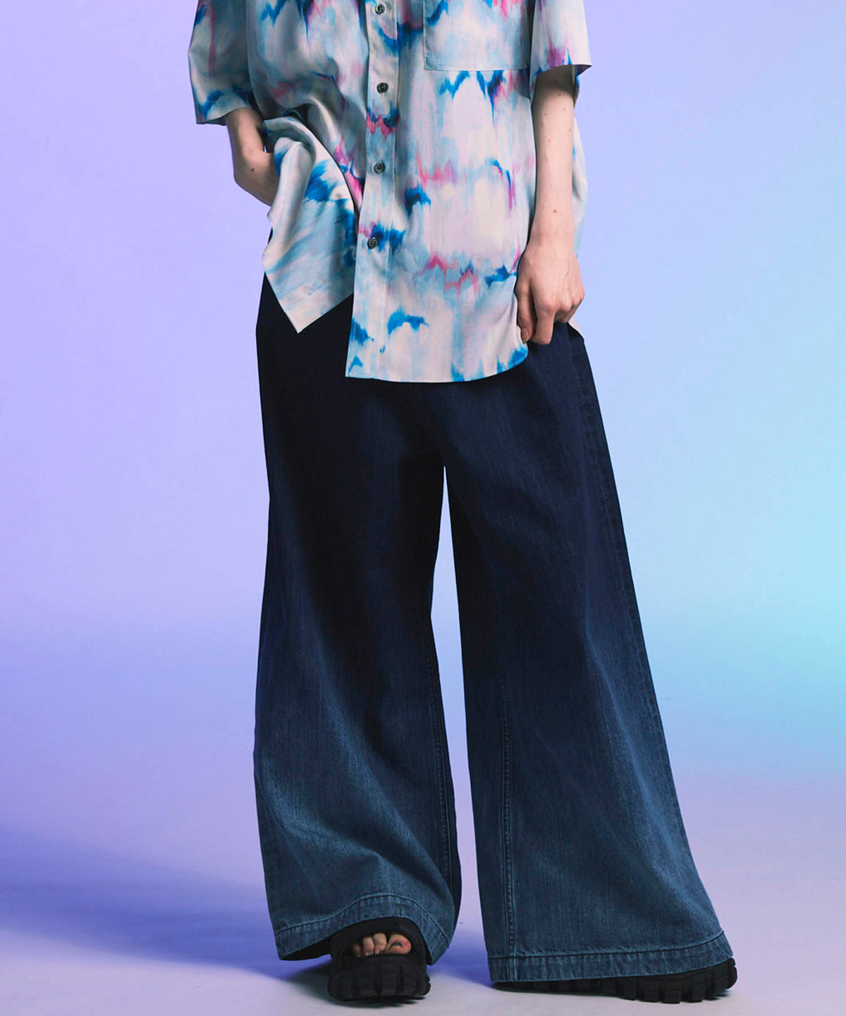 구부러진 스위치 넓은 바지를 모으십시오
