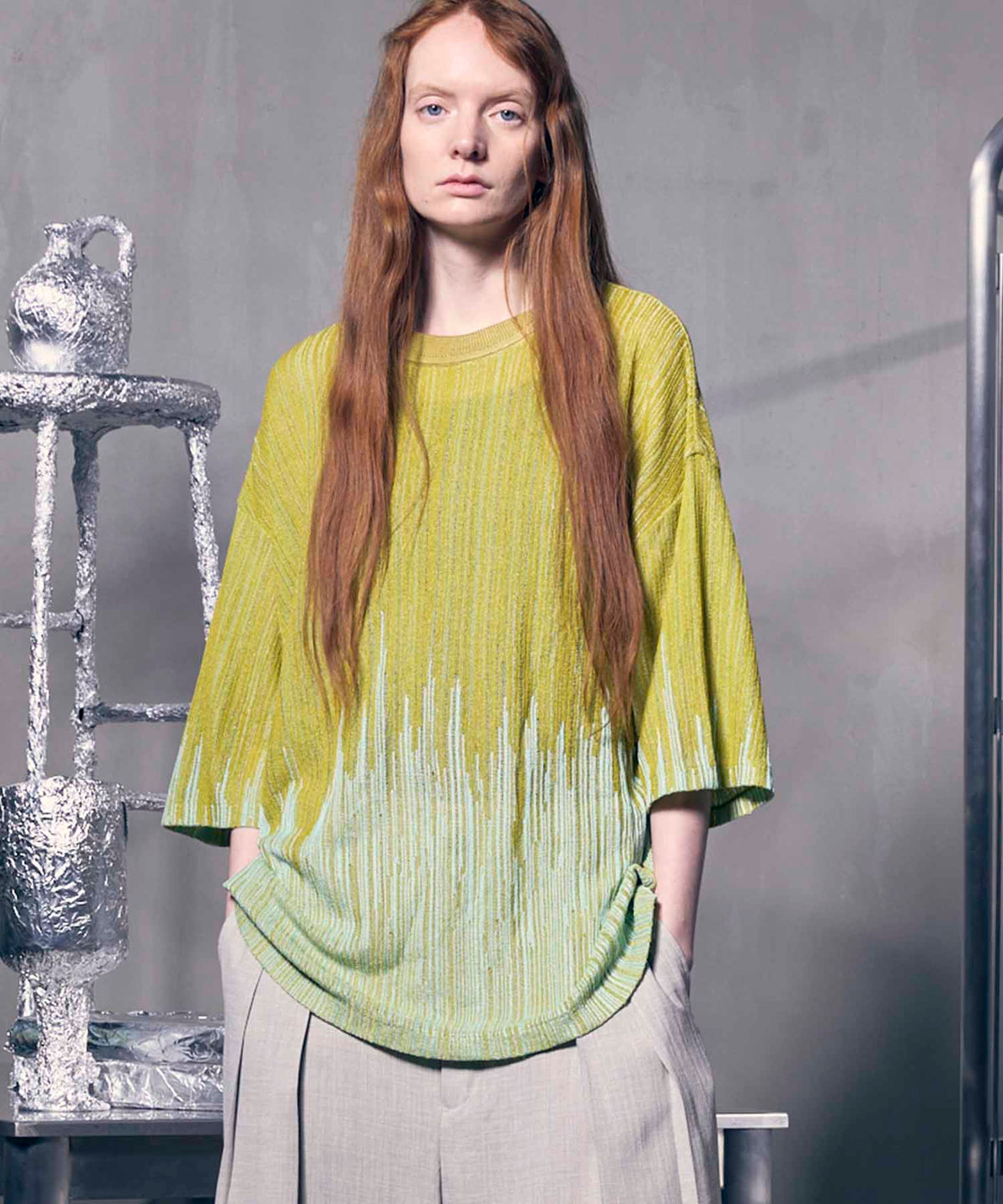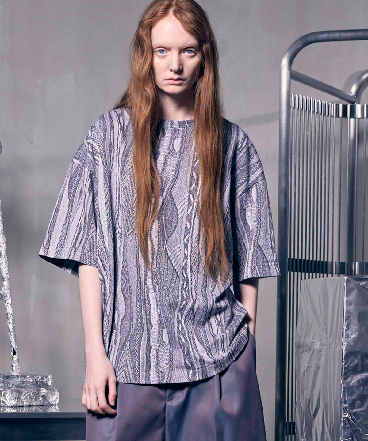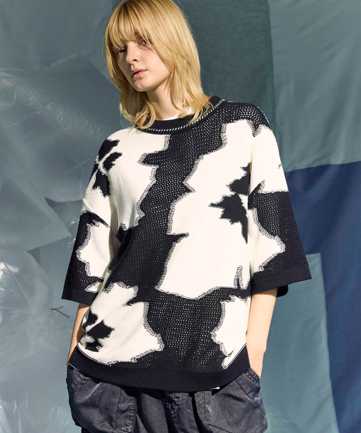 [25AW 사전 주문] 현대 미술 자카드 프라임-오버 크루 넥 니트 풀오버
