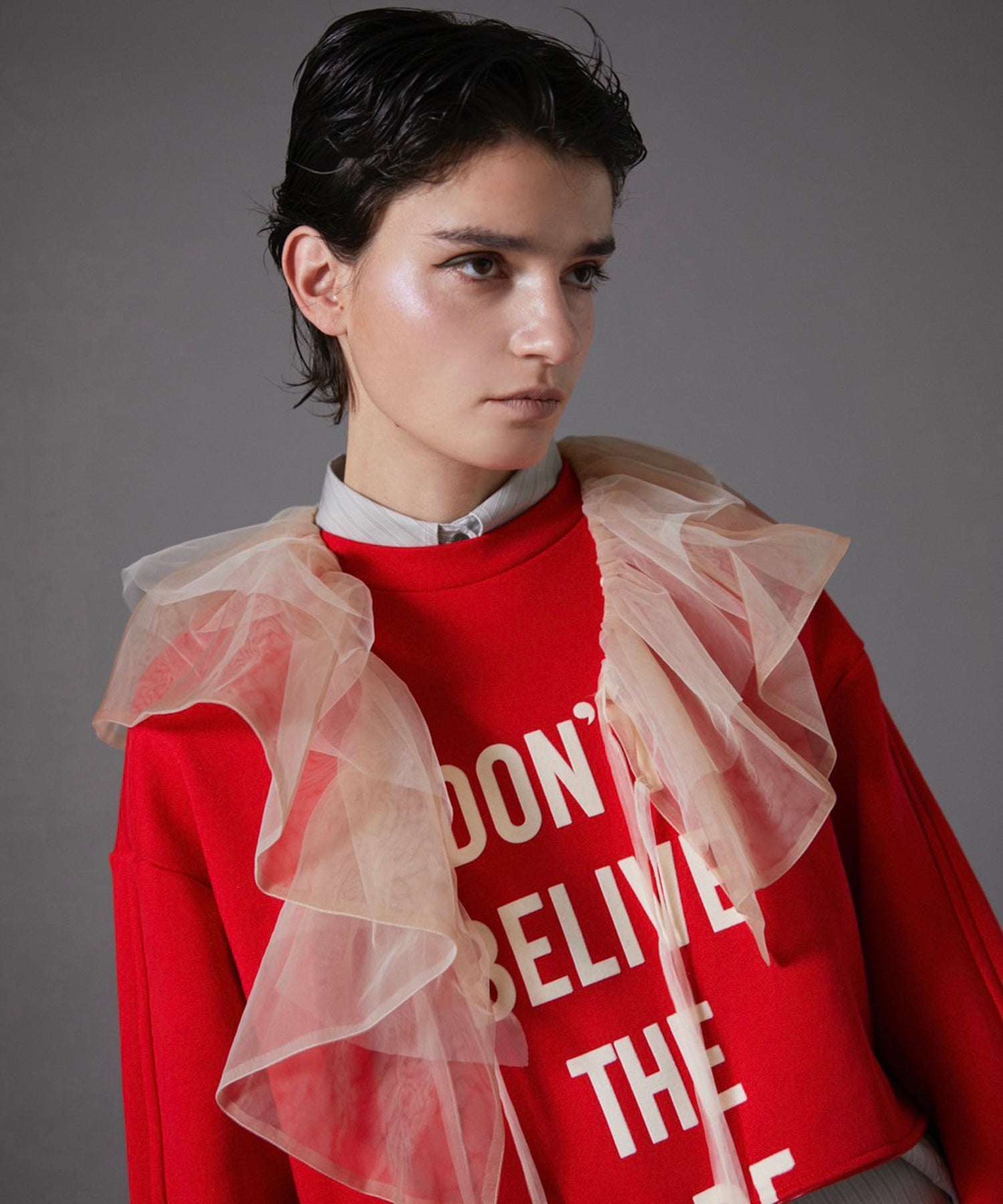 "선을 강조하는 눈 화장을 위해 대담한 지퍼로 대담하게 열리고 닫을 수있는 디자인으로 인상적인 빨간 까마귀에서, 카키색으로 직선을 그려서 골절 된 칼라로 너무 달게되지 않도록하십시오. 대비 라인을 부분적으로 준비함으로써 Burgundy는 Prism Pink가 부르고뉴에 추가됩니다.