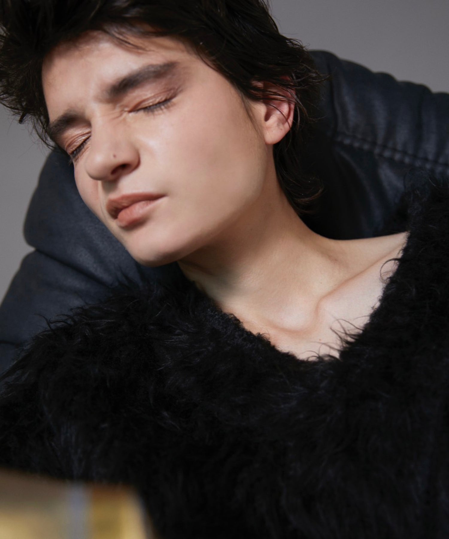 "눈은 가죽 자켓과 어려운 인상을주는 회색으로 둘러싸여 있으며, 모드 인상으로 연기가 자욱한 눈으로 빠르게 흐려지고 마무리됩니다. 눈 아래, 프리즘은 니트 컬러에 따라 뉘앙스, 부드러움, 부드러움 경도.