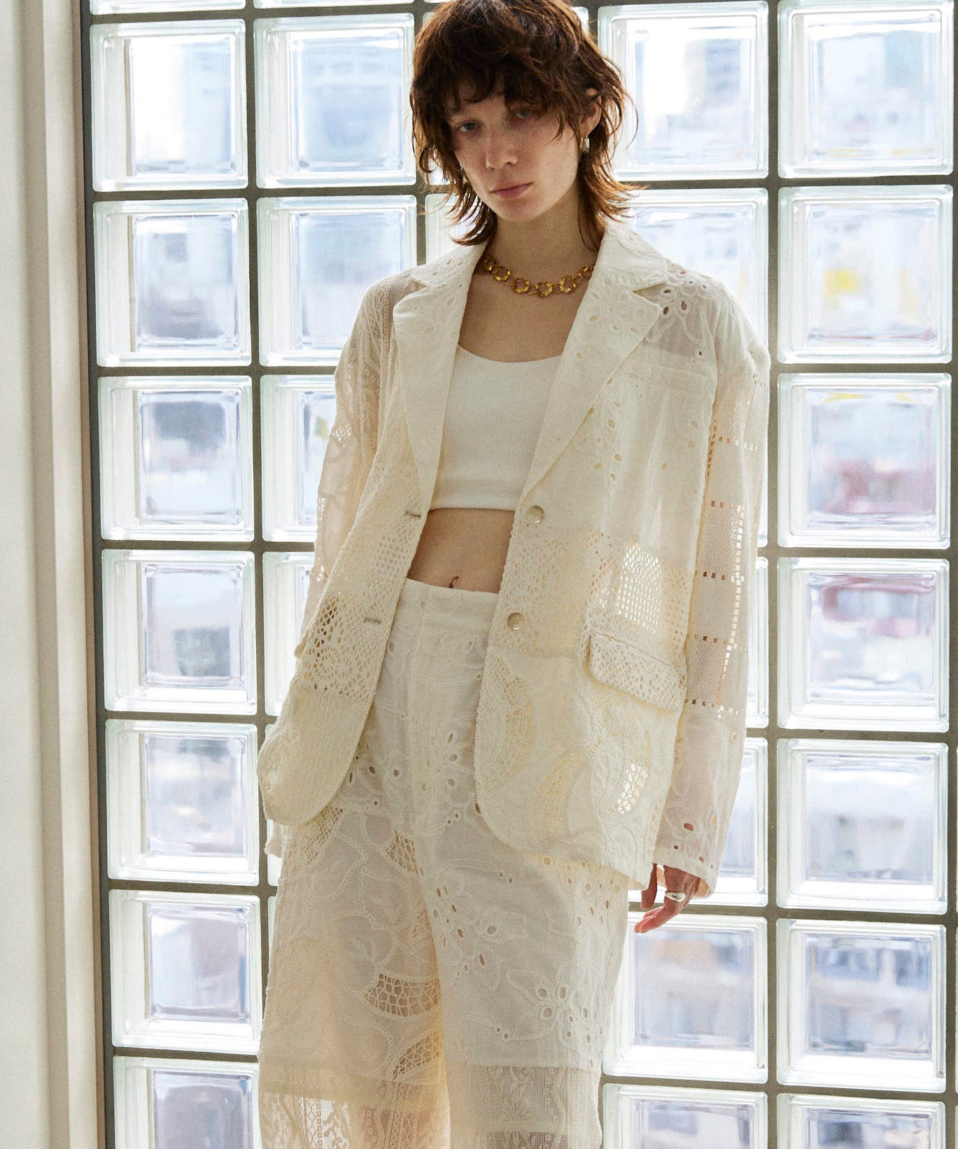 - 정교한 스타일과 우아함을 결합한 레이스 도킹 자켓.