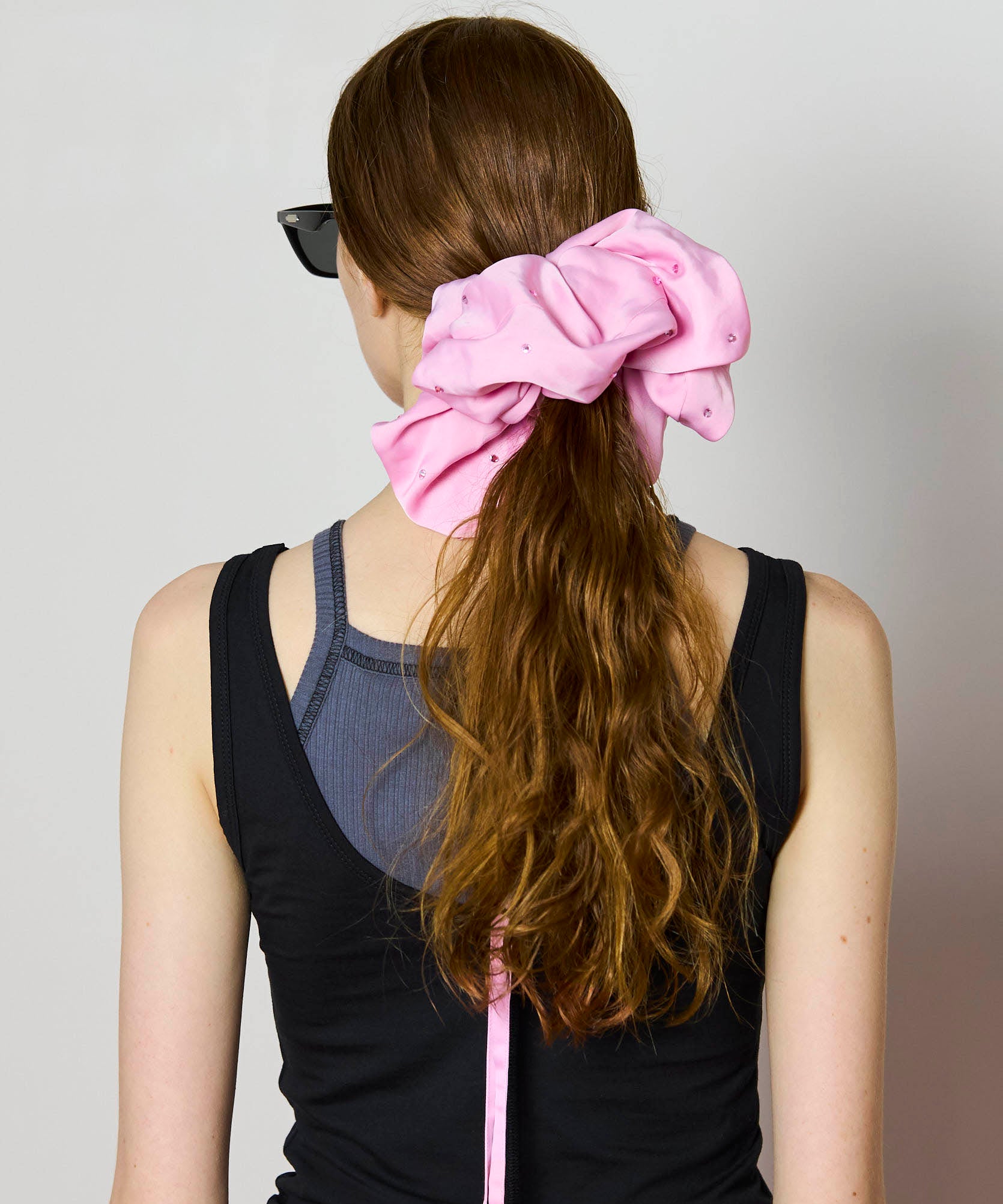 [PNK] 새틴은 모든 움직임에 흔들리는 유연한 느낌을 가지고 있으며 분홍색 모조 다이아몬드로 장식되어 눈에 띄고 화려한 인상을 더합니다.