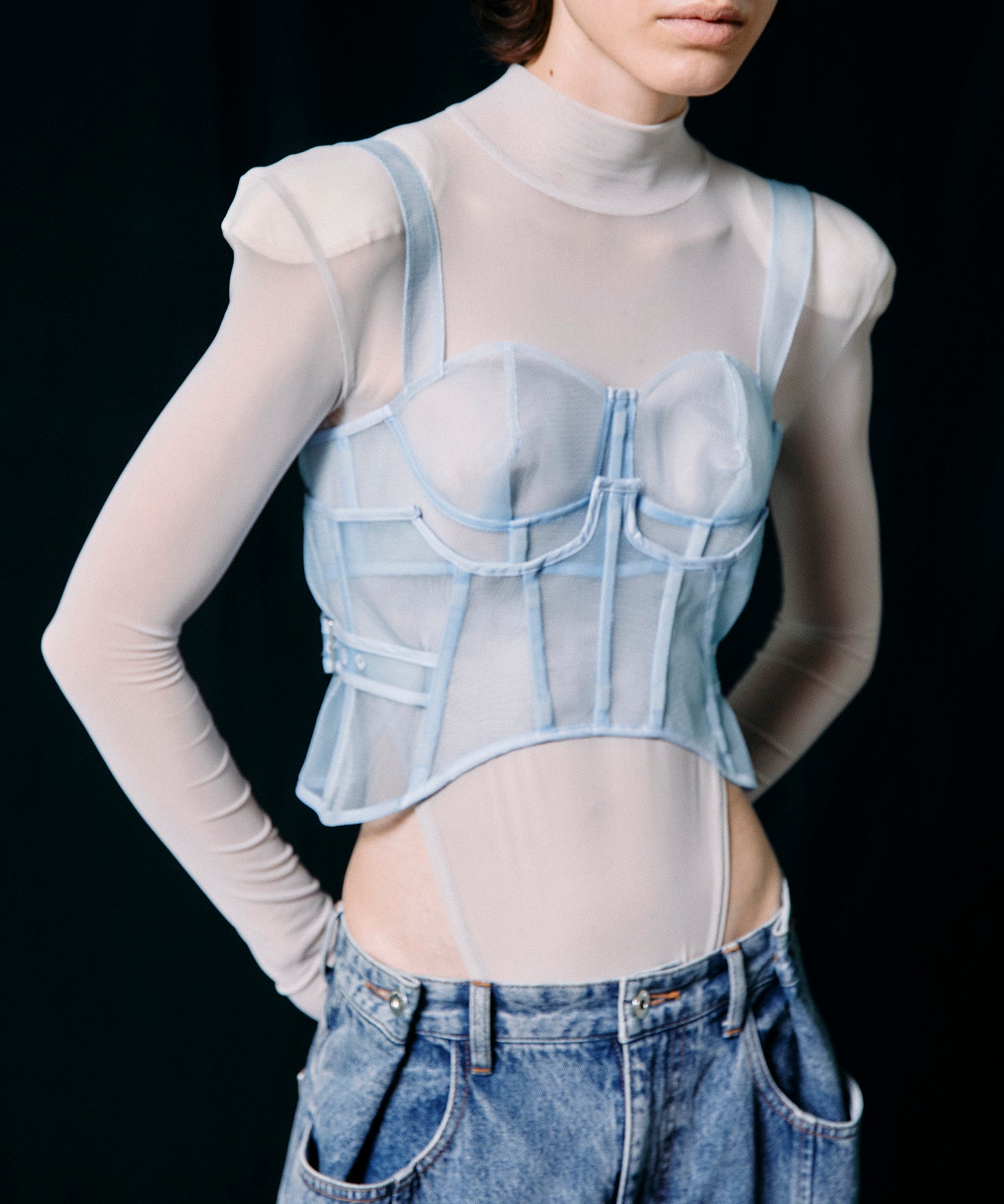 ビスチェとコルセットが取り外し別々でも使用できるためマルチウェイにスタイリングが楽しめます。