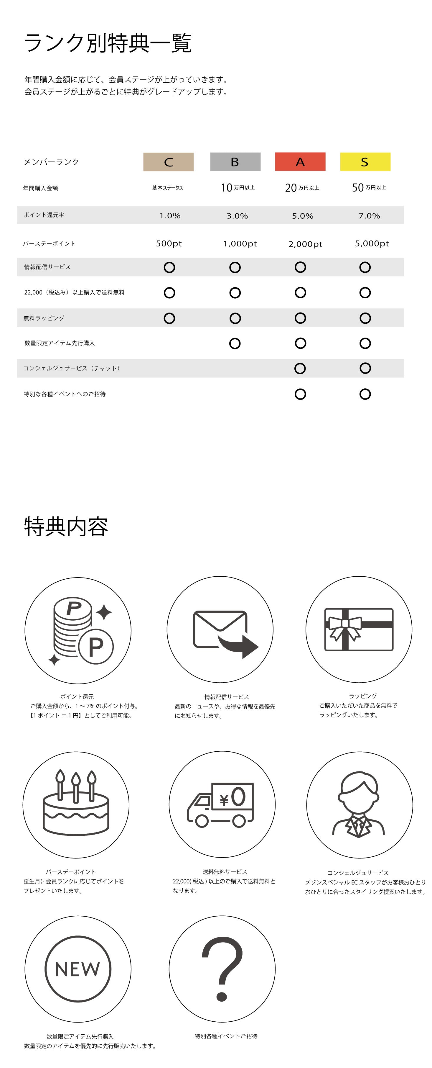 年間購入金額に応じて、会員ステージが上がっていきます。
