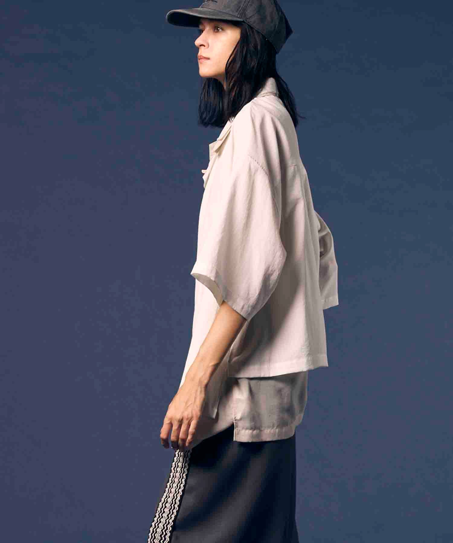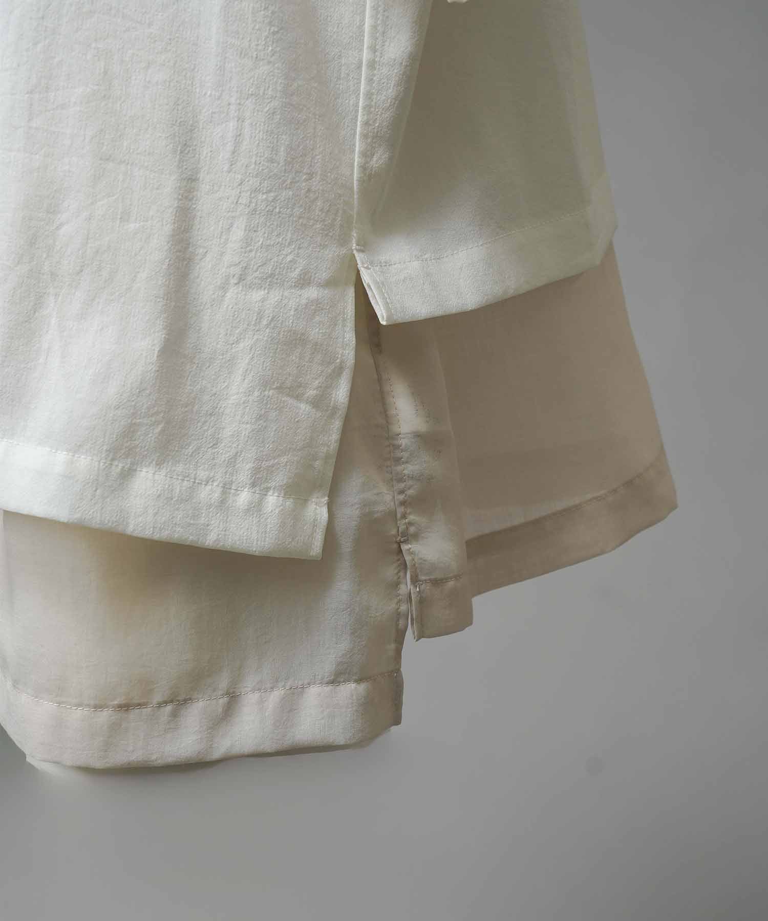 ■名前の通り、身頃を2重仕立てにしたフェイクレイヤードが斬新でエッジの効いたデザイン。