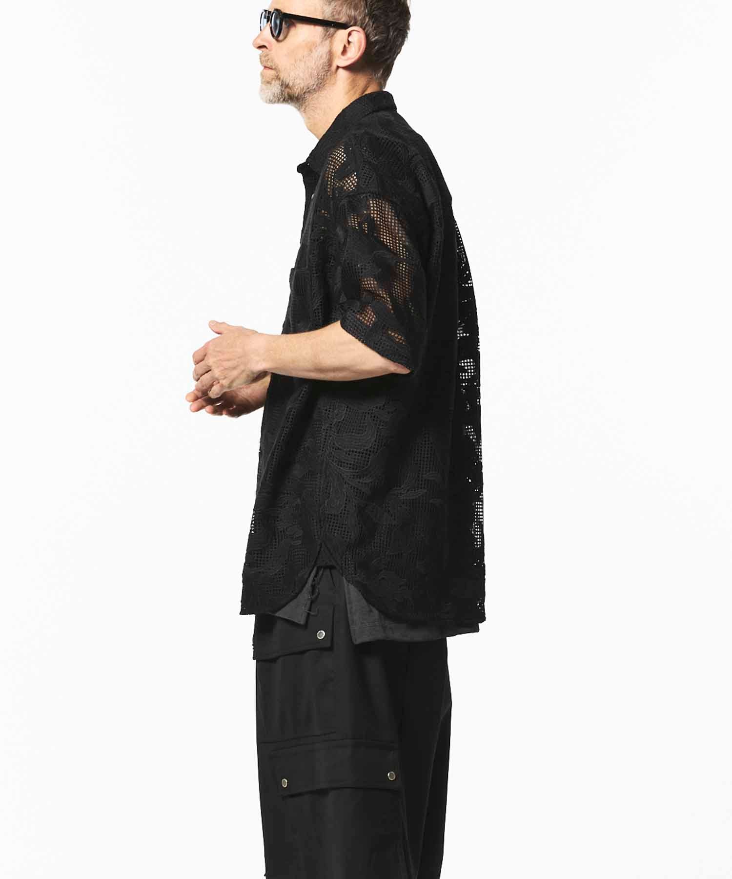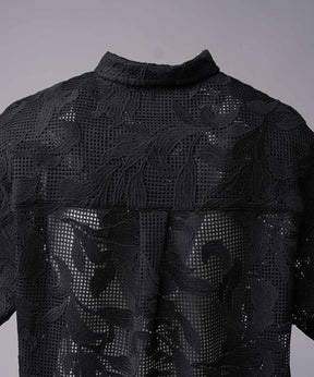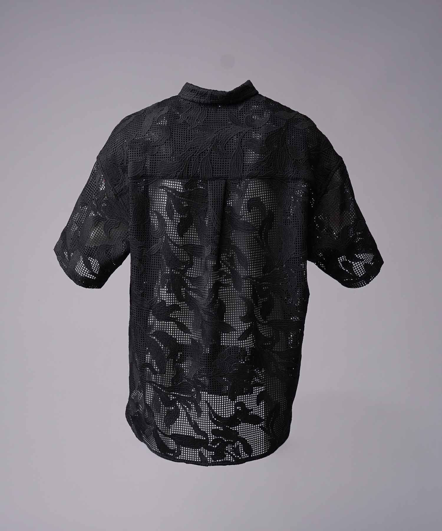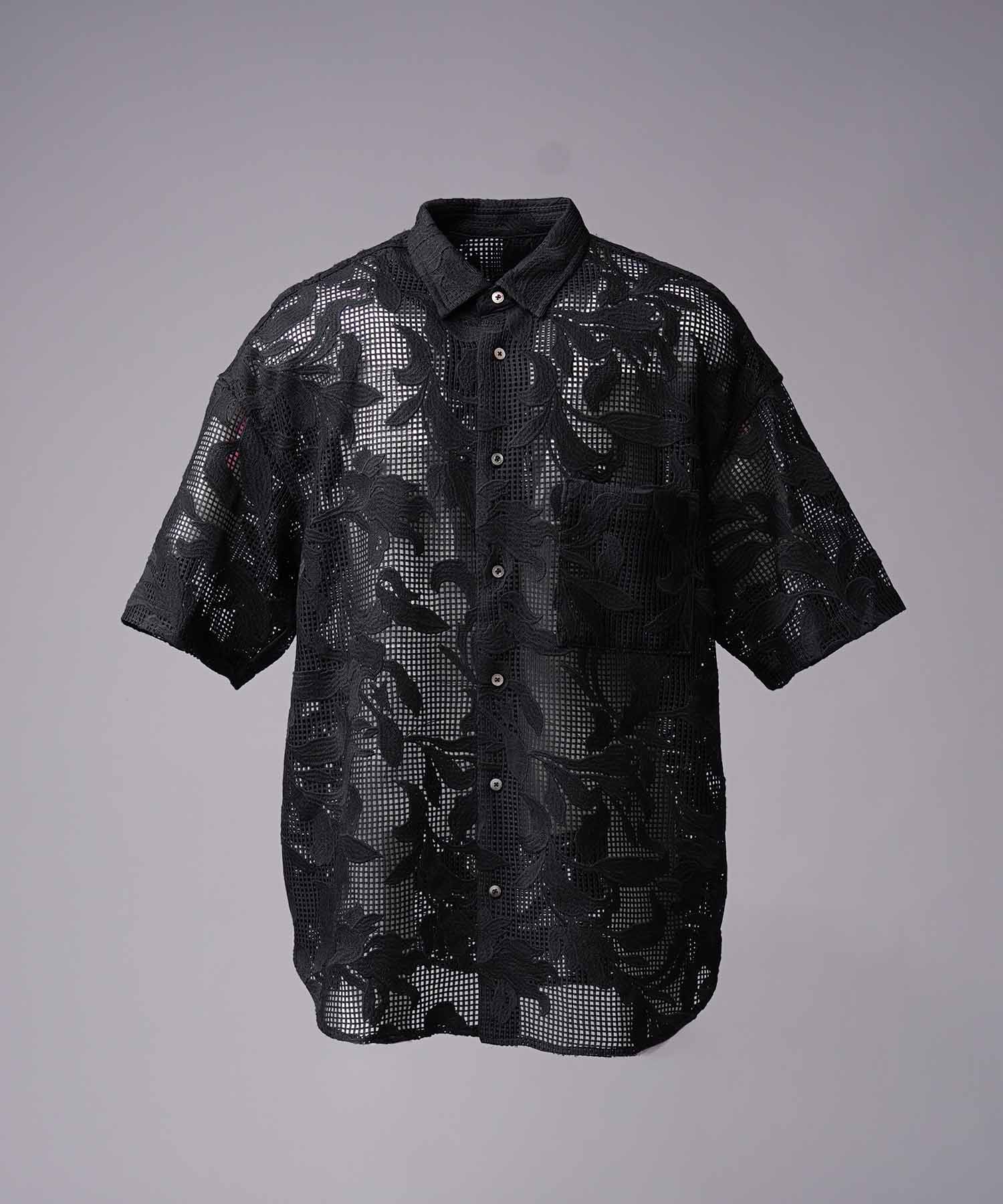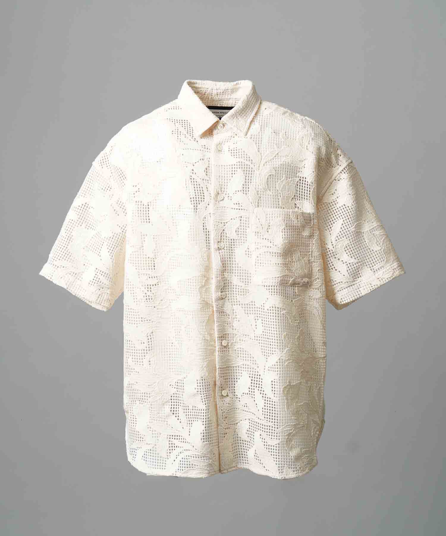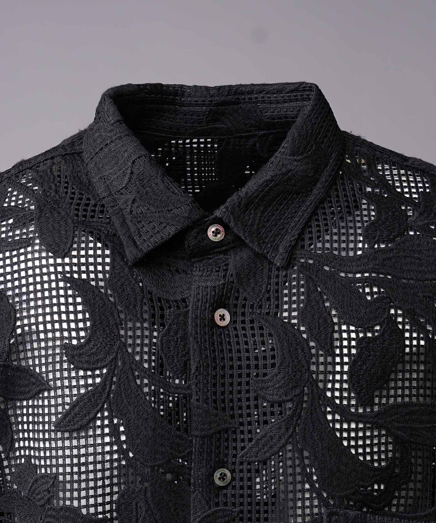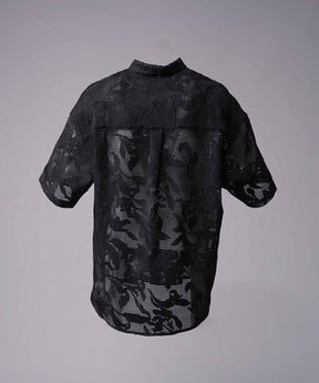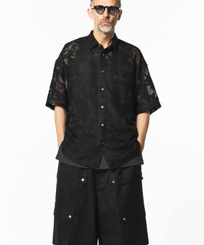 Mesh Flower Embroidery Prime-Over Short Sleeve Shirt