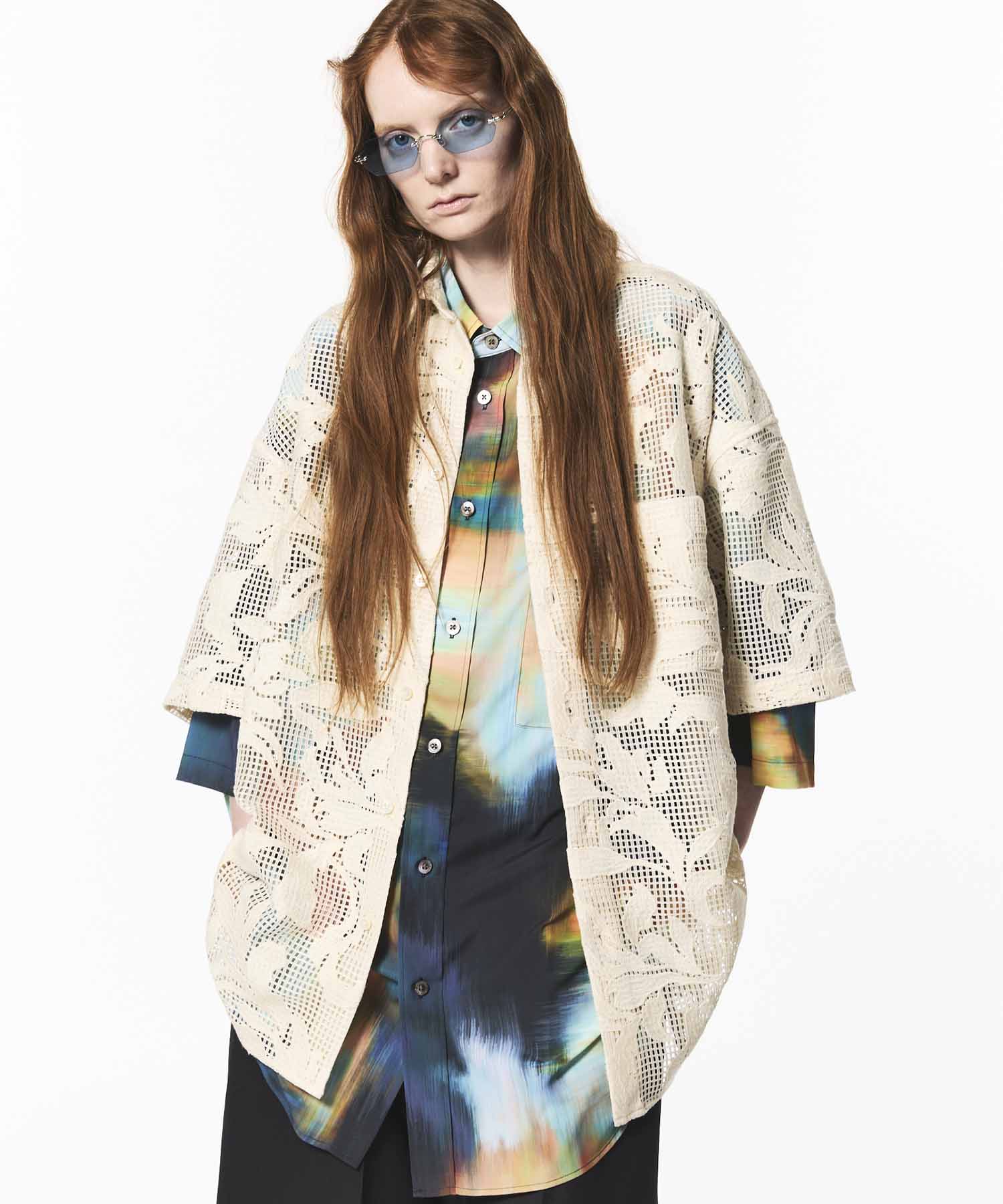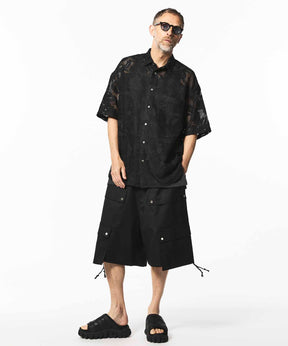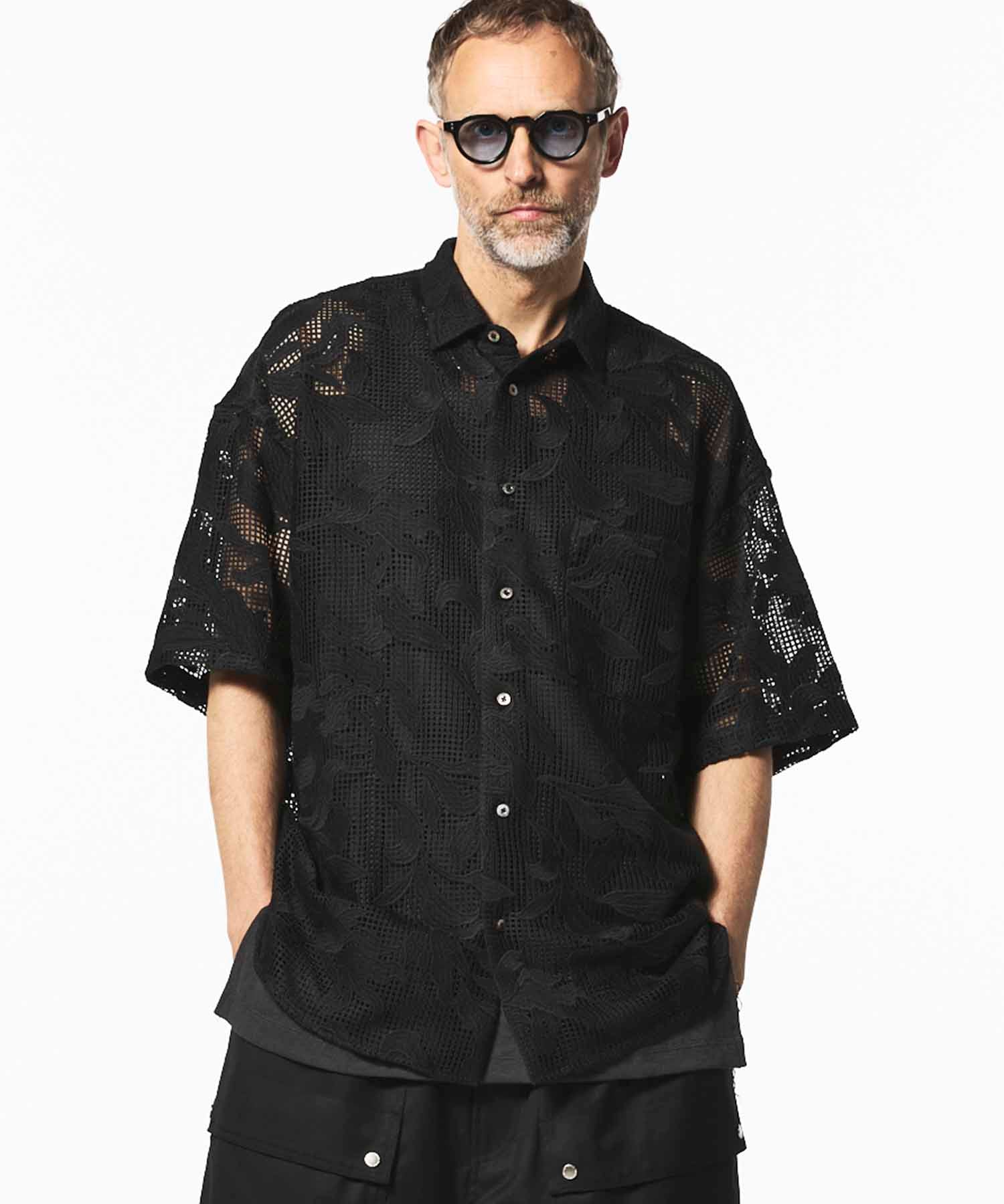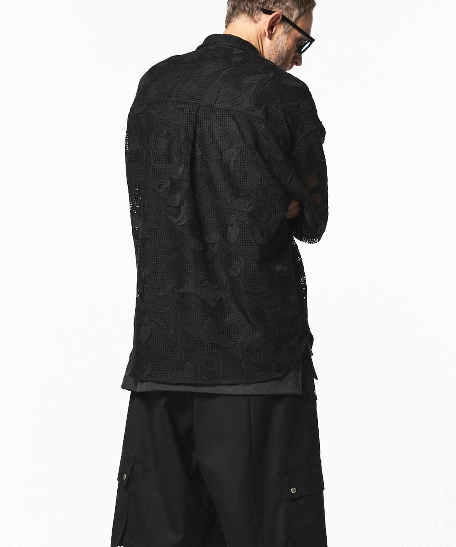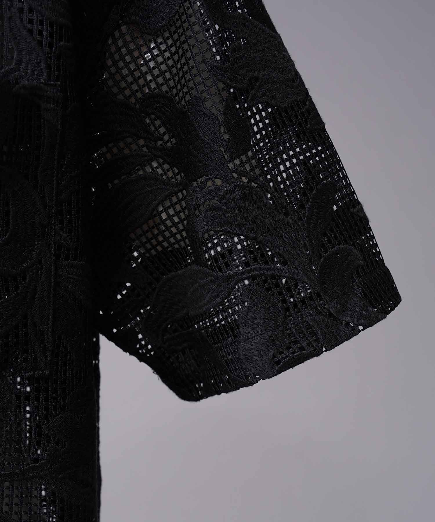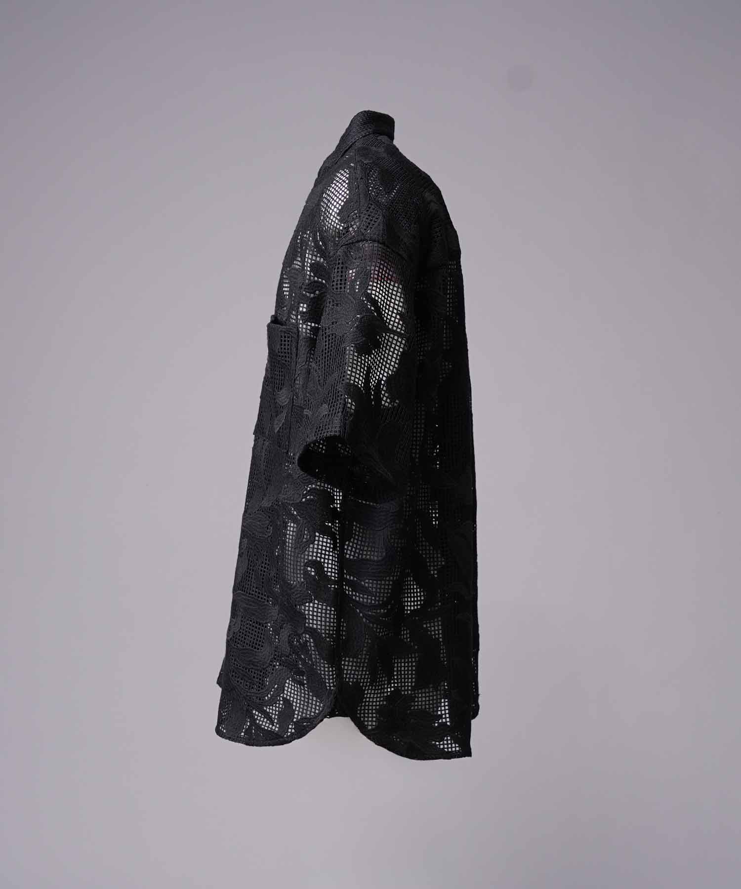 Mesh Flower Embroidery Prime-Over Short Sleeve Shirt