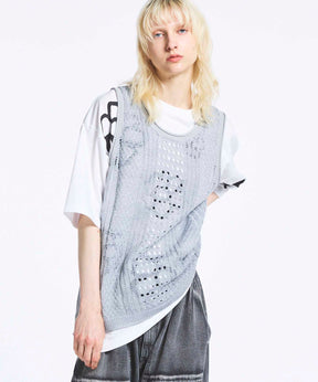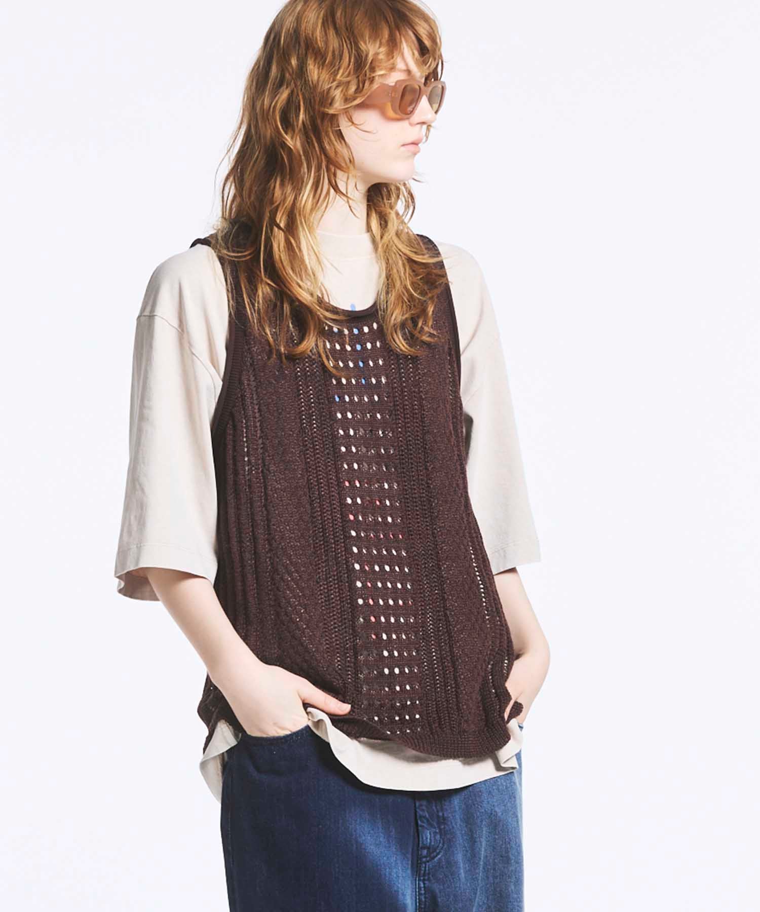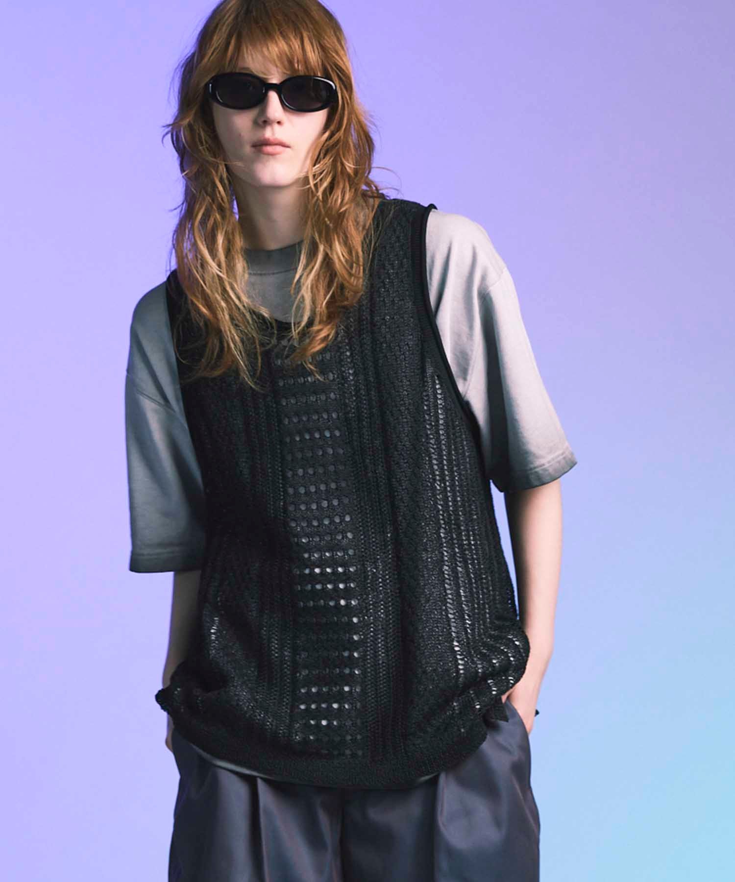 ざっくりとした編みでシアーな表情が、清涼感ある軽やかさ。