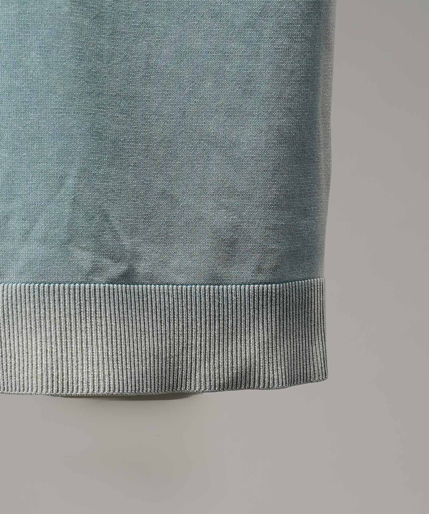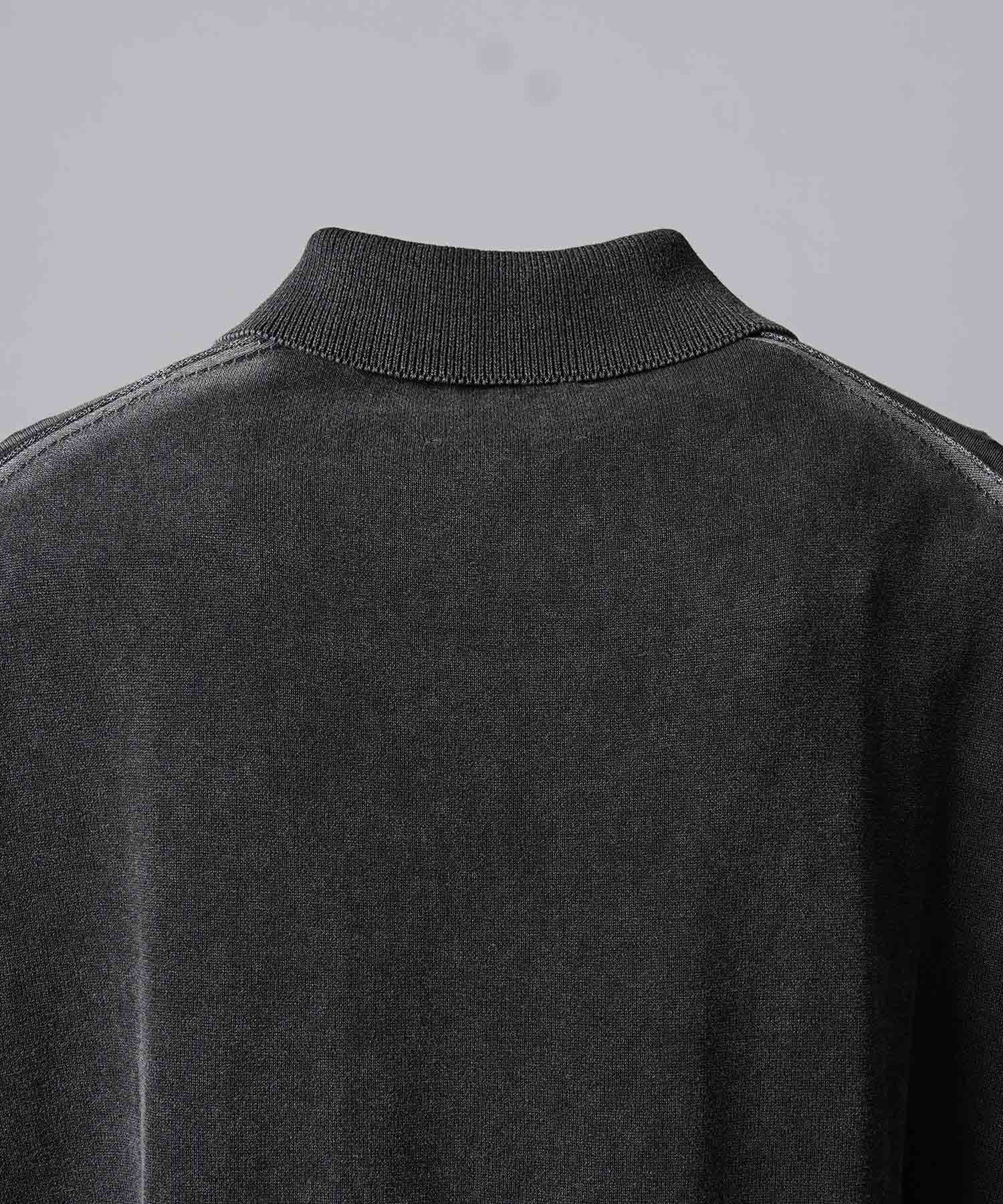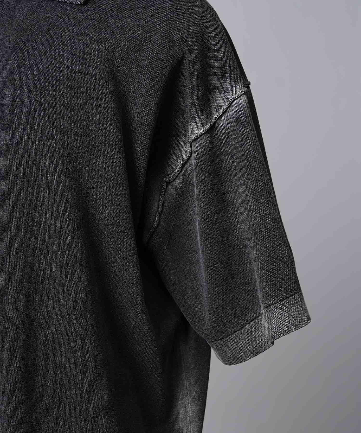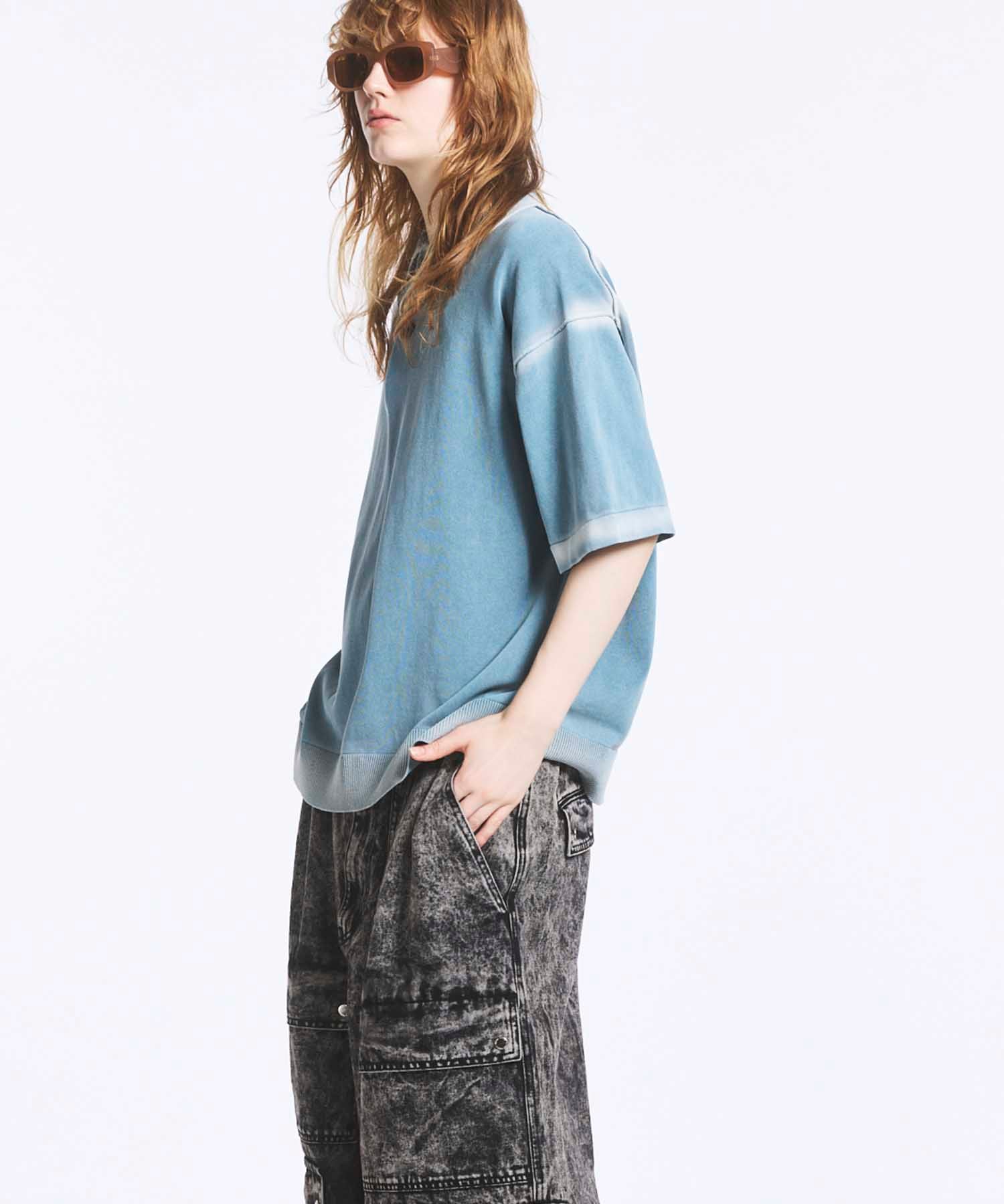 夏場でも着用しやすいドライタッチな強撚ニットにピグメント染めを施した素材を使用。