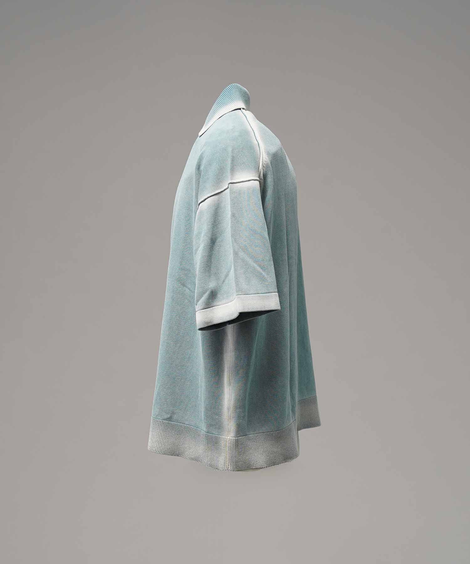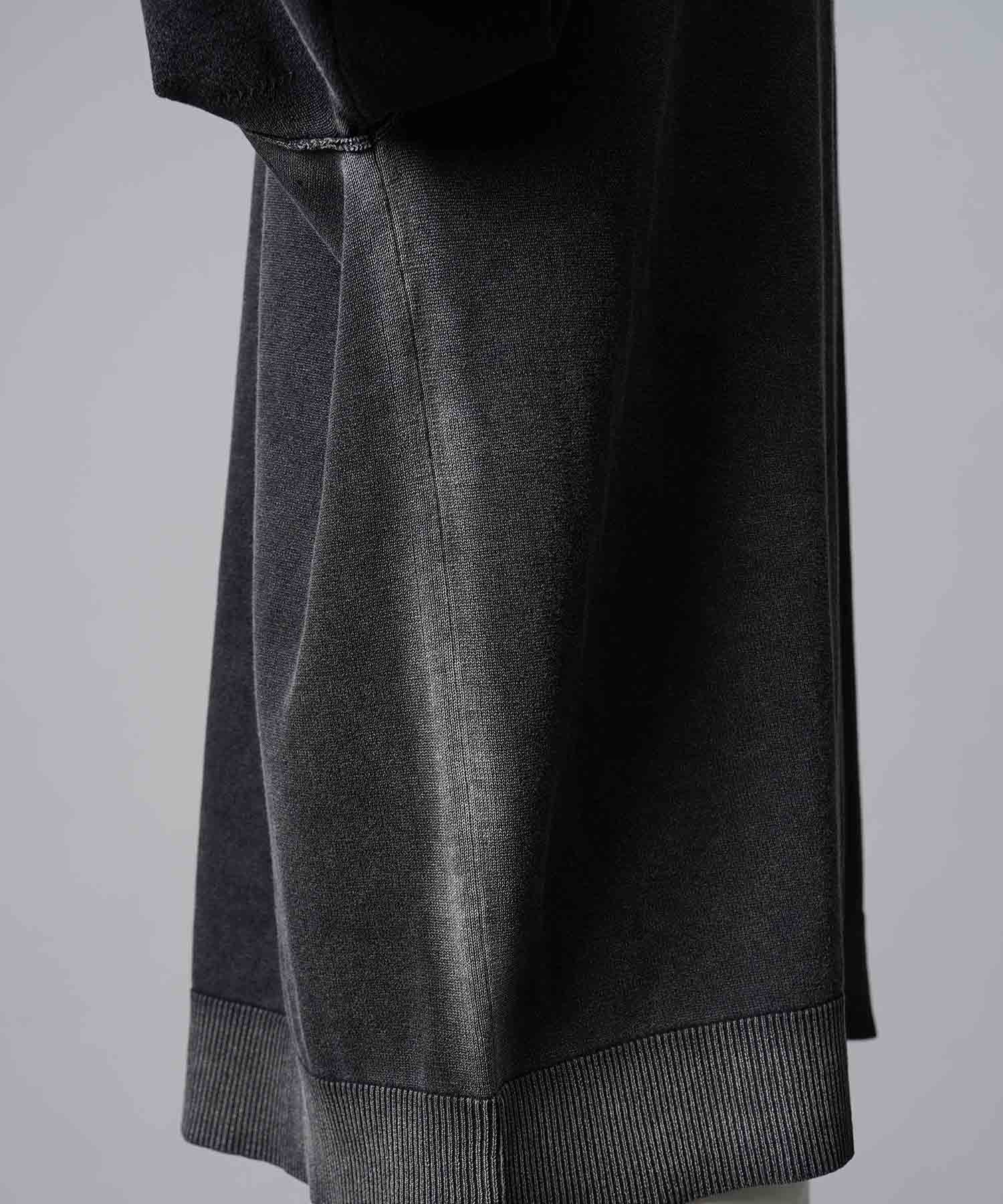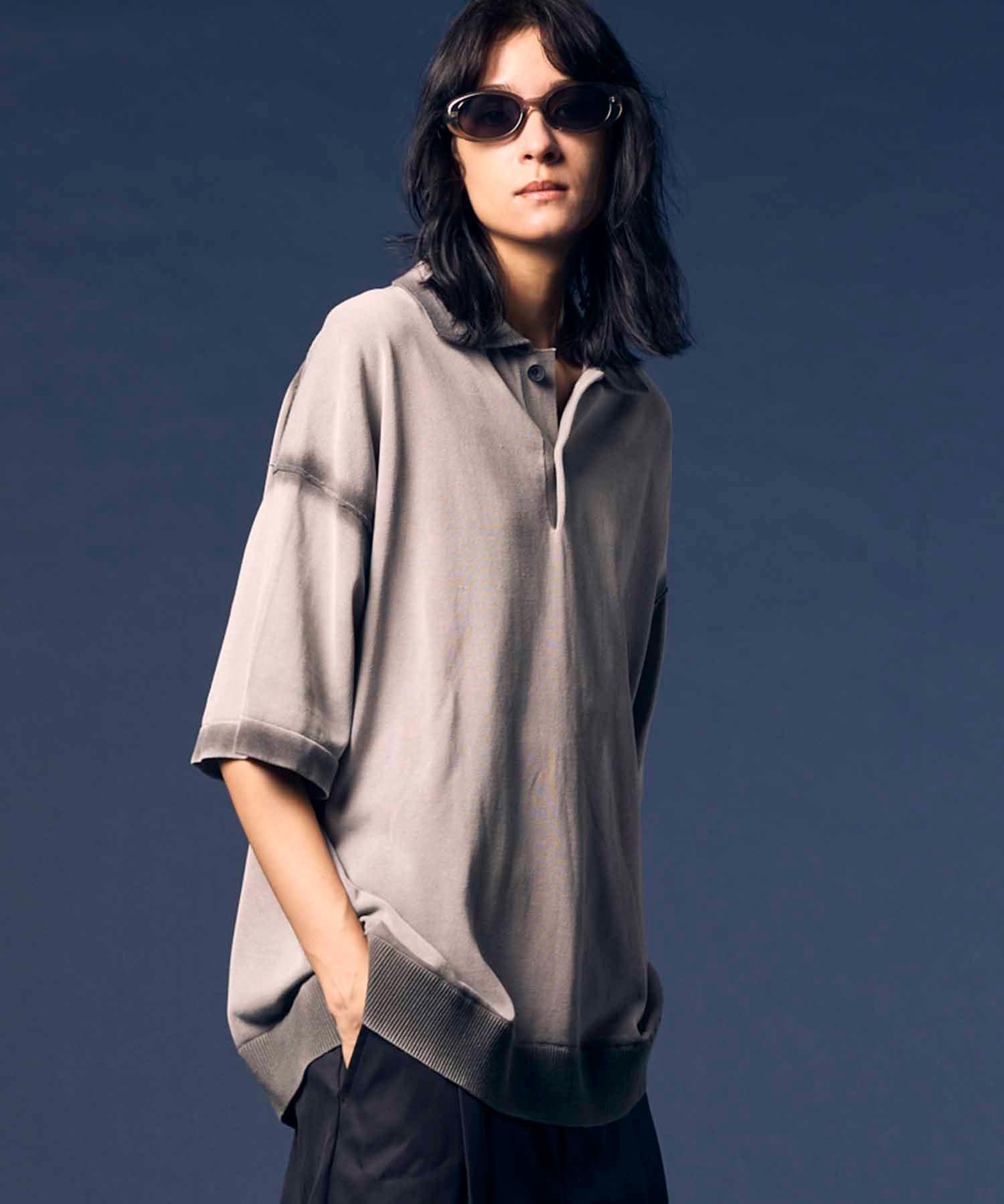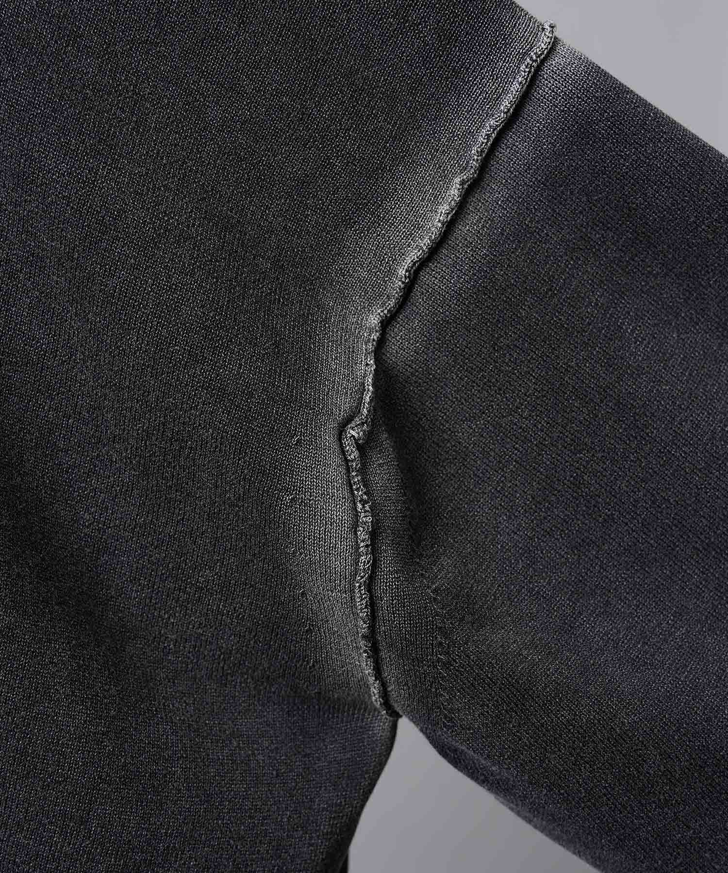 夏場でも着用しやすいドライタッチな強撚ニットにピグメント染めを施した素材を使用。