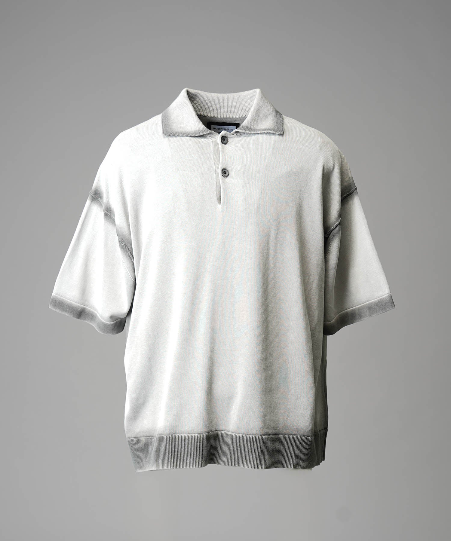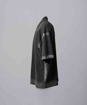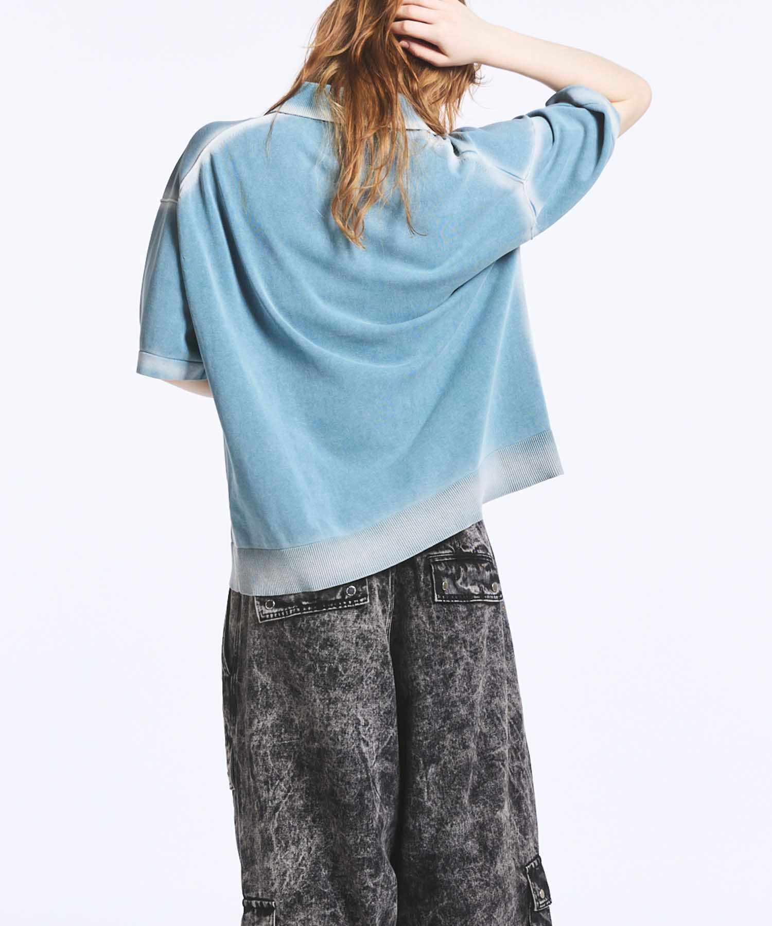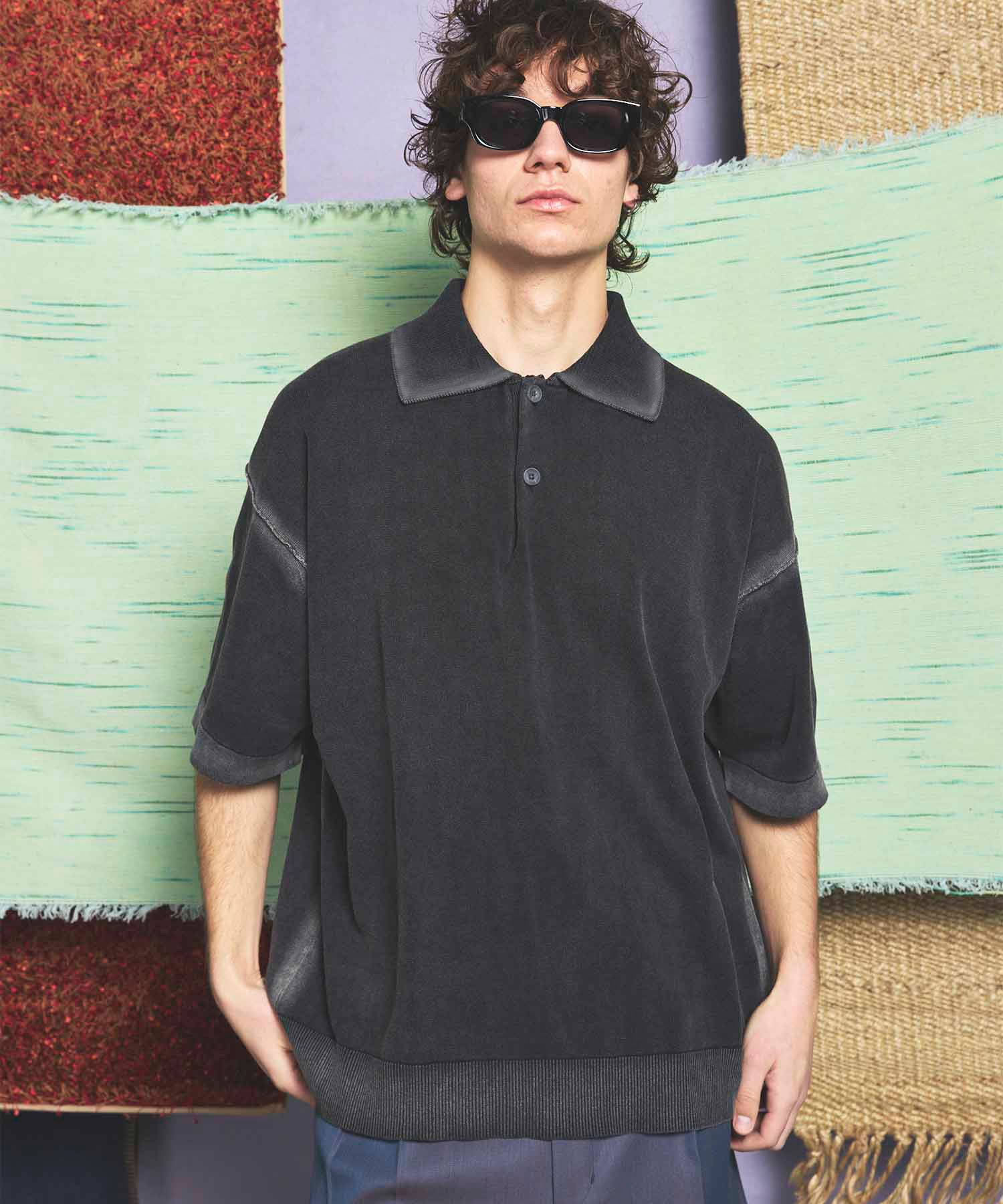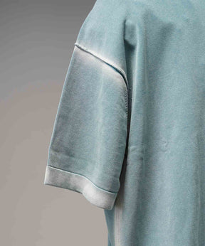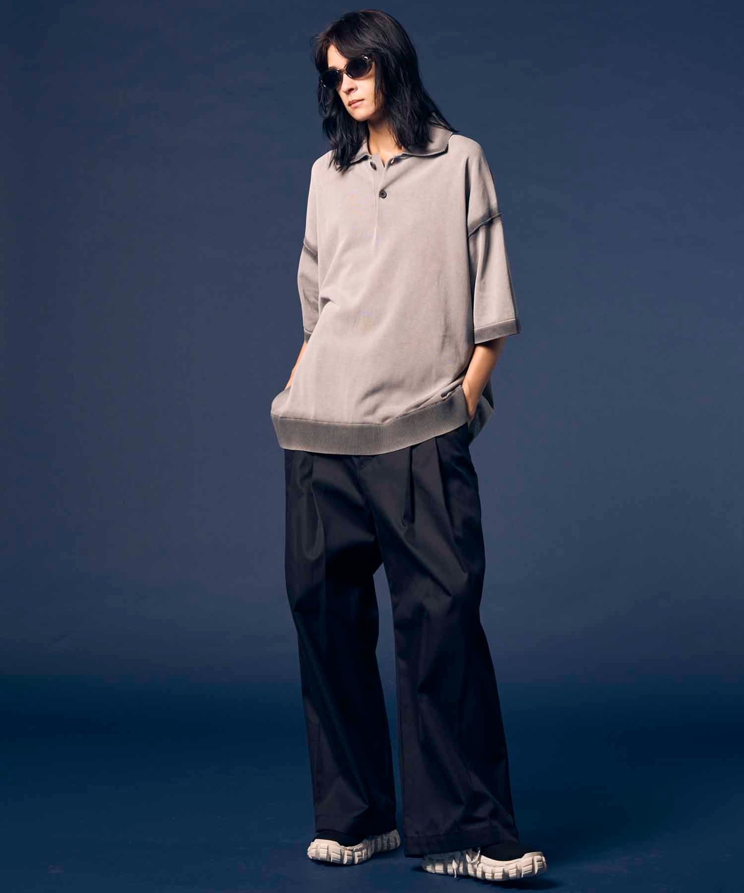 夏場でも着用しやすいドライタッチな強撚ニットにピグメント染めを施した素材を使用。