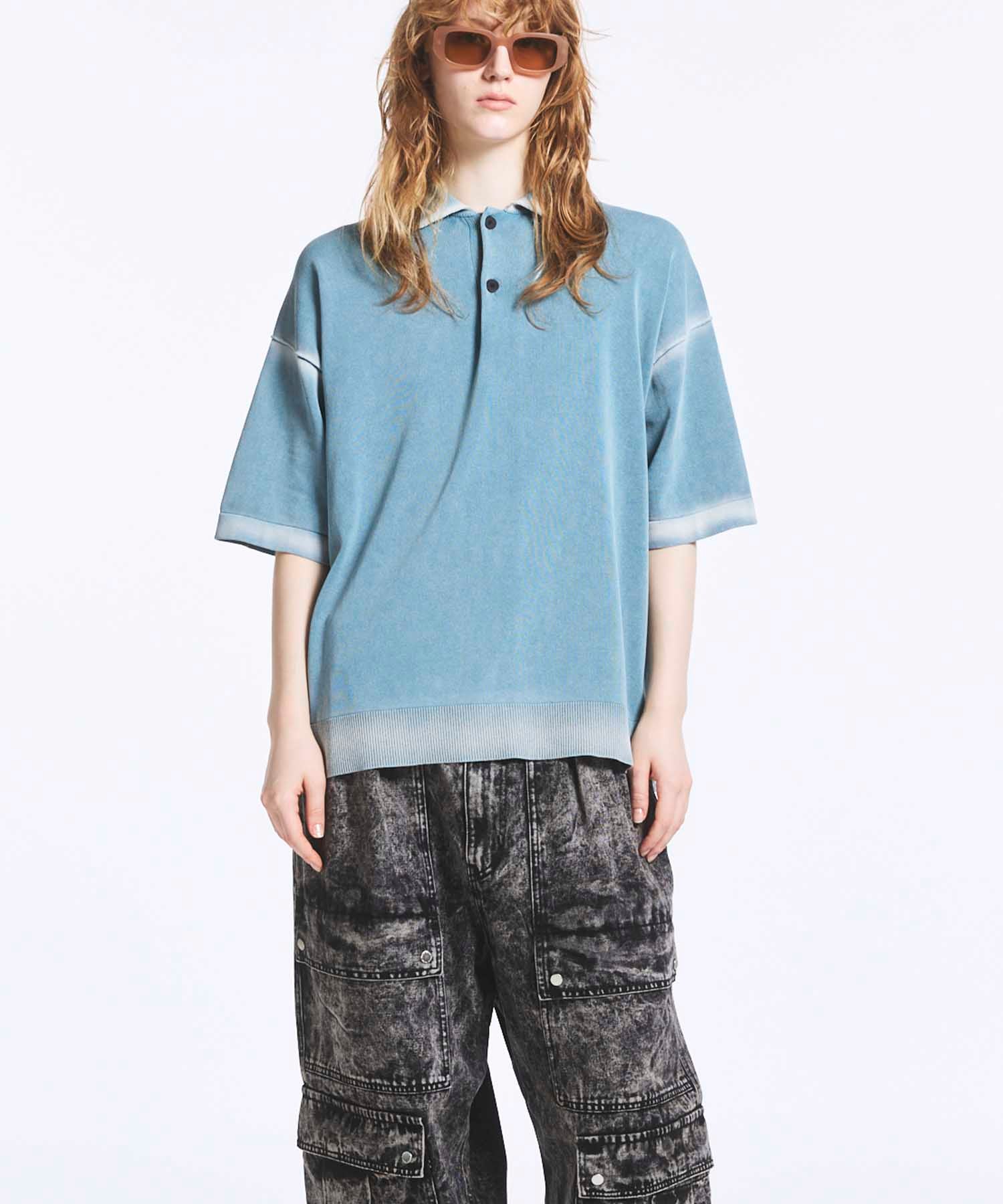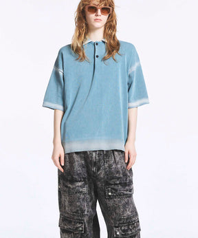 High Twist Pigment Bleach Prime-Over Knit Polo Shirt