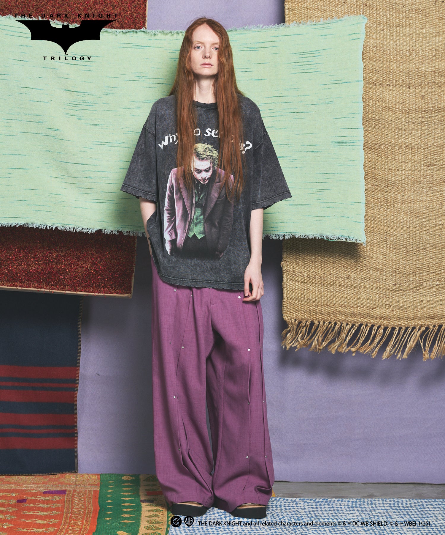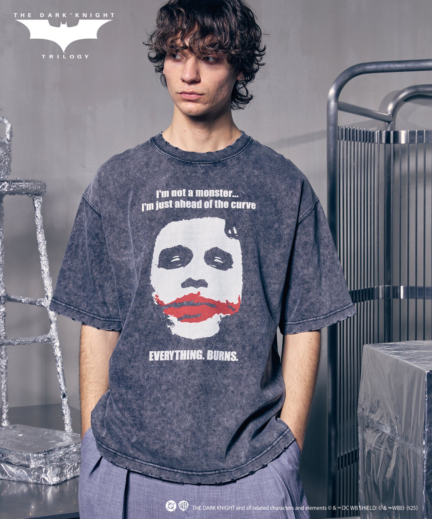 ■DCを代表するヒーロー、バットマンを描く映画作品『ダークナイト』より、ジョーカーのアイコニックなグラフィックをプリント。