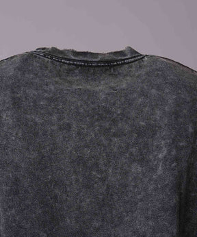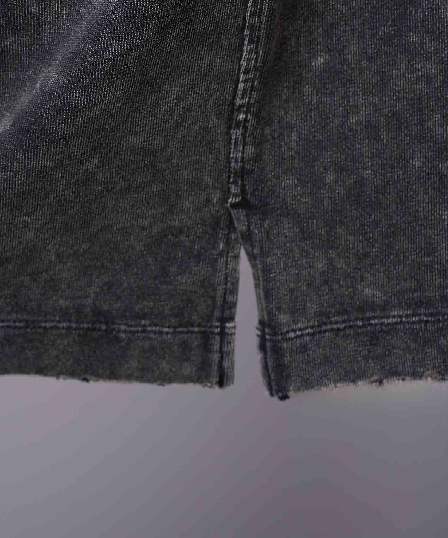 糸の繊維が不均一で粗野感があり、それをケミカルオーバーダイ加工をすることで、ケミカル特有のまだらな色落ちとあたり感がより表現される仕上がりに。