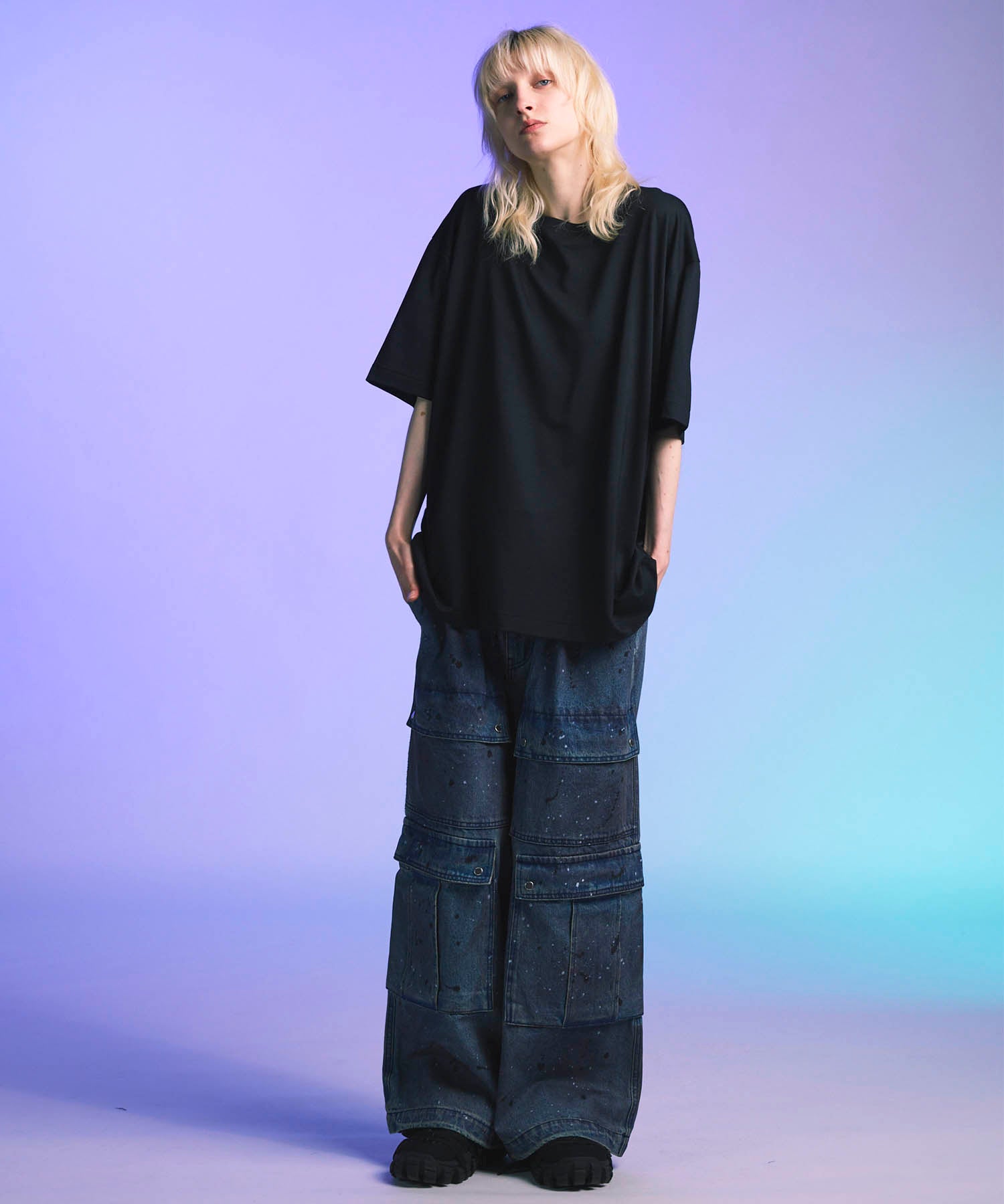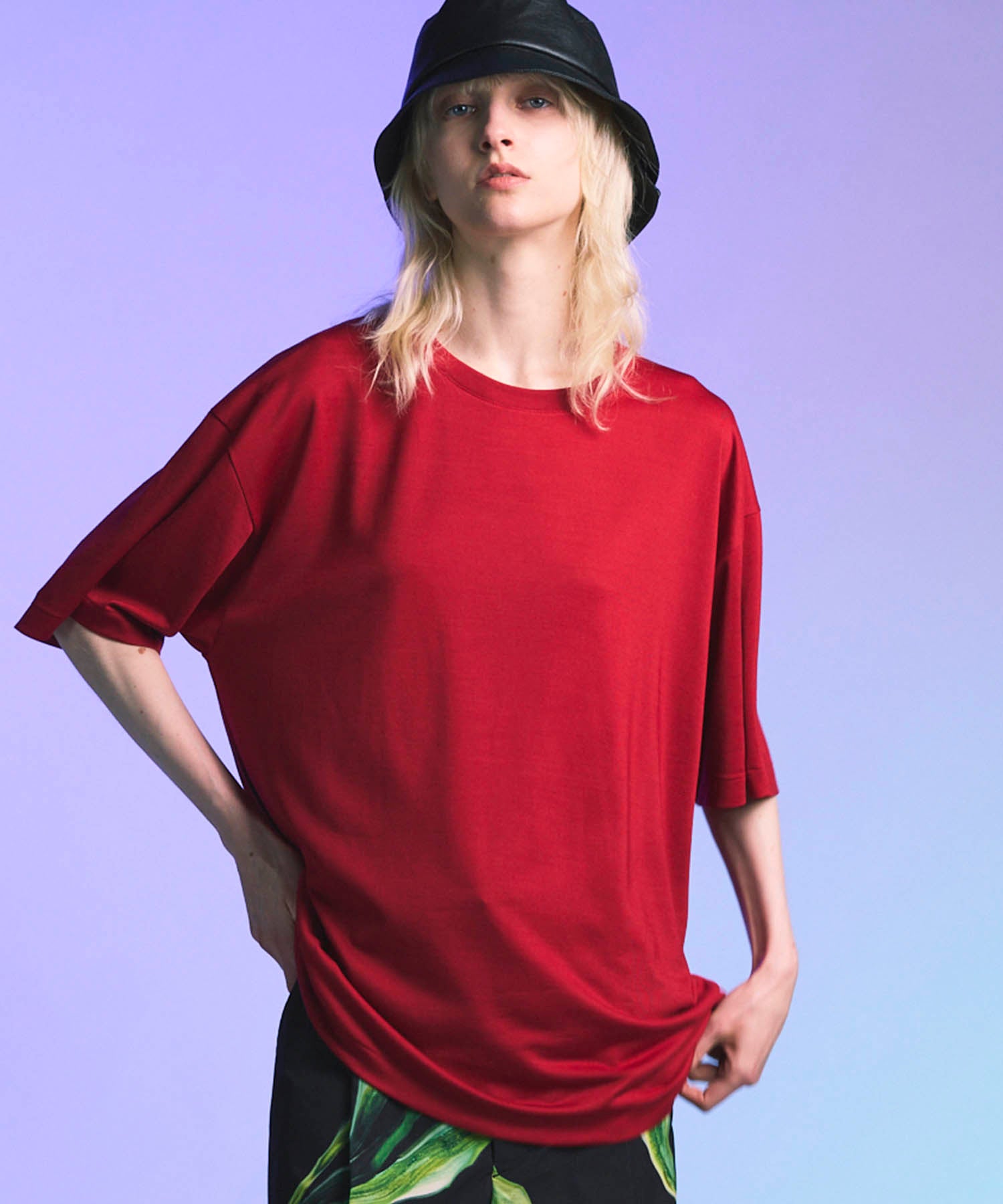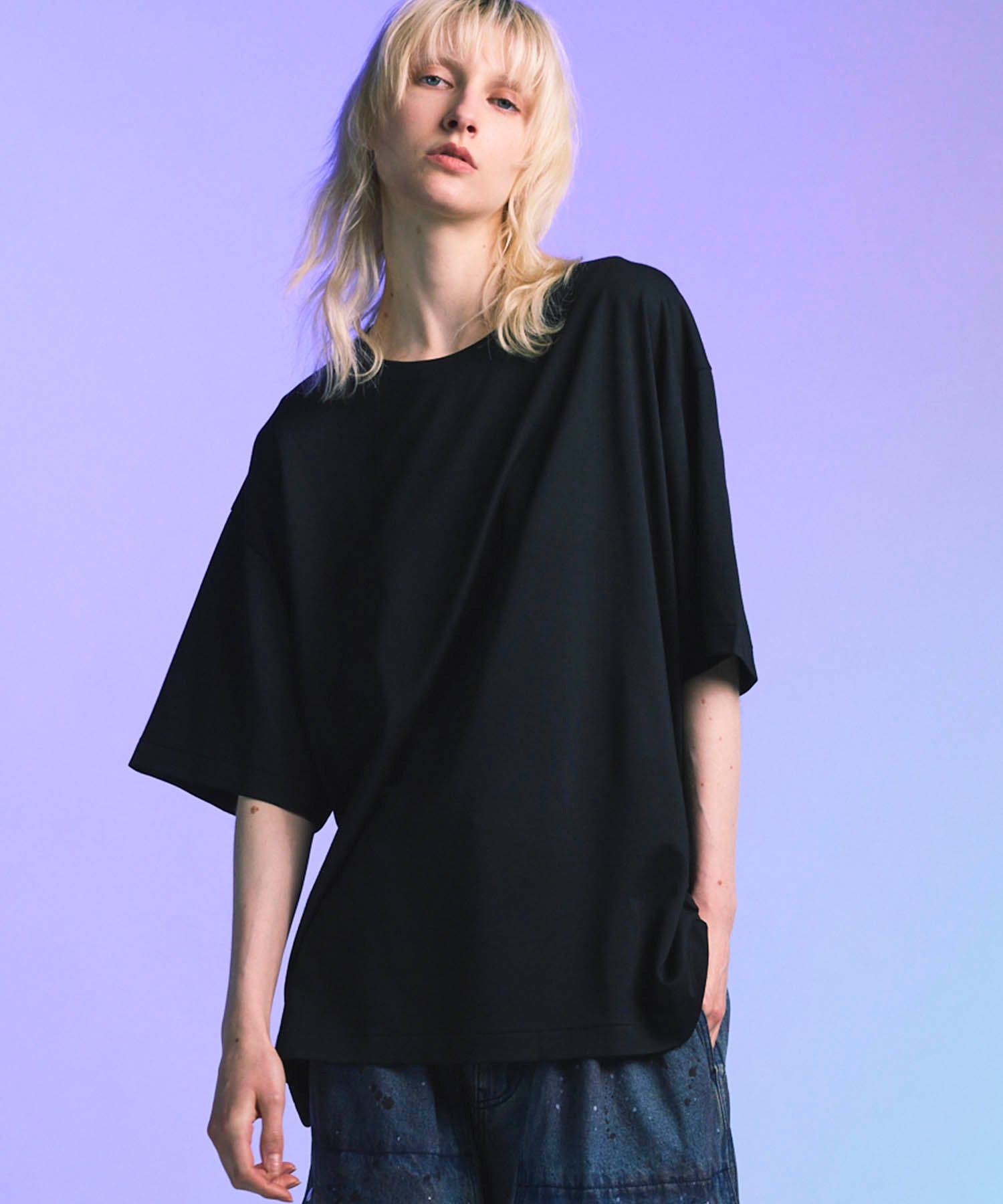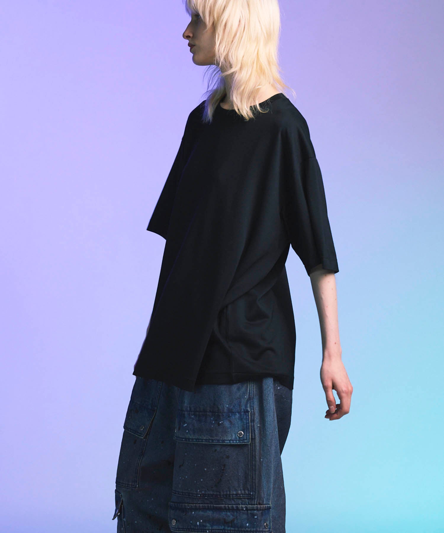 身幅、アームともに非常に大きく取り、肩をしっかりと落としたドロップショルダーから成る特徴的なオーバーシルエット。
