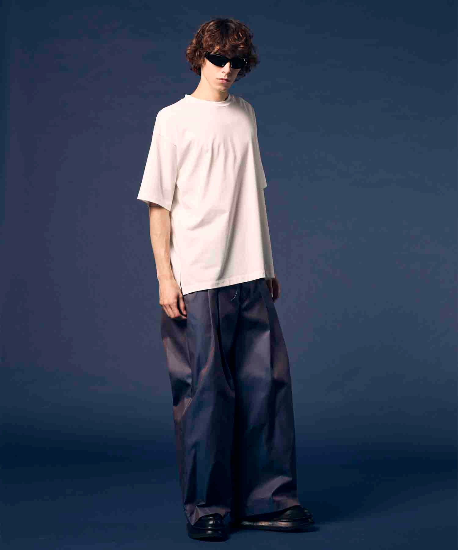 身幅、アームともに非常に大きく取り、肩をしっかりと落としたドロップショルダーから成る特徴的なオーバーシルエット。