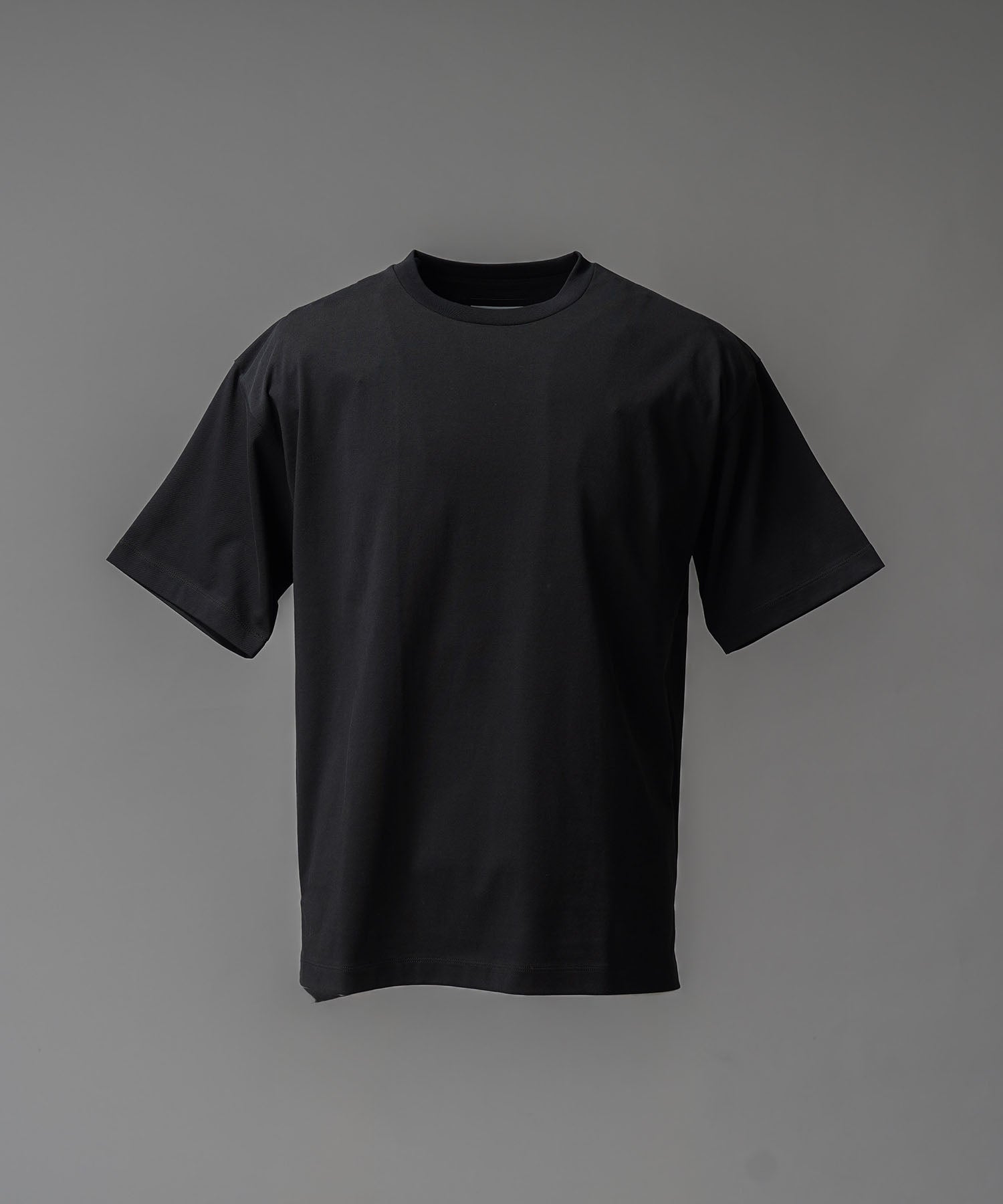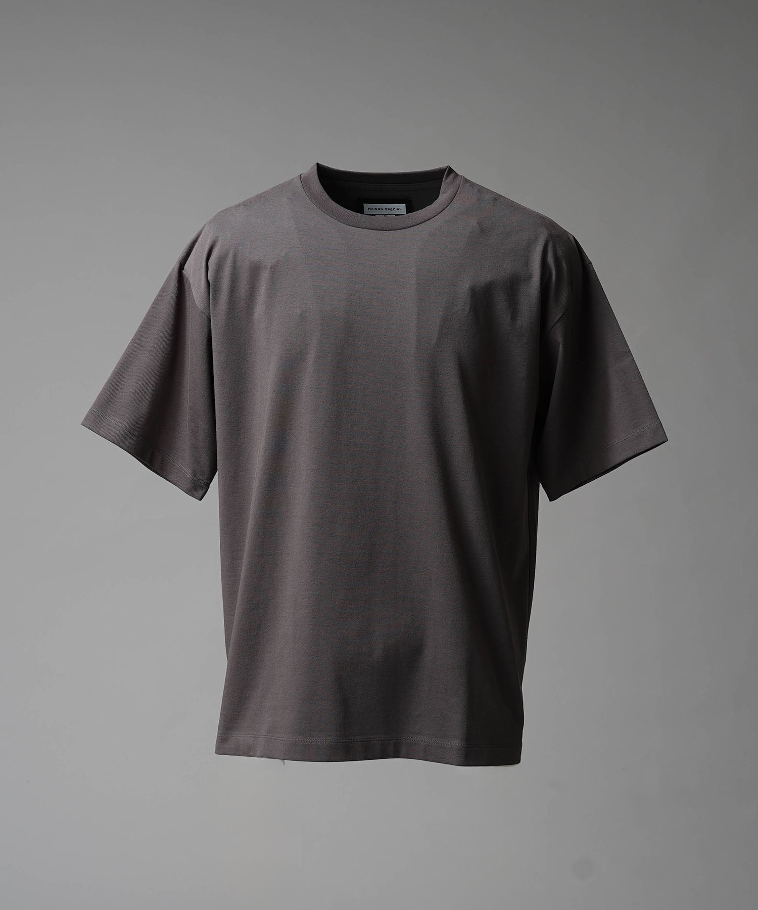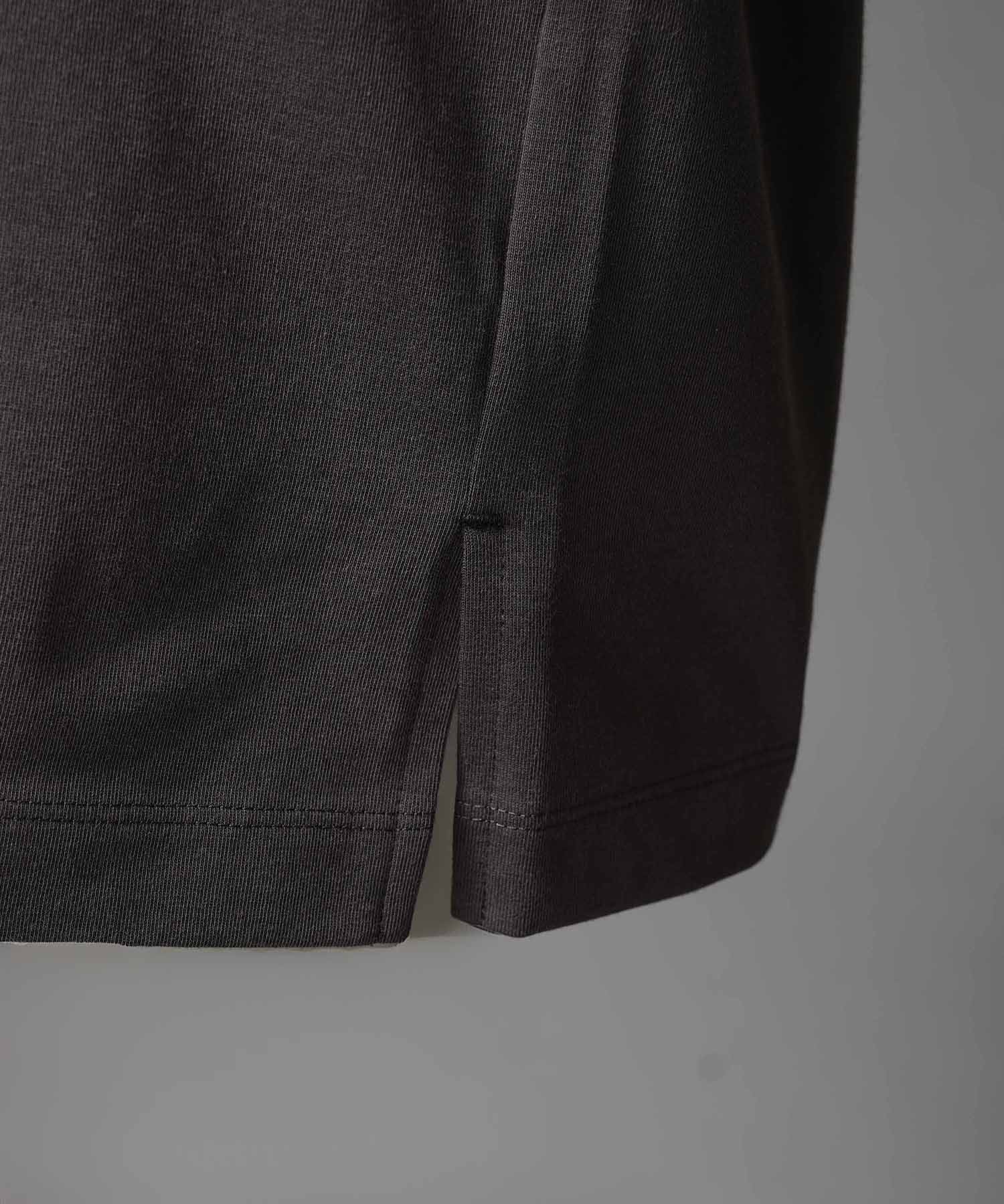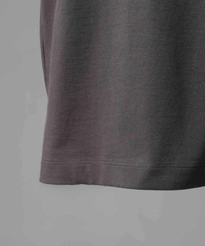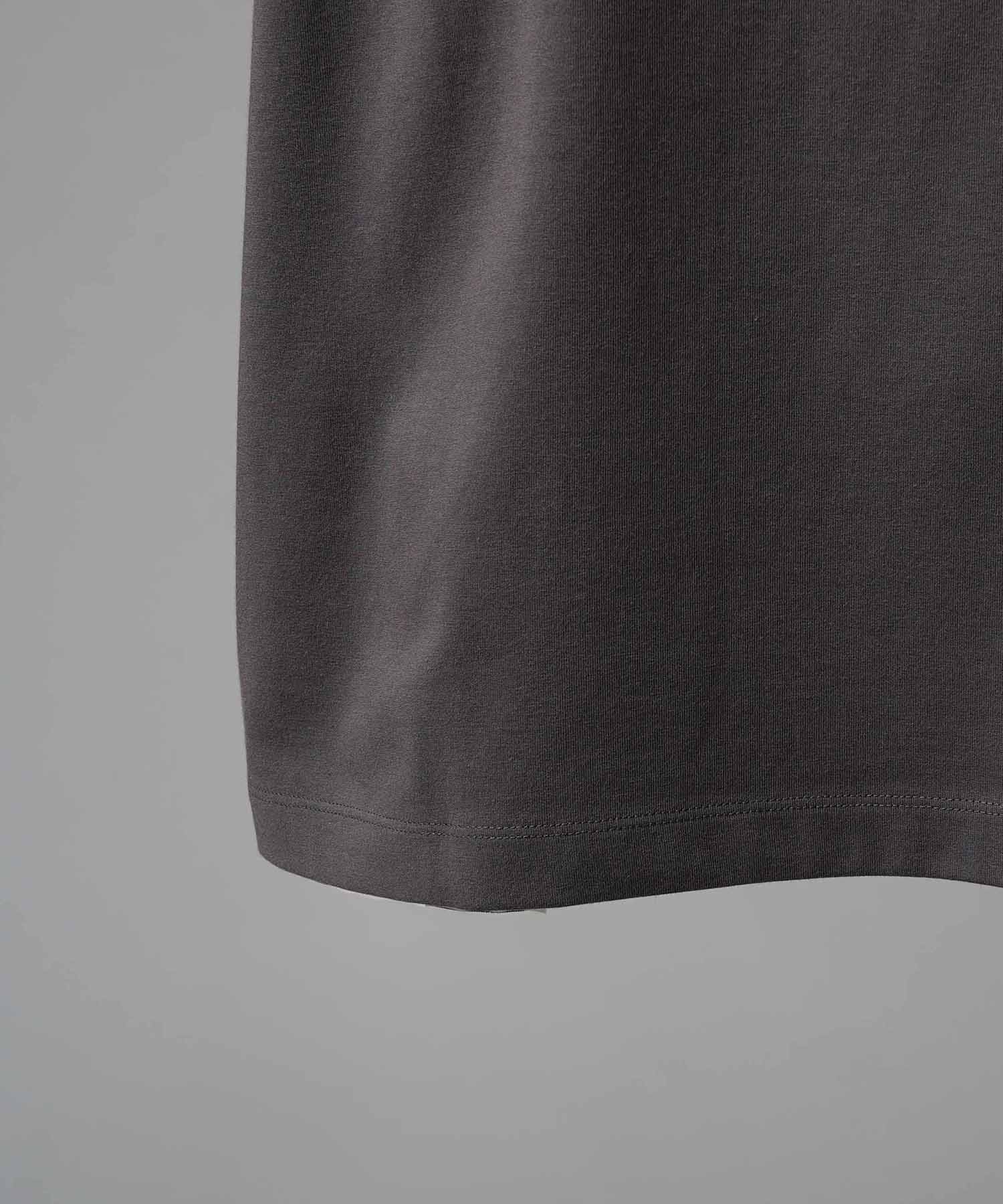 表側はコンパクト綿、裏側には異形断面のポリエステル糸を使用し、プレーティング状の天竺を編み立て。