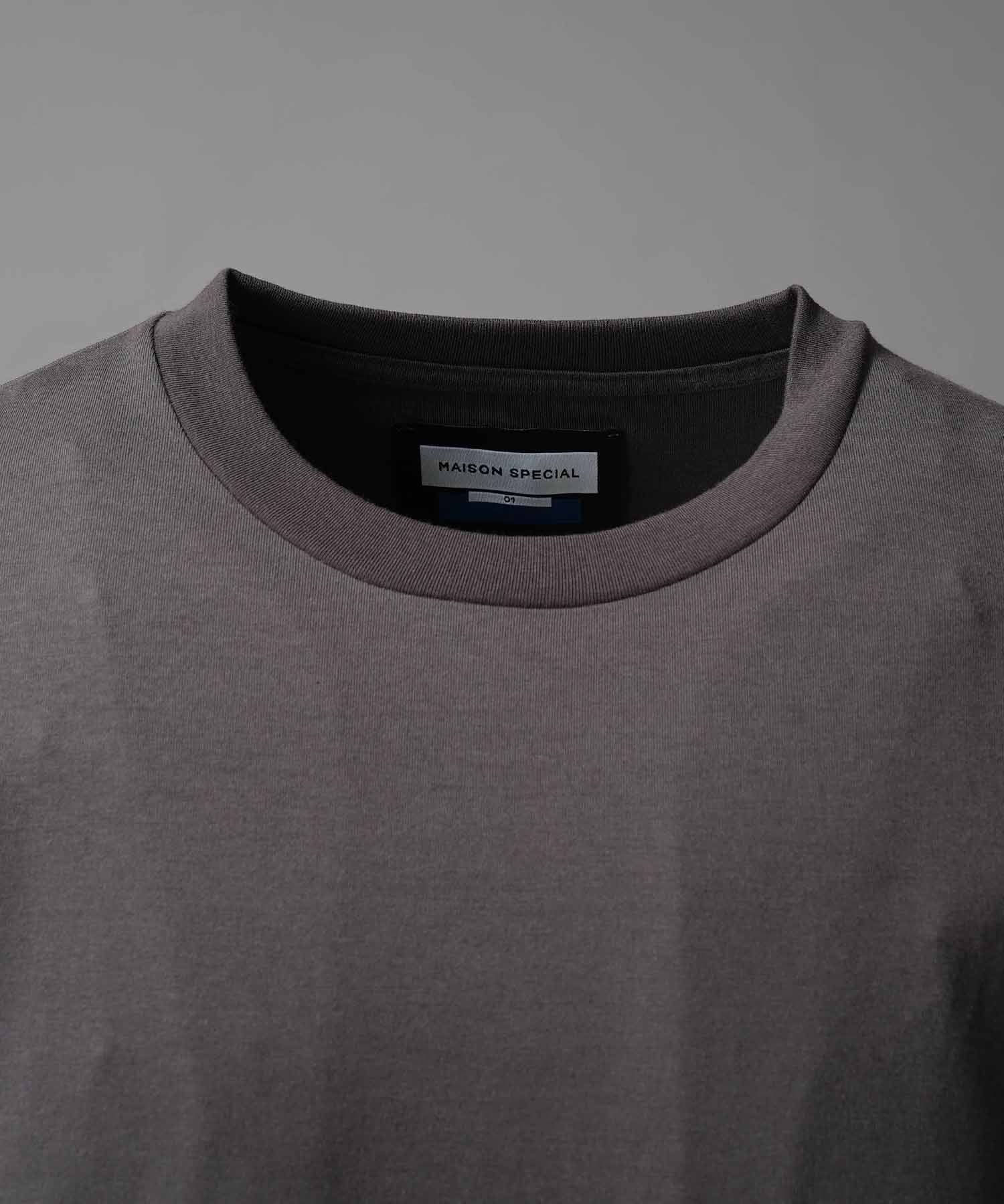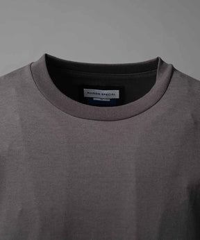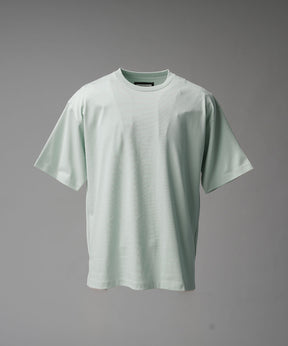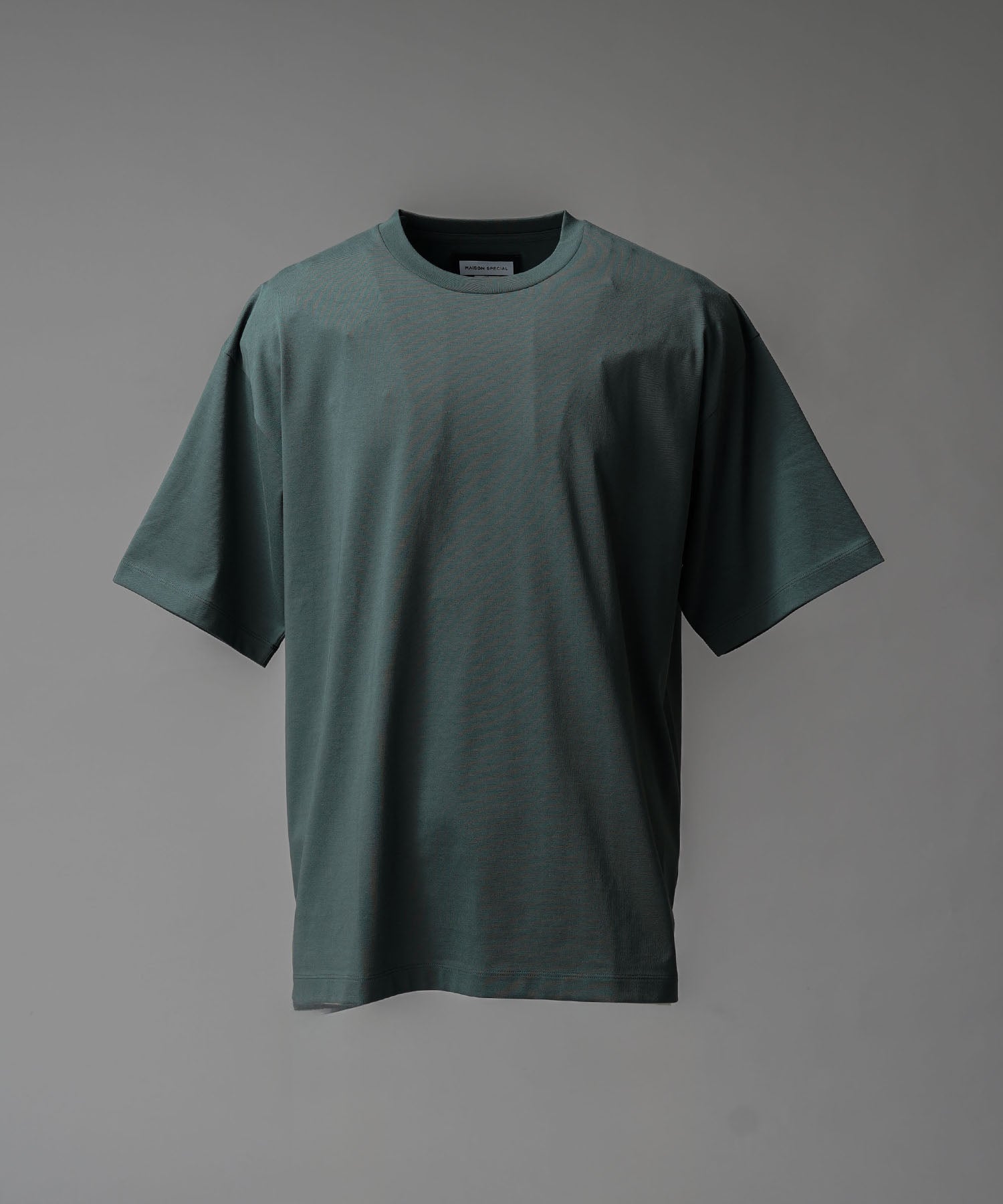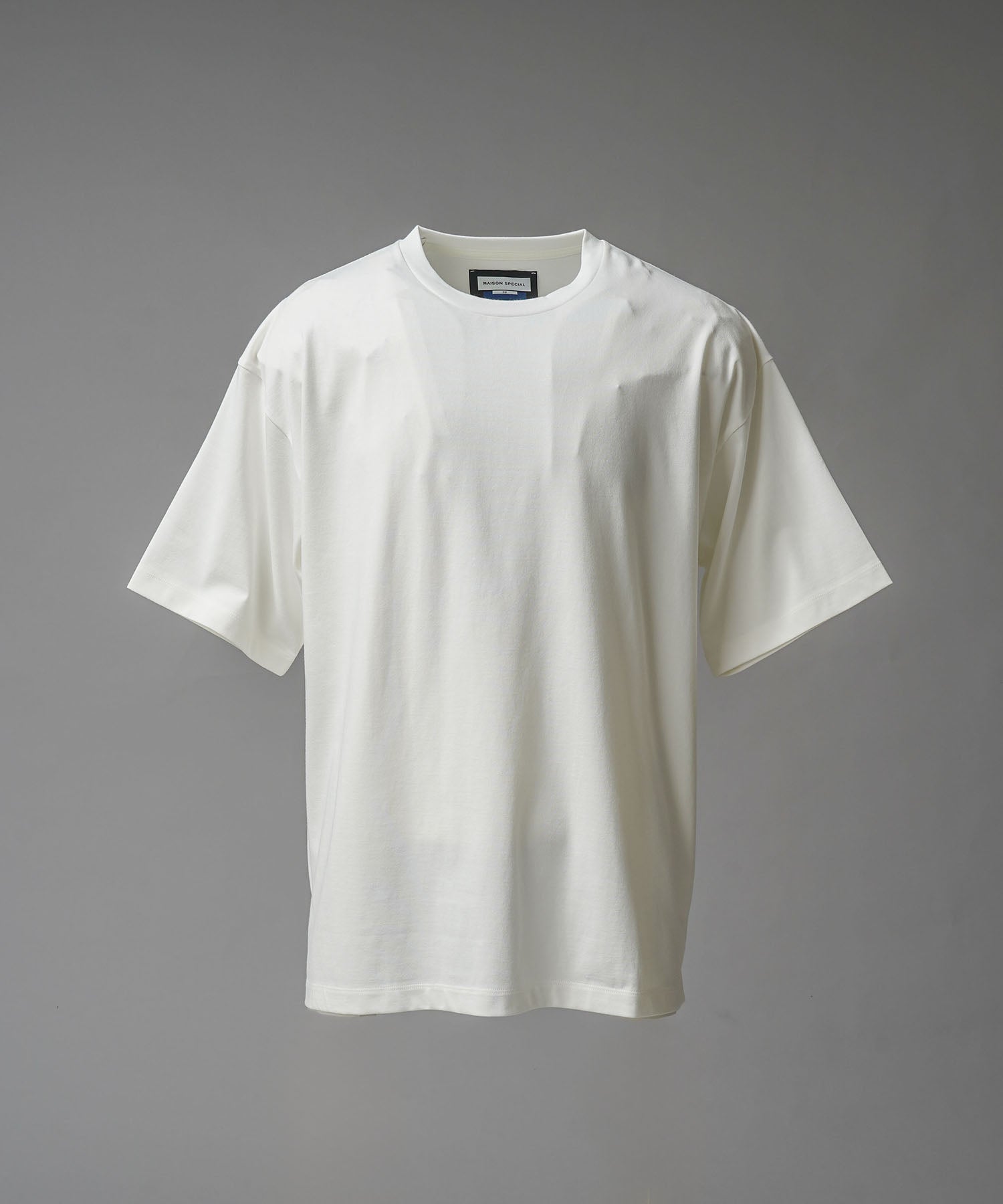 表側はコンパクト綿、裏側には異形断面のポリエステル糸を使用し、プレーティング状の天竺を編み立て。