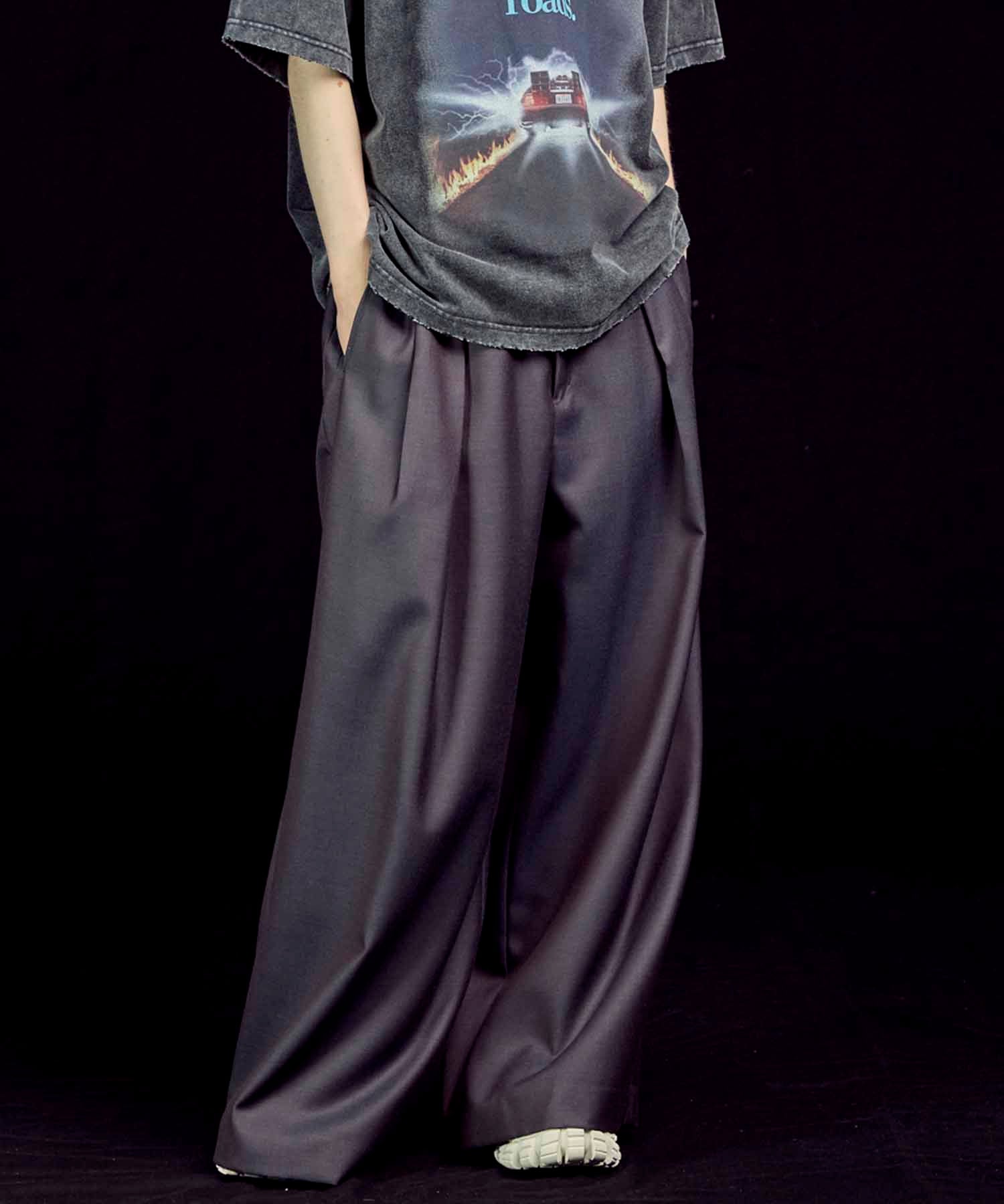 ■贅沢に生地分量を使用した超ワイドシルエットのバギーパンツ。