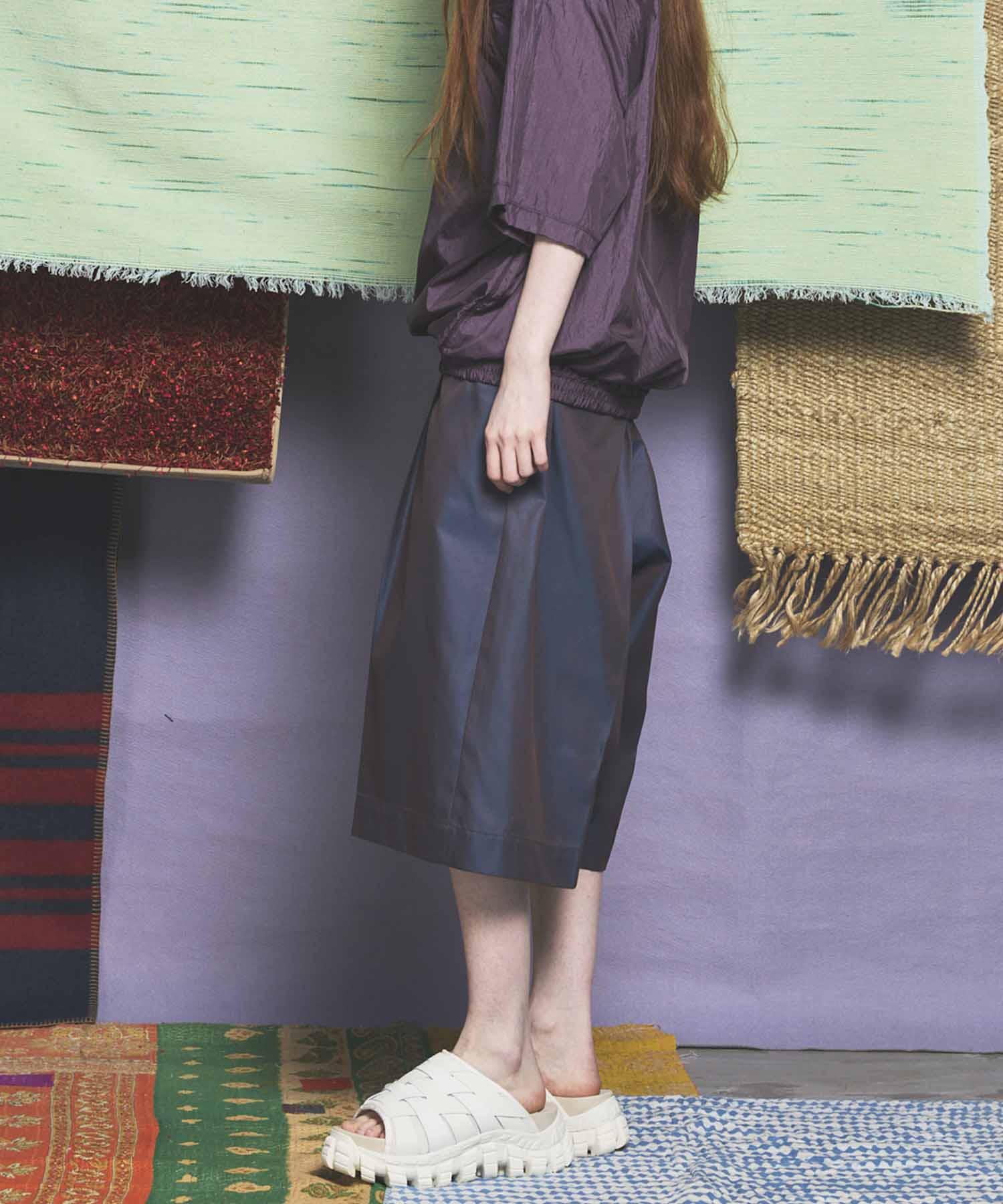 ウエストはゴムを施したイージー仕様となり、約10〜15cmほど伸縮するため、負担の無い快適な着用感と、サイズ選びの幅も広がります。