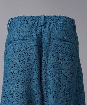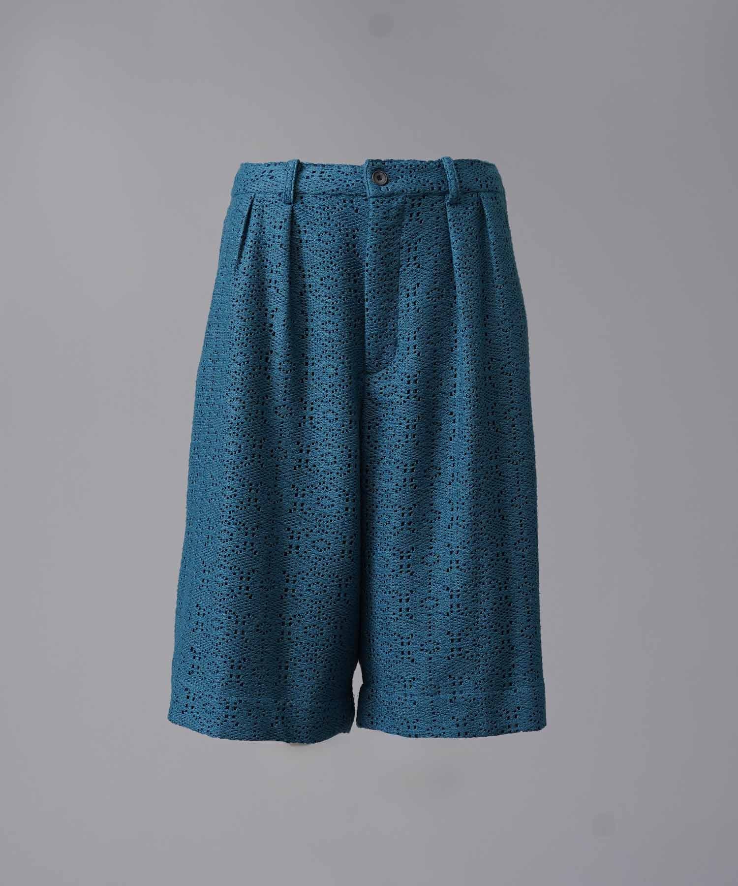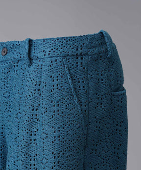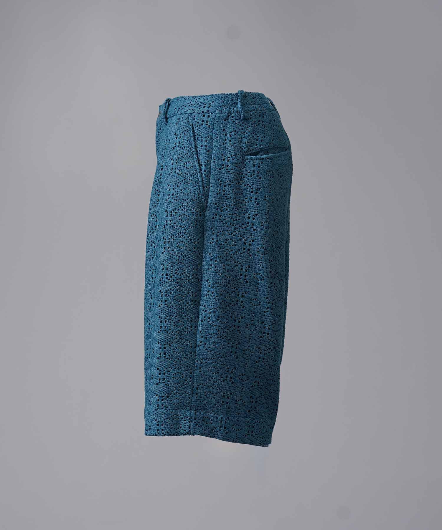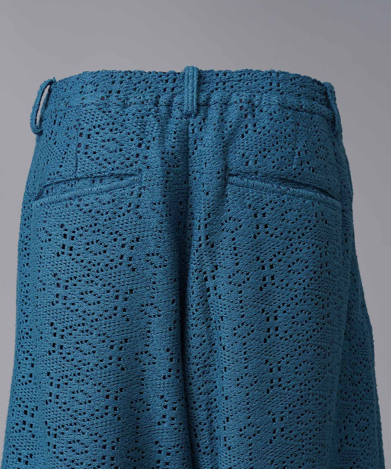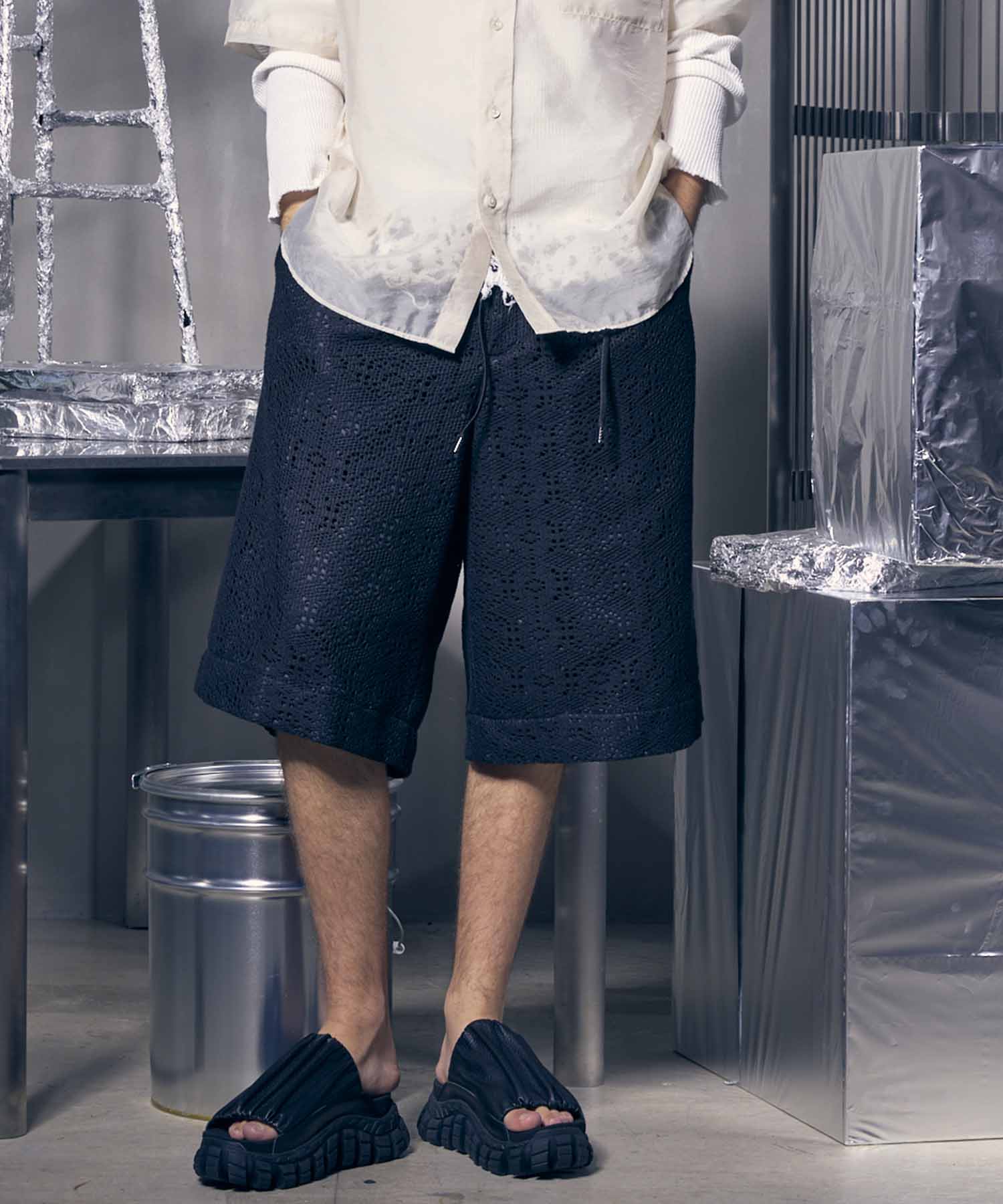 ■幾何学模様のクロシェ編みのような編地で、立体感と透け感がポイントのアイテム。