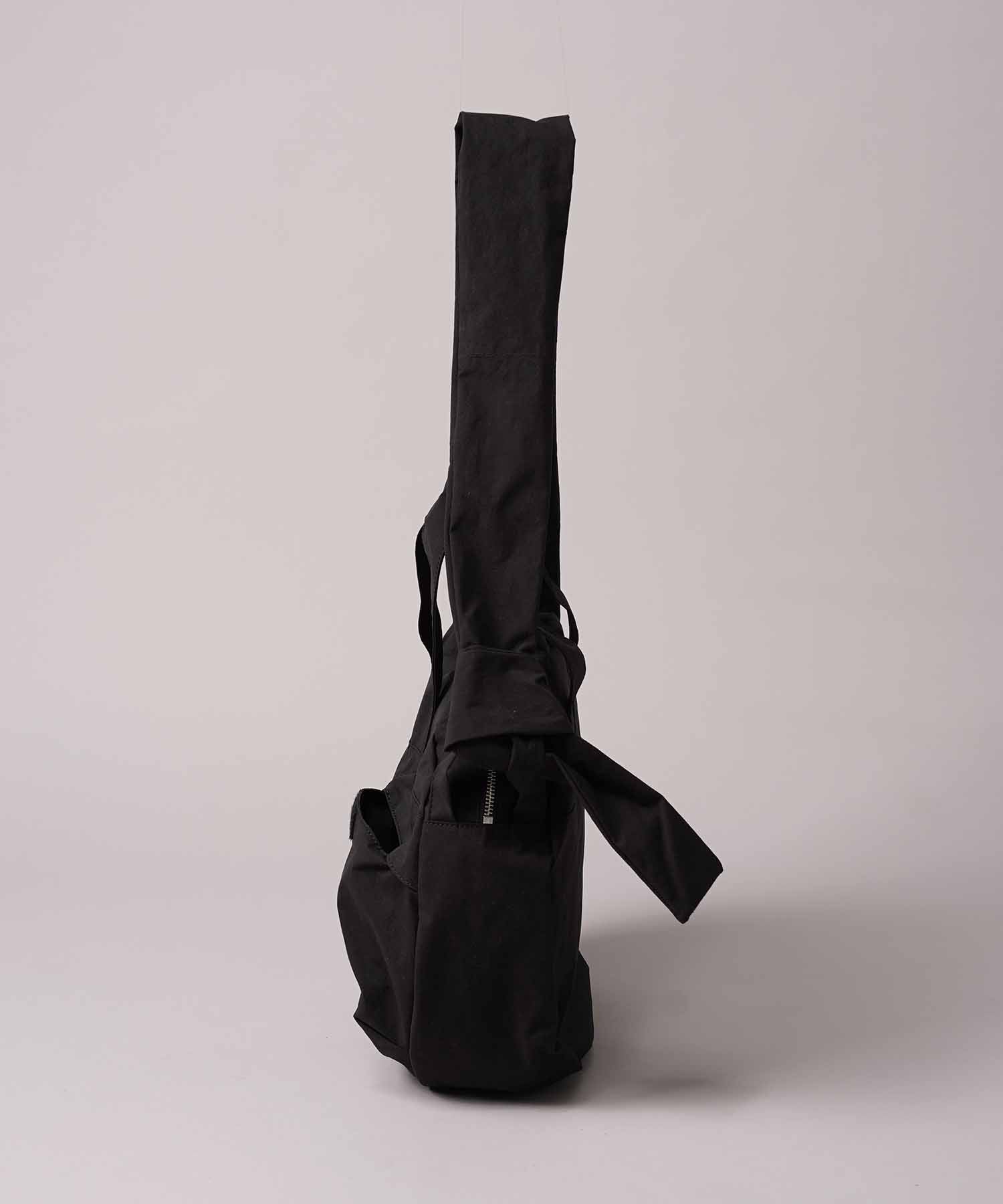 ショルダーストラップは片側で結ぶ仕様のため、自分好みの長さに調整可能。