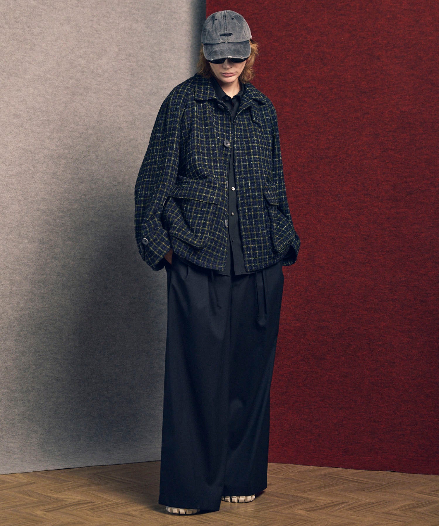 一見普遍的に見えるアイテムにも、どこか違和感のあるシルエットや、ミスマッチにも思えるような仕様の組み合わせで、装いに新風を吹き込む。