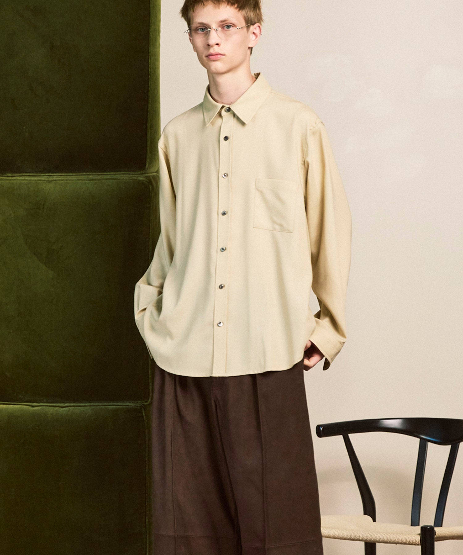 新たなシルエットで魅せる、新定番のシャツとなりえる1着をぜひお楽しみくださいませ。