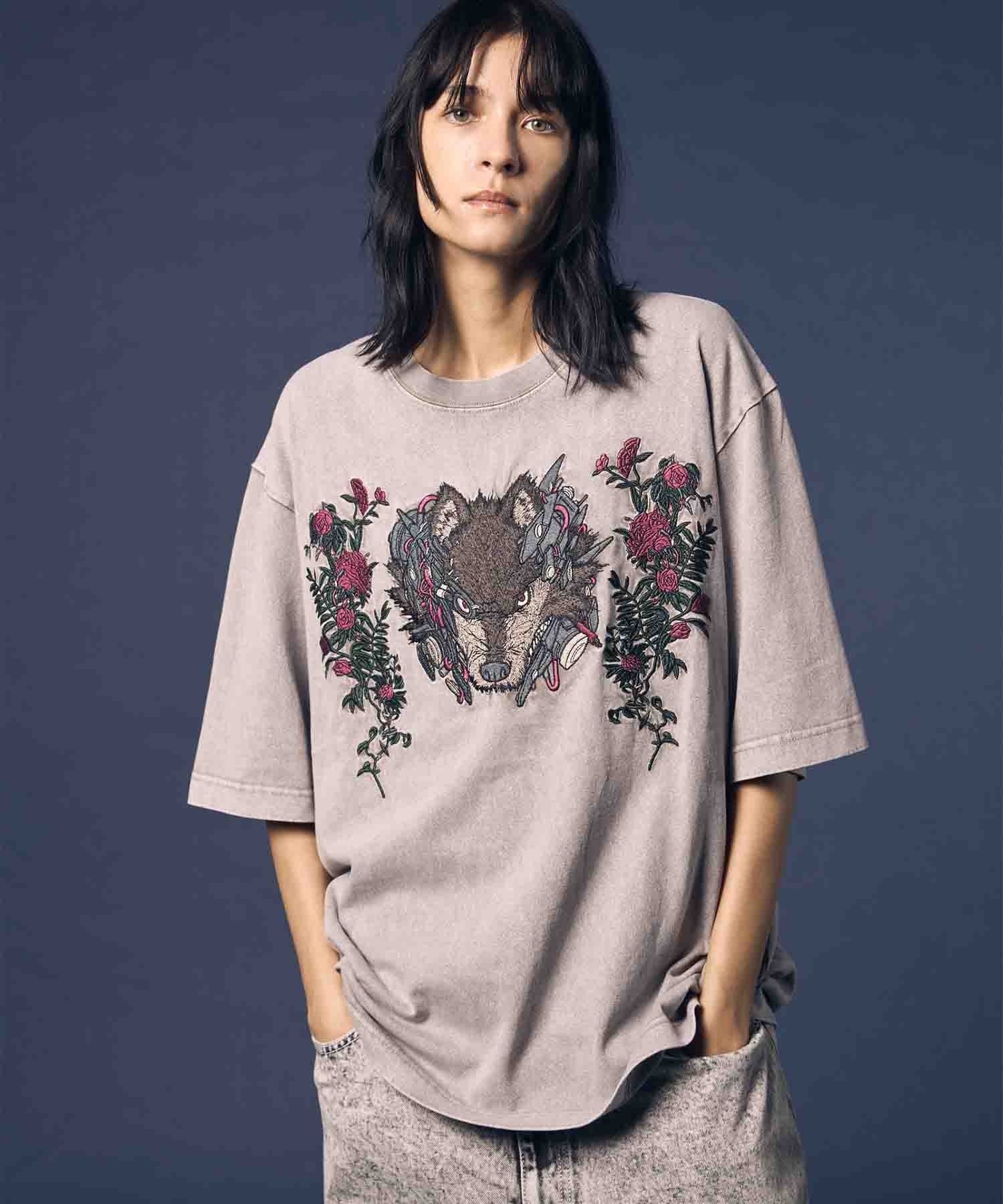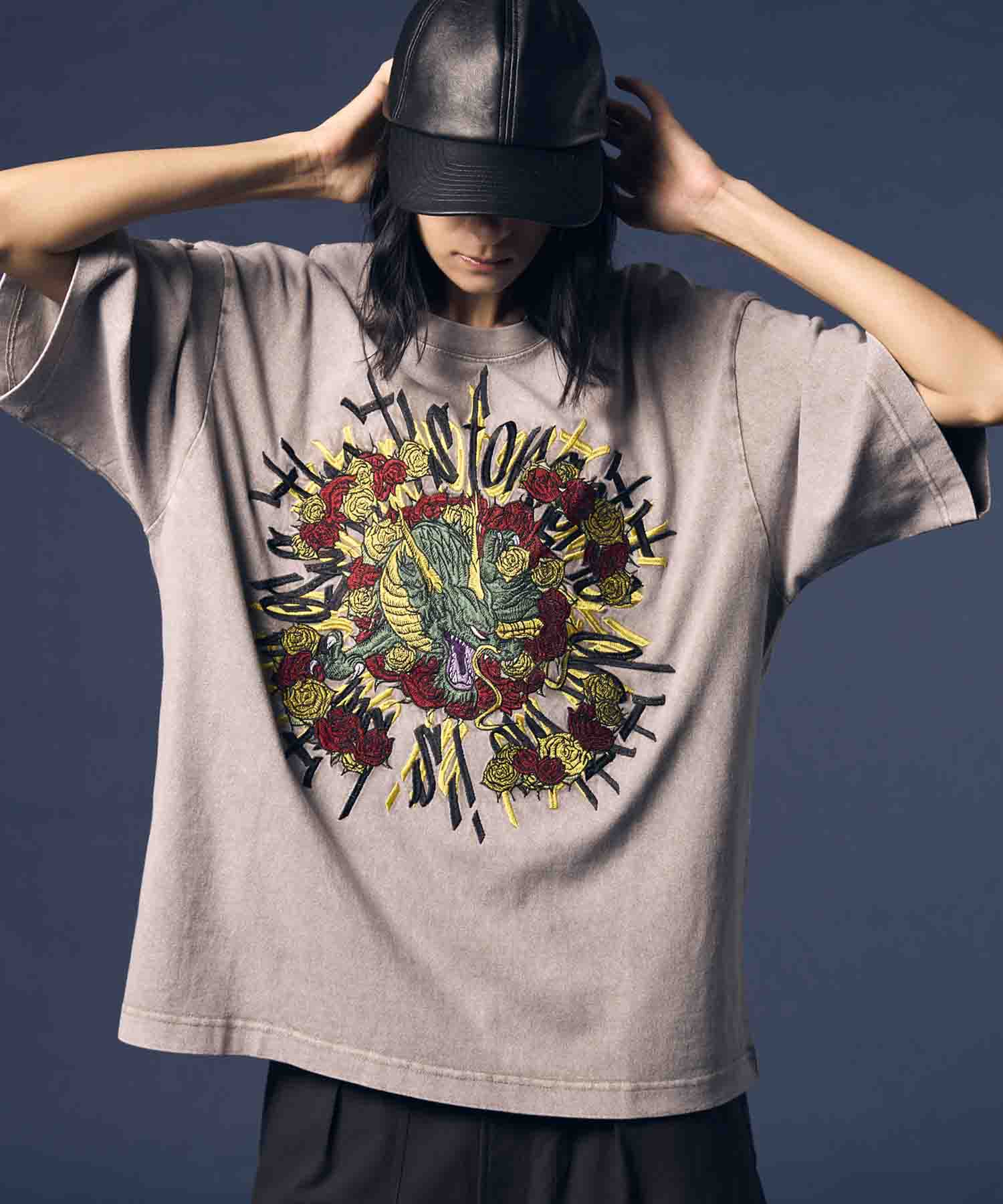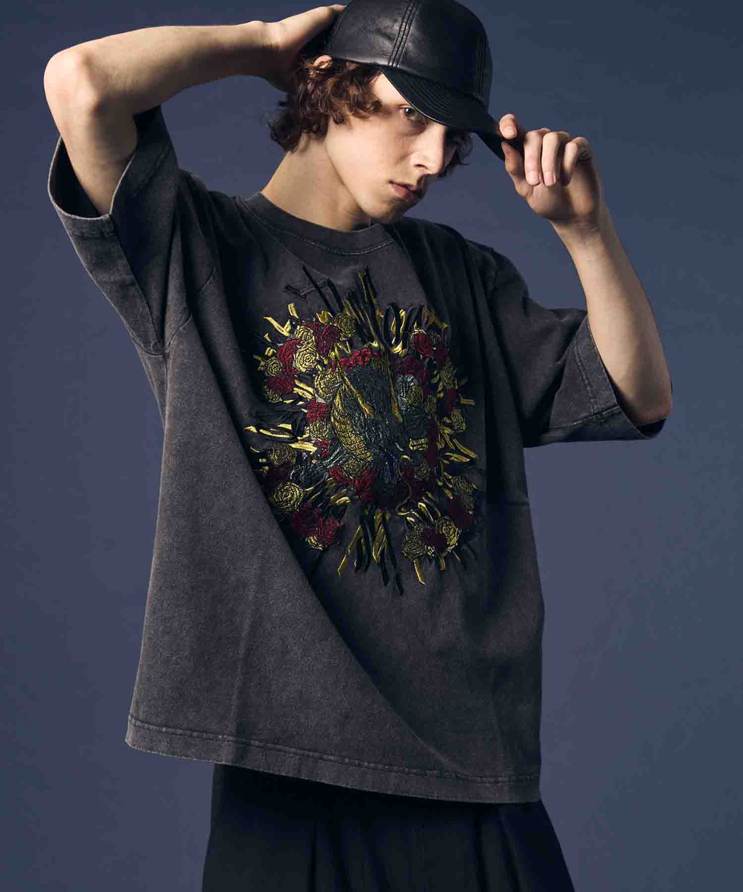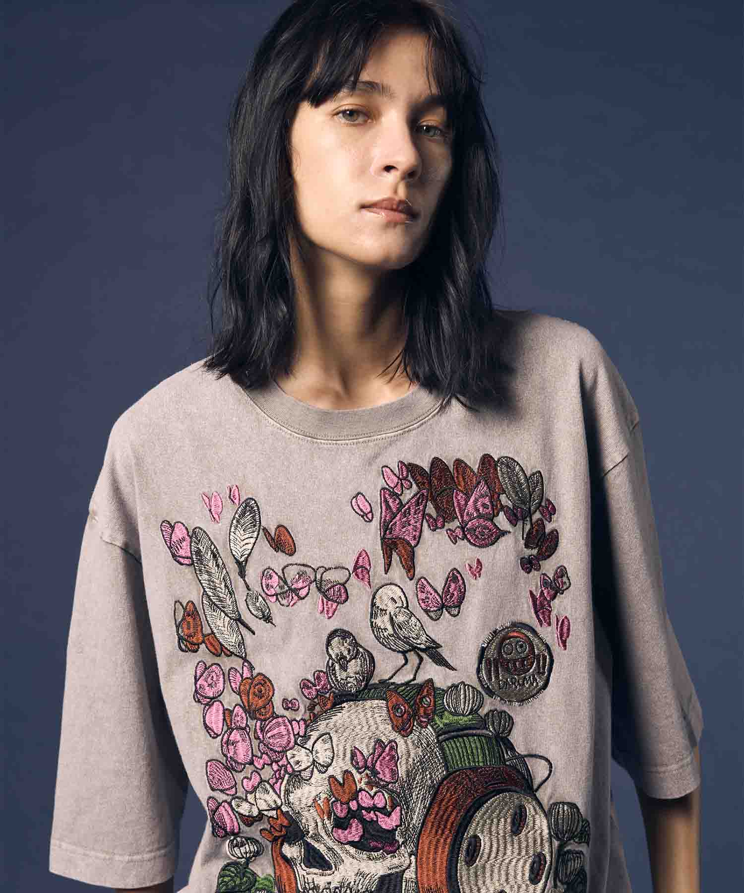 本作はアーティストによる描き下ろしアートを贅沢な刺繍と、製品加工で落とし込んだTシャツ。