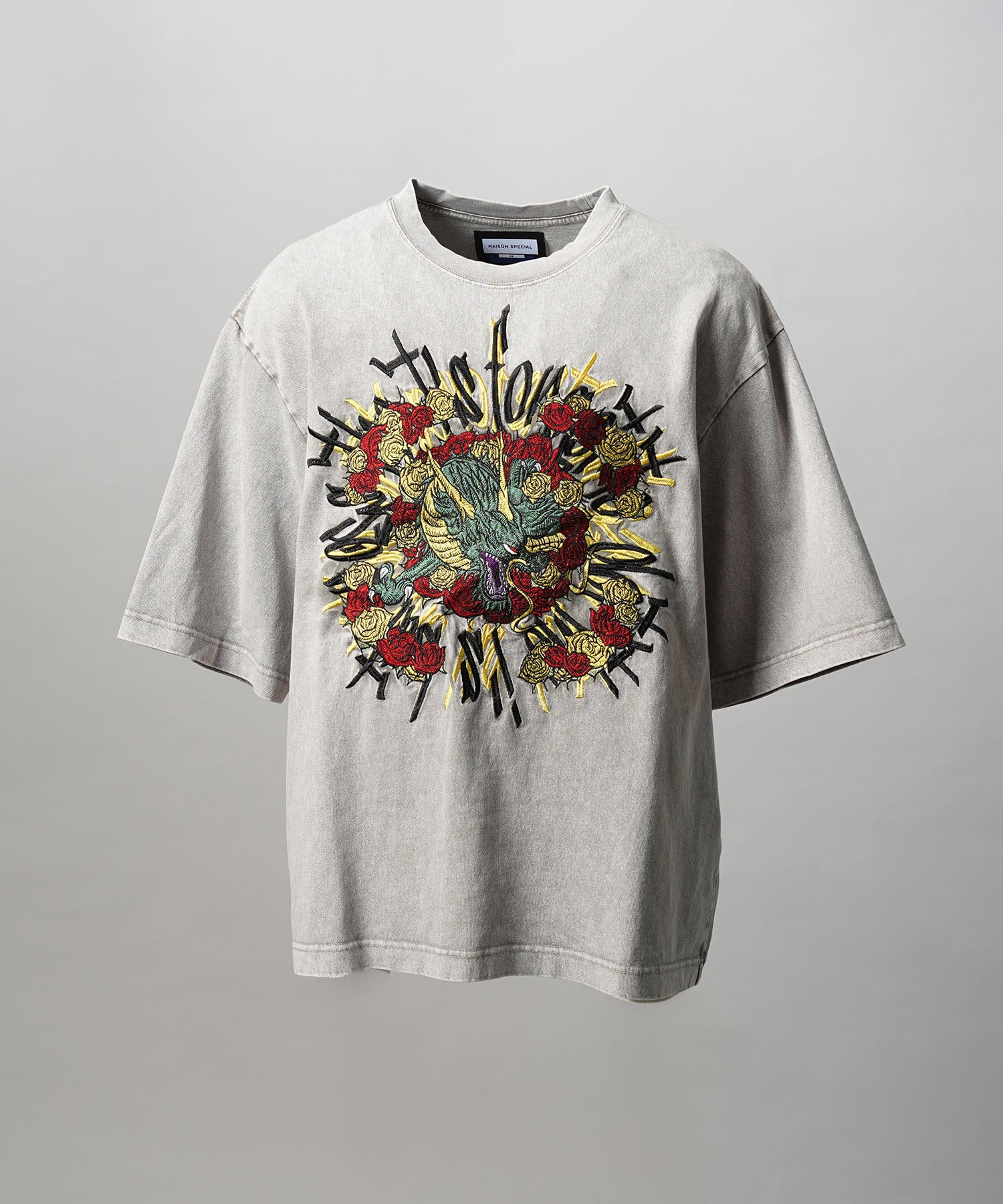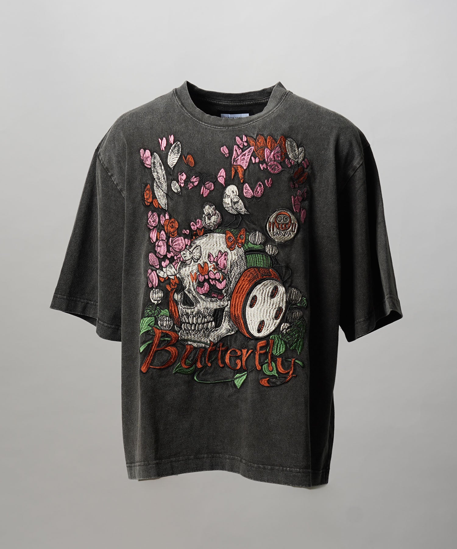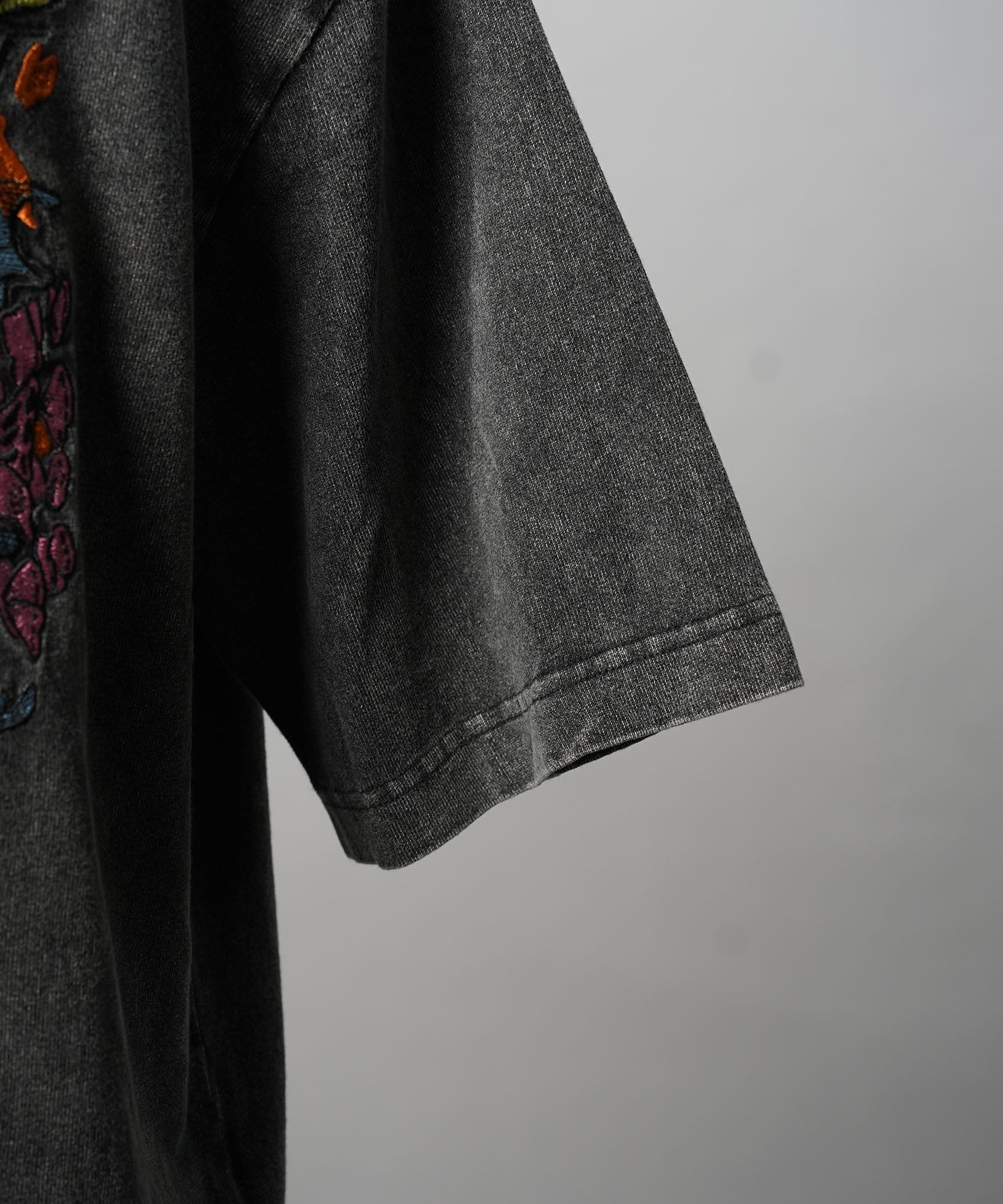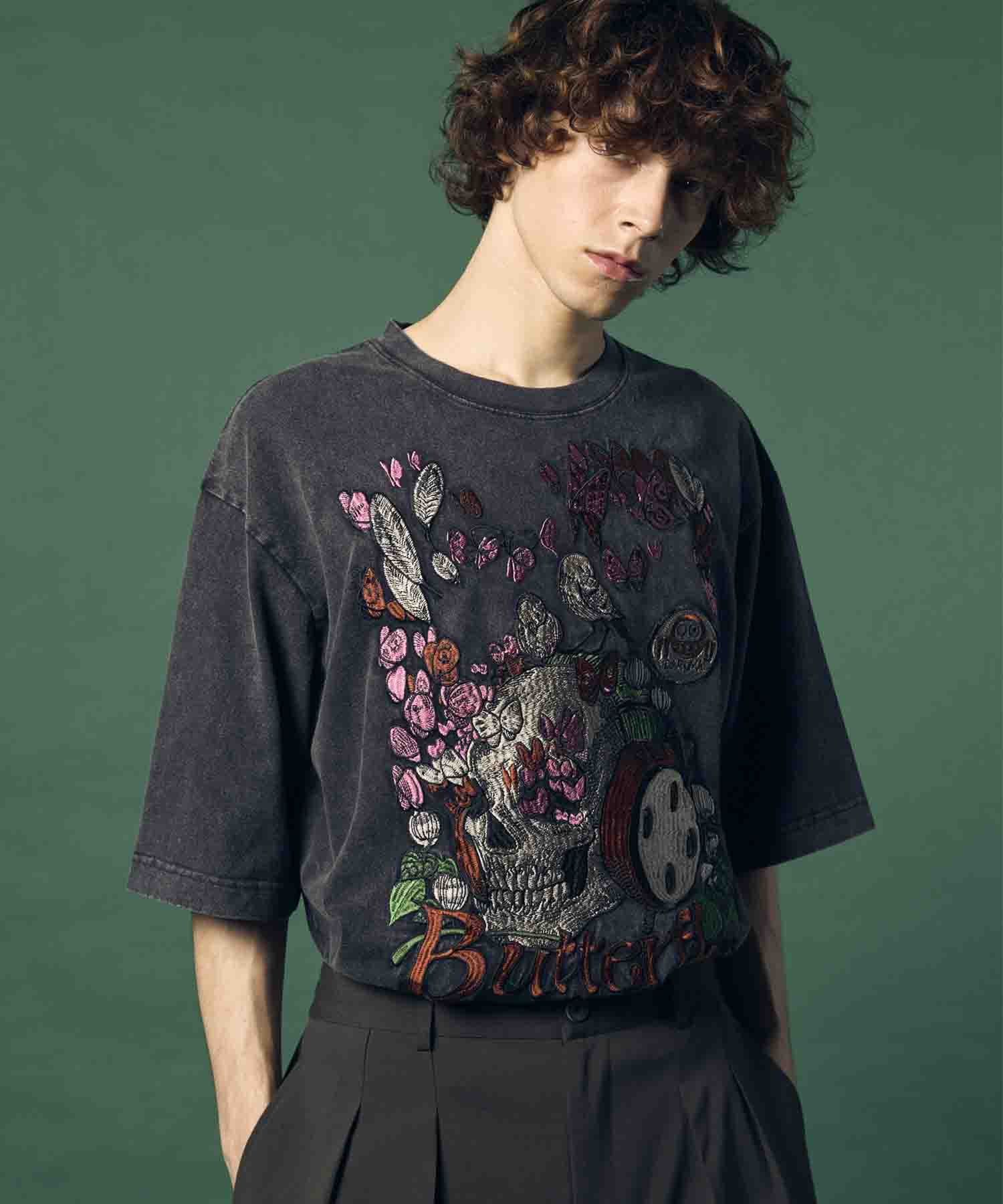 本作はアーティストによる描き下ろしアートを贅沢な刺繍と、製品加工で落とし込んだTシャツ。