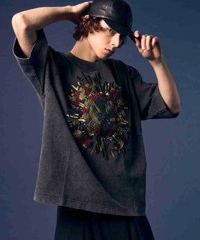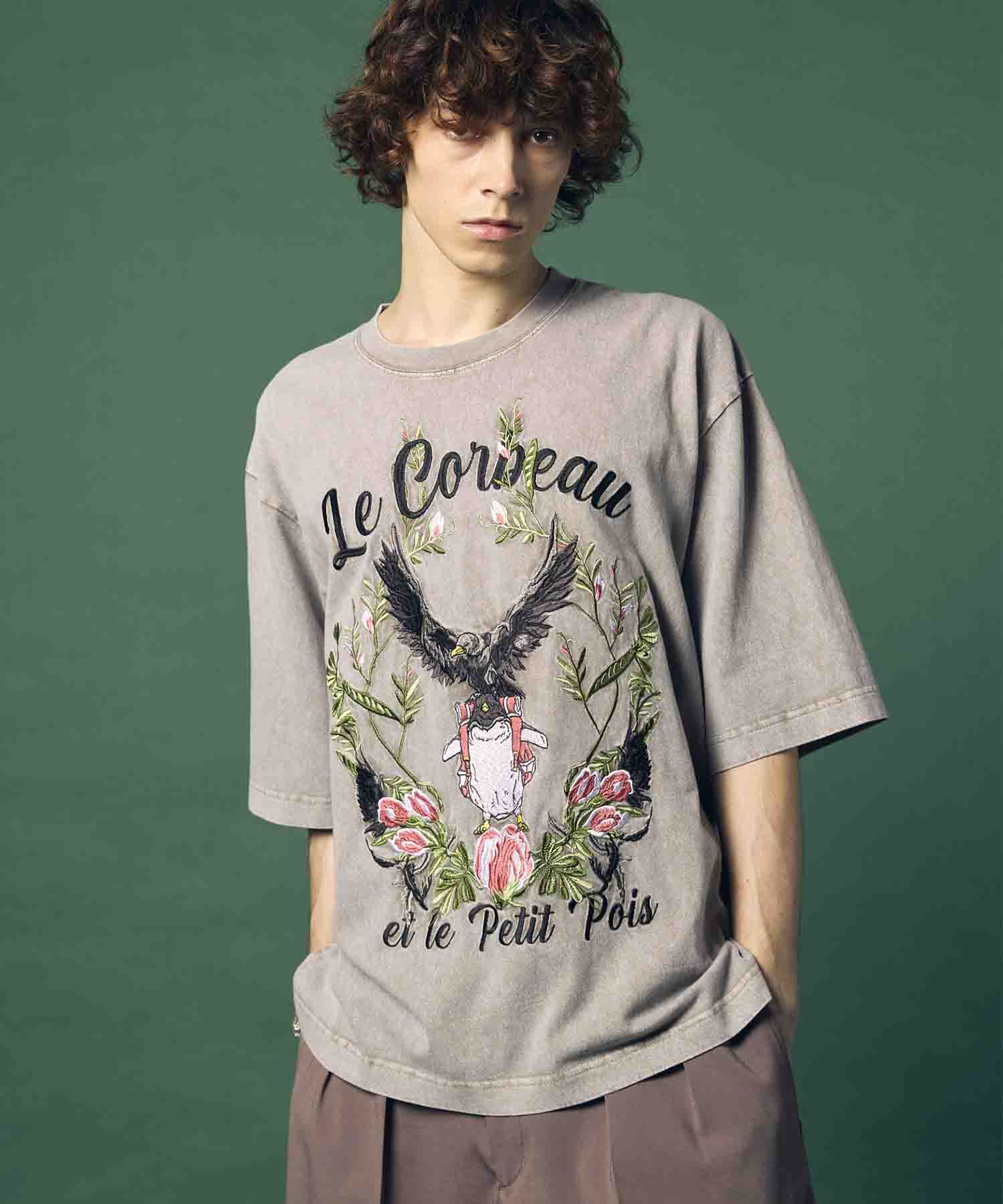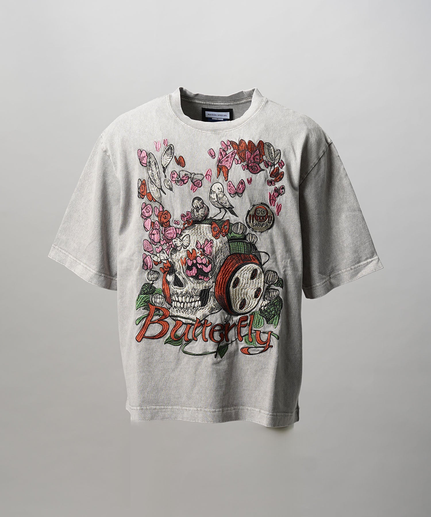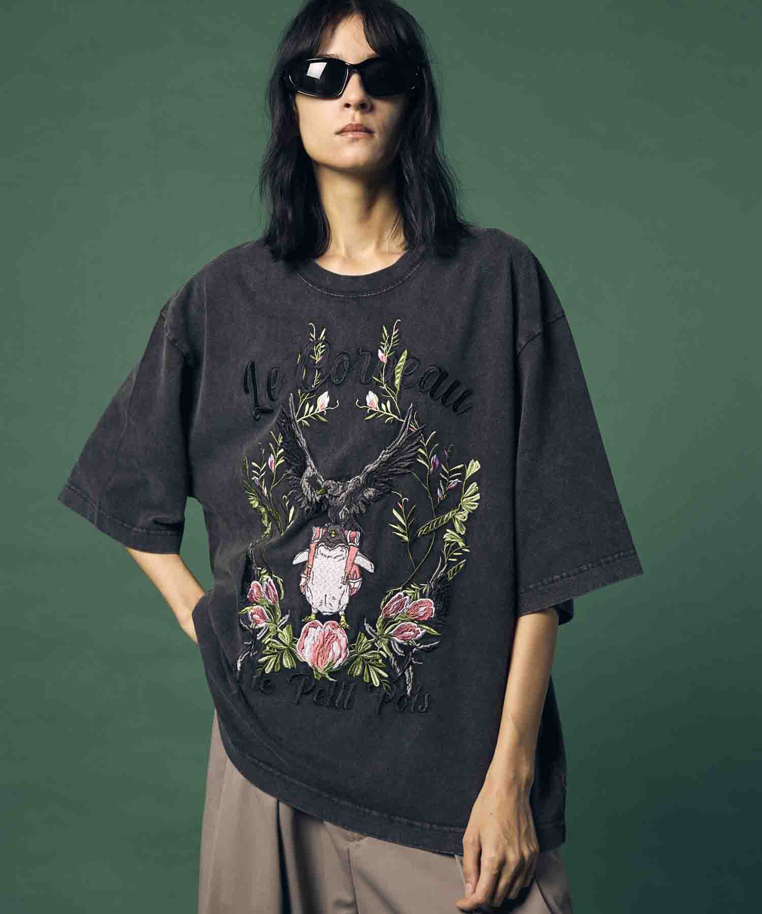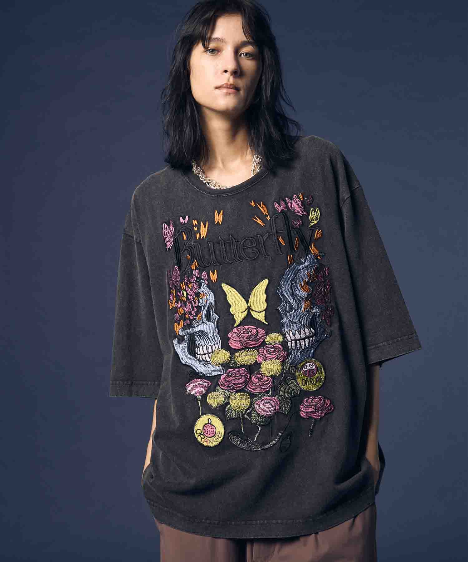本作はアーティストによる描き下ろしアートを贅沢な刺繍と、製品加工で落とし込んだTシャツ。
