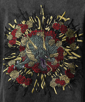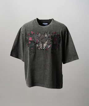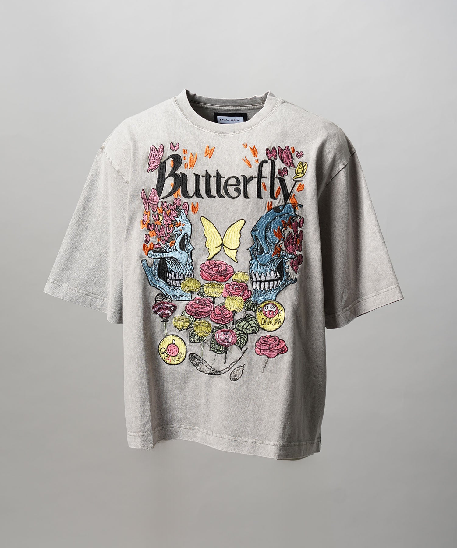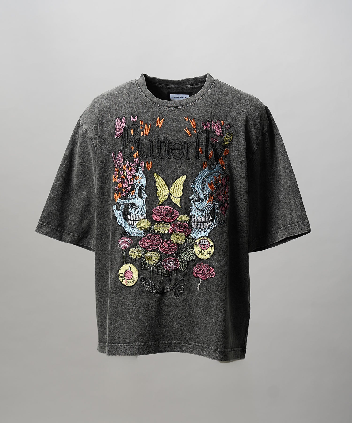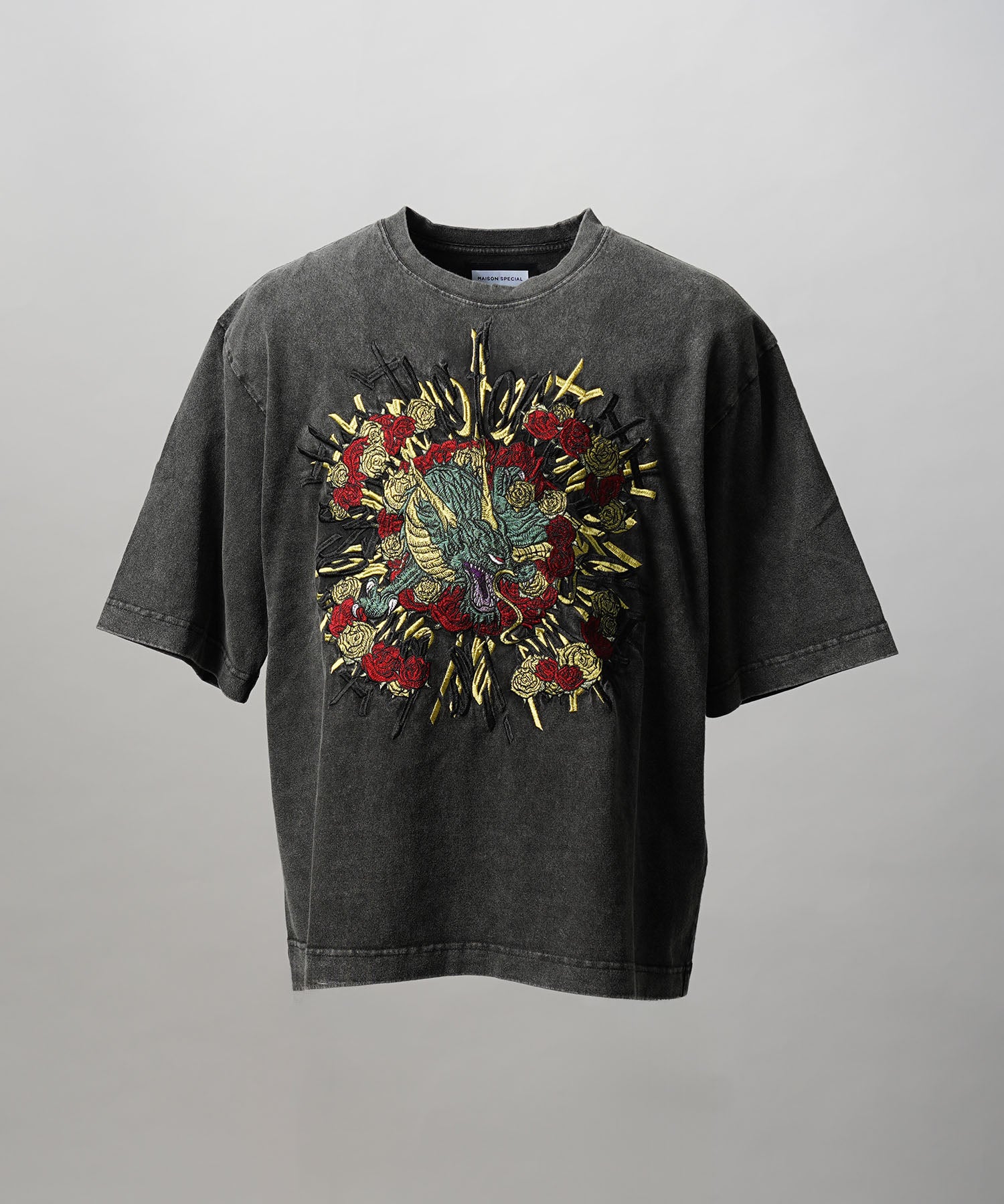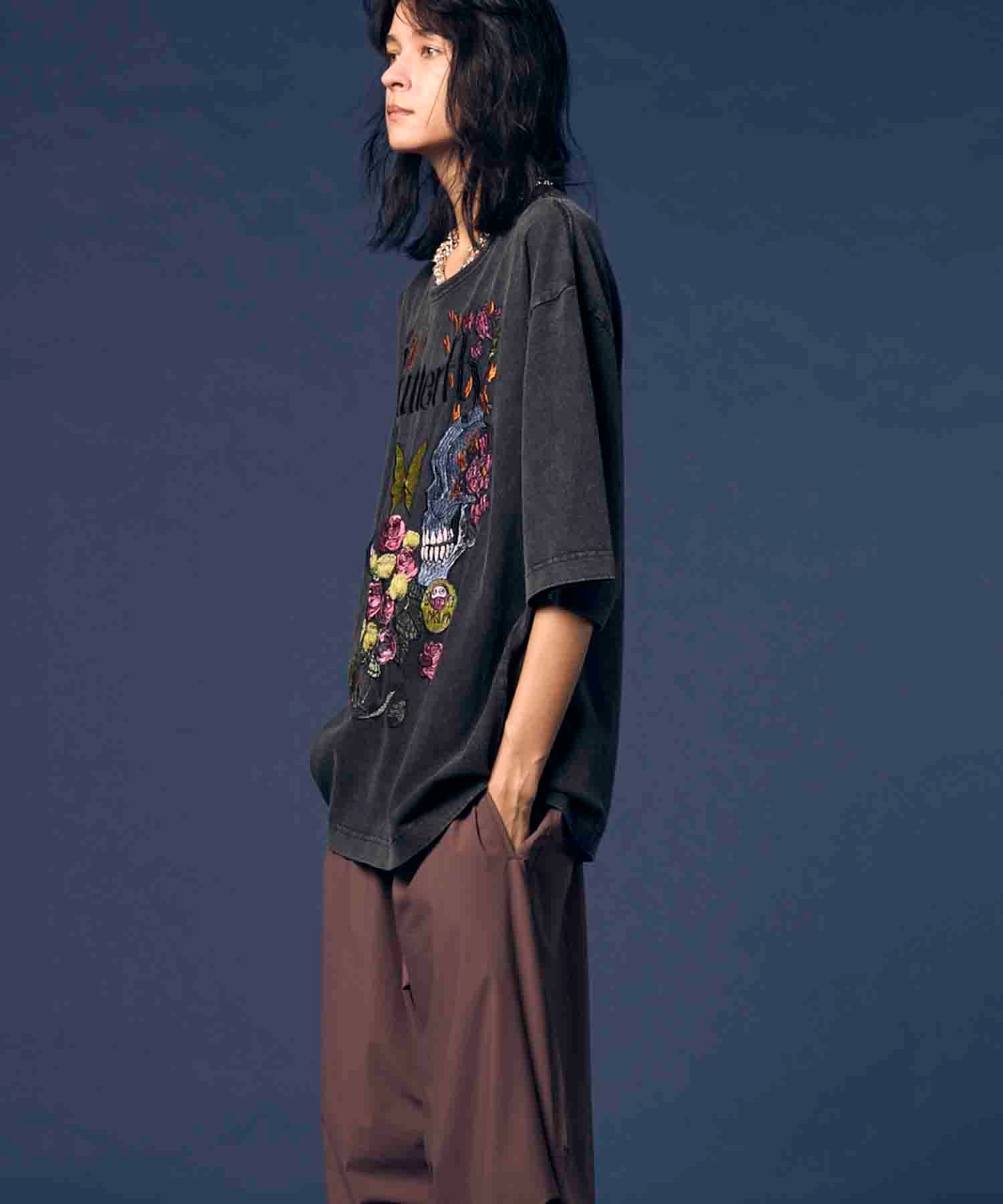 本作はアーティストによる描き下ろしアートを贅沢な刺繍と、製品加工で落とし込んだTシャツ。