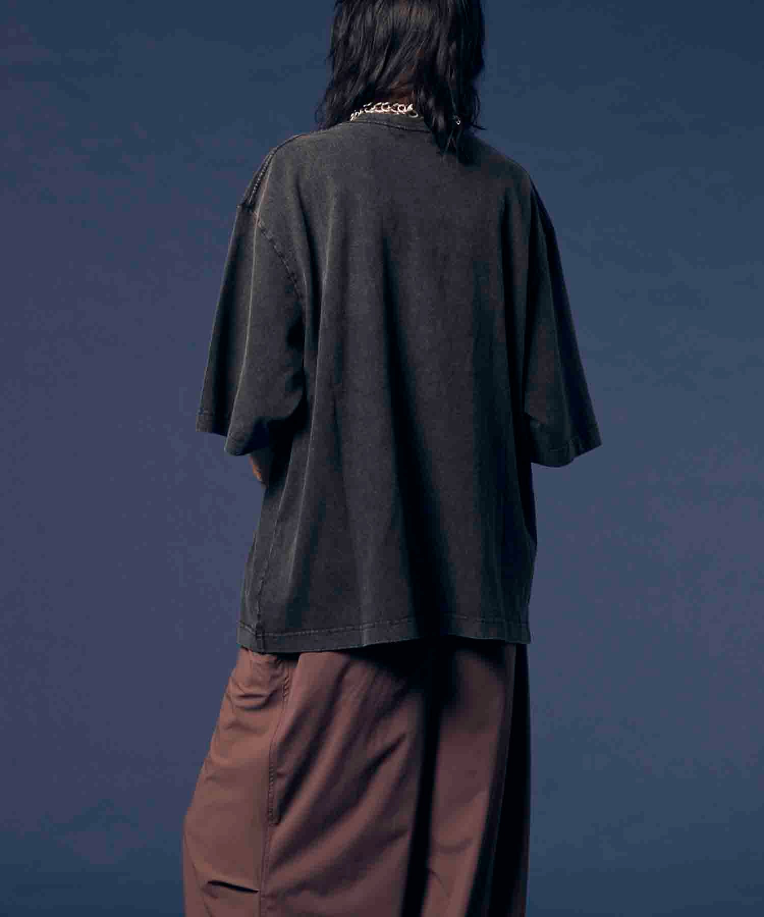 しっかりとした肉感のコットン生地を、ピグメント染めとアシッド加工によりヴィンテージ調でしなやかに加工されたボディに仕上げました。