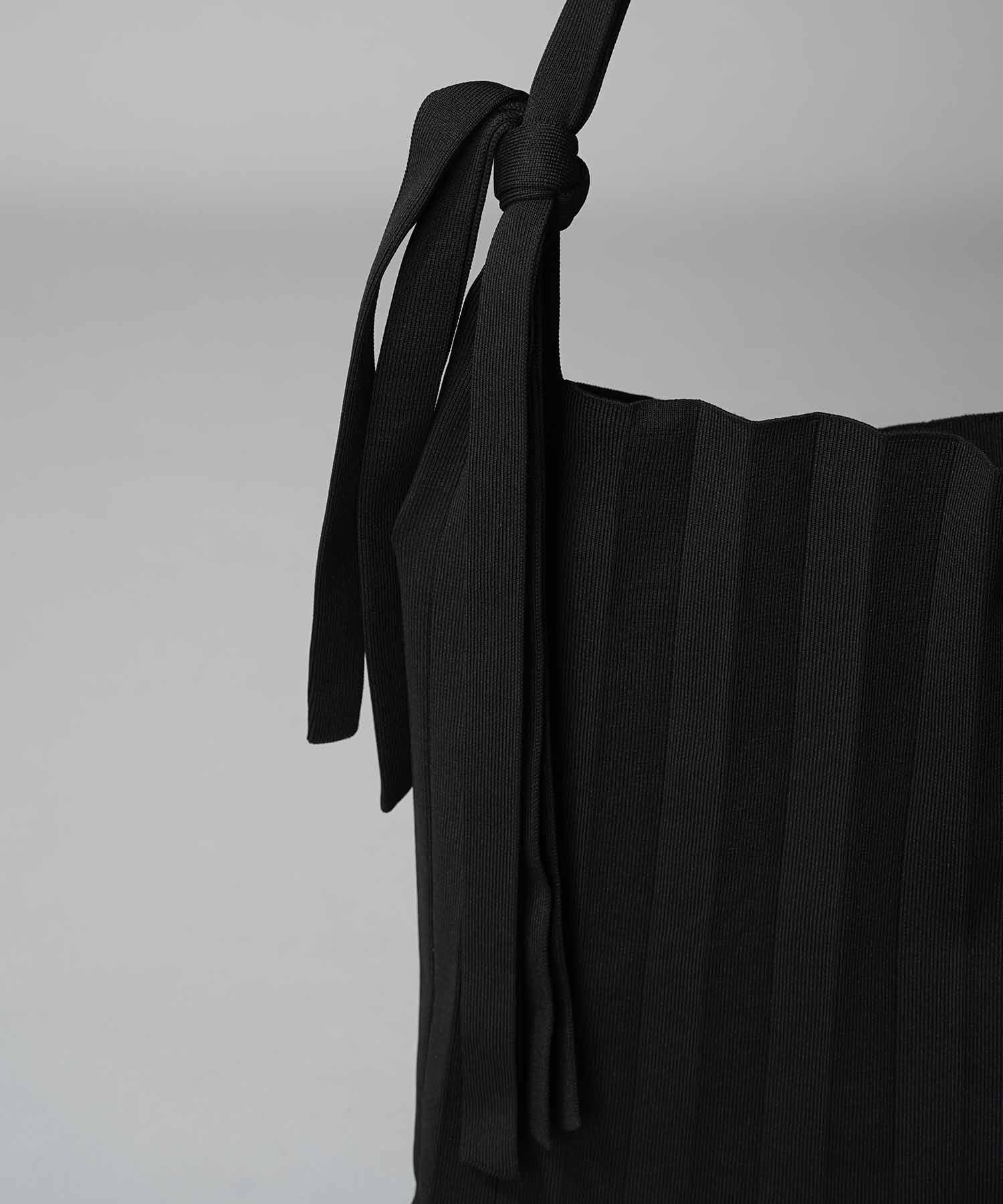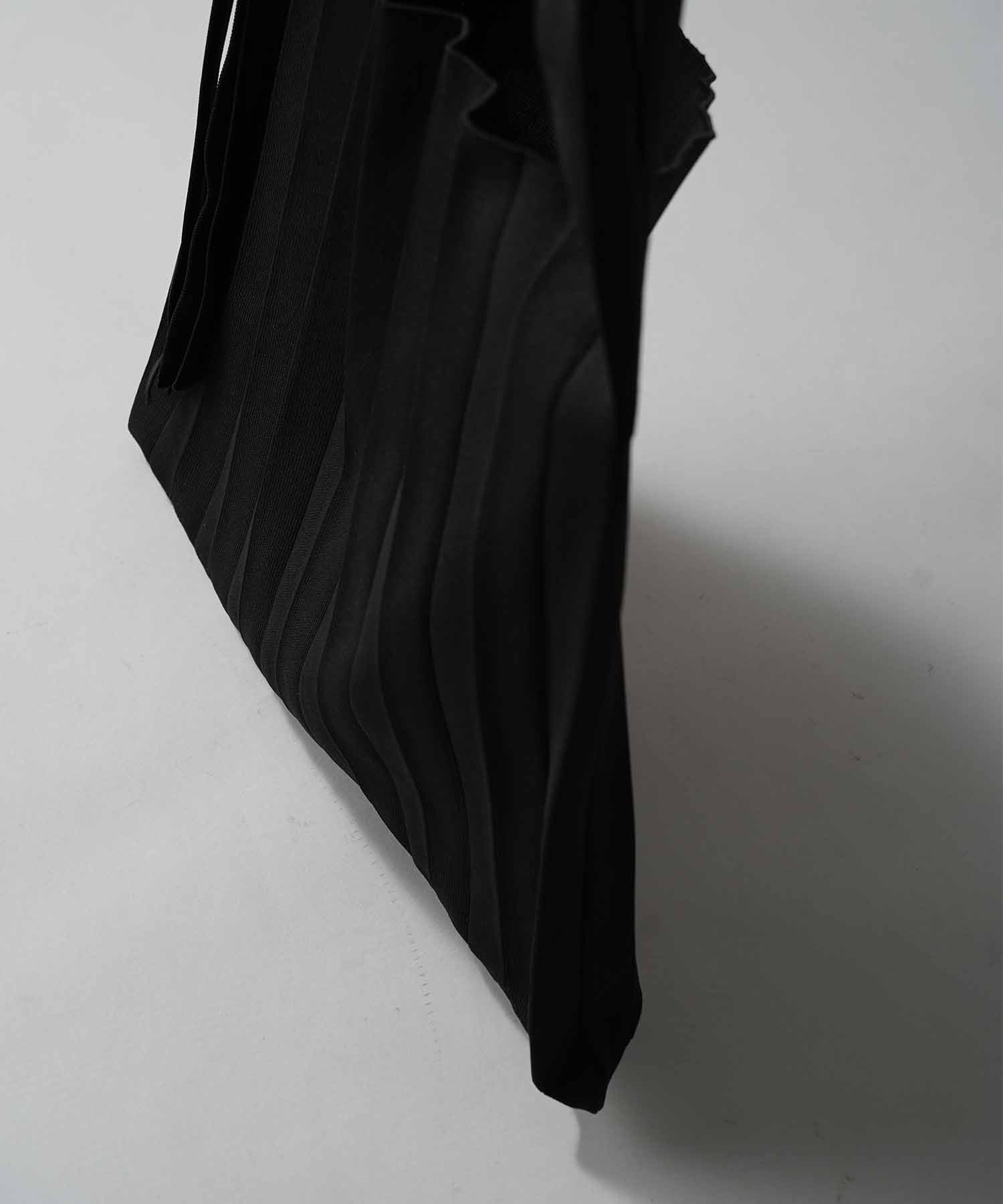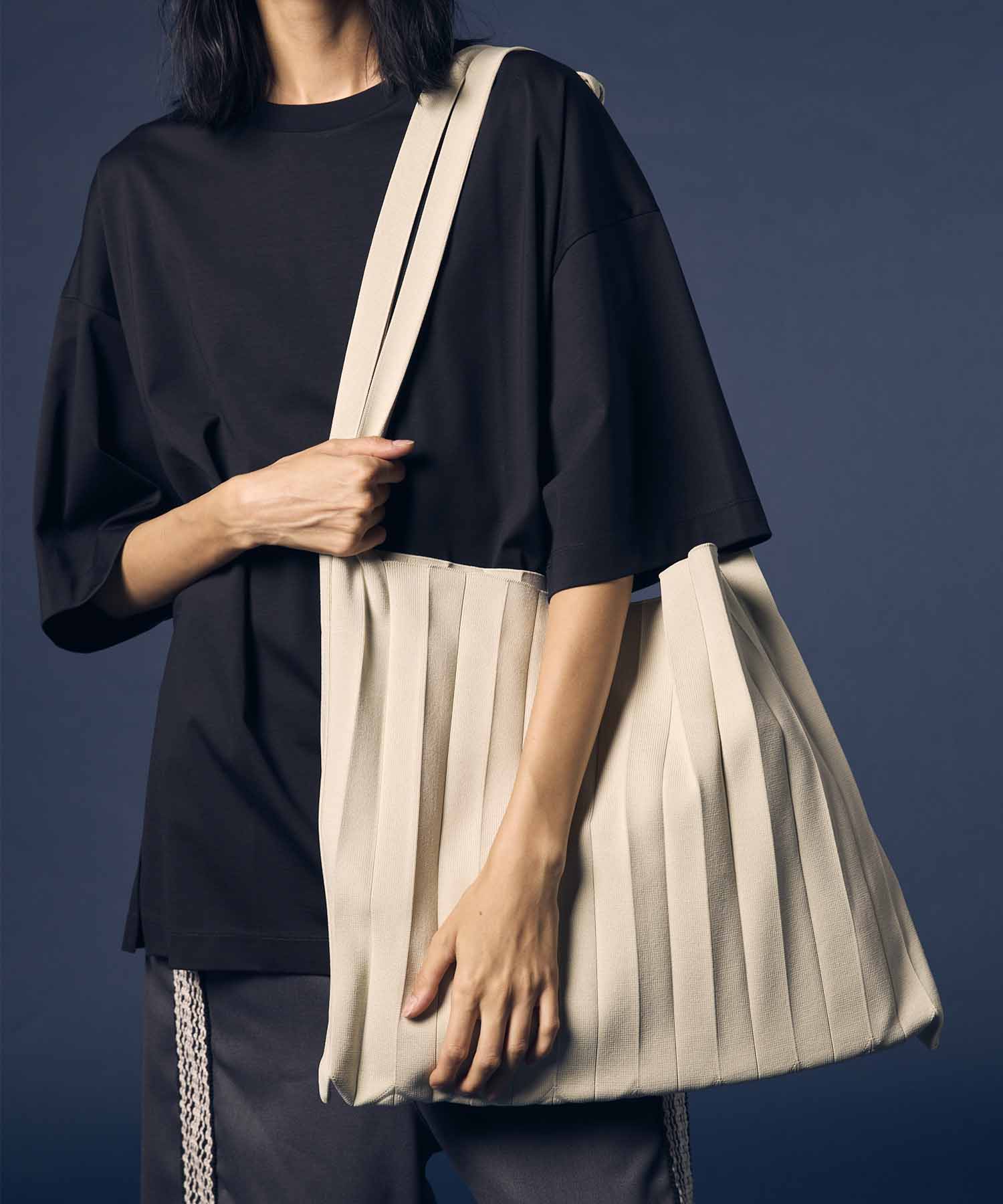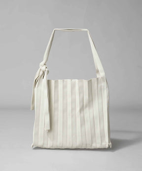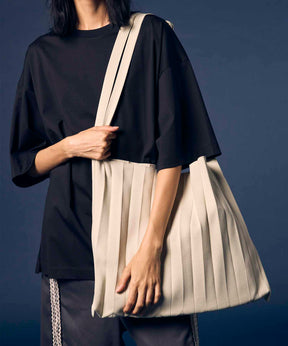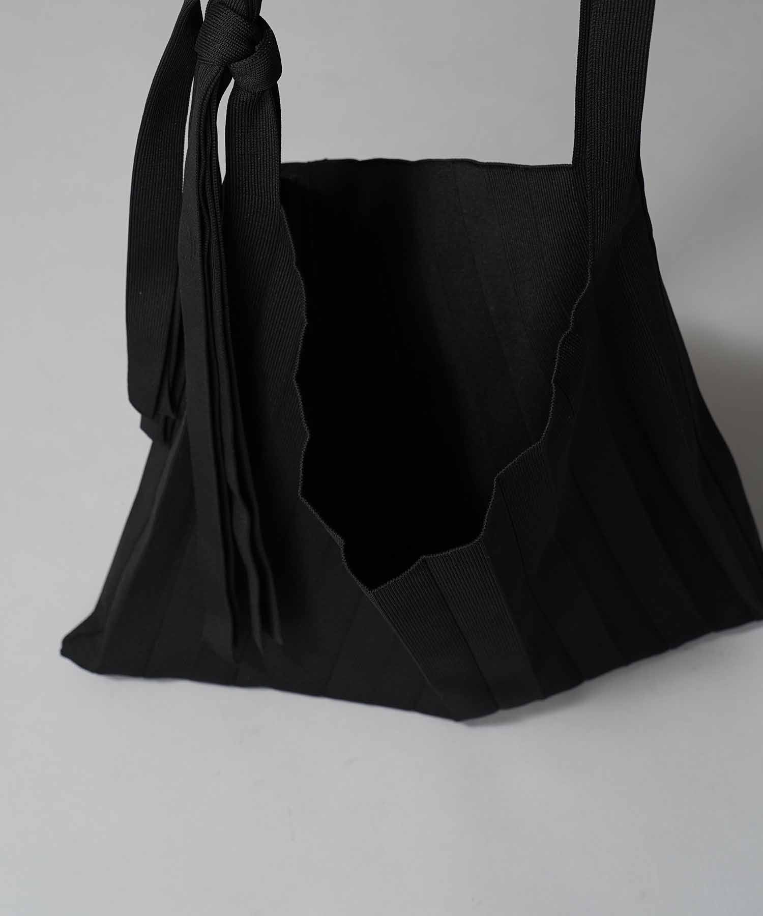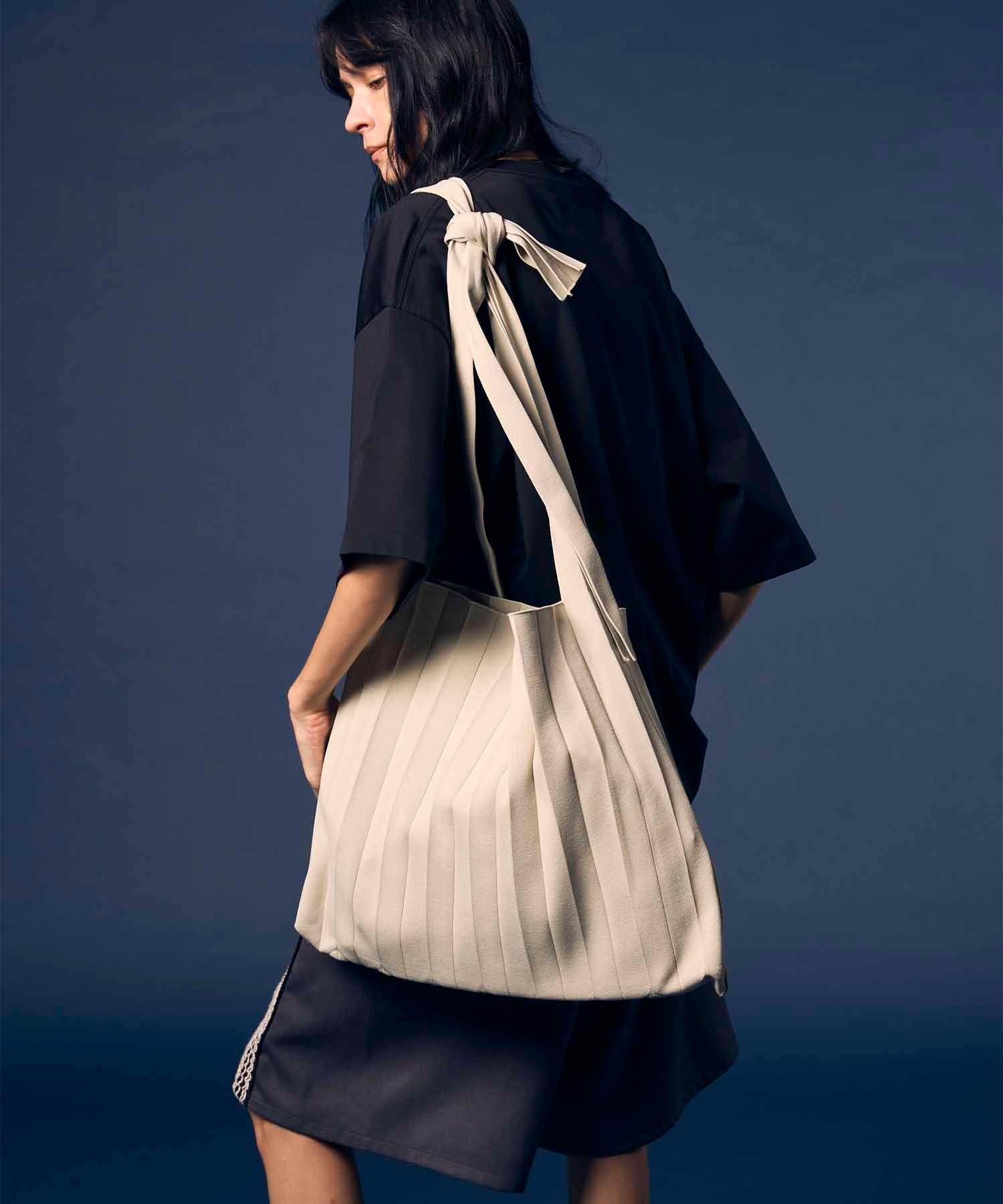 独特な縦プリーツが目を惹く、ニュアンス感たっぷりのニットバッグ。