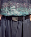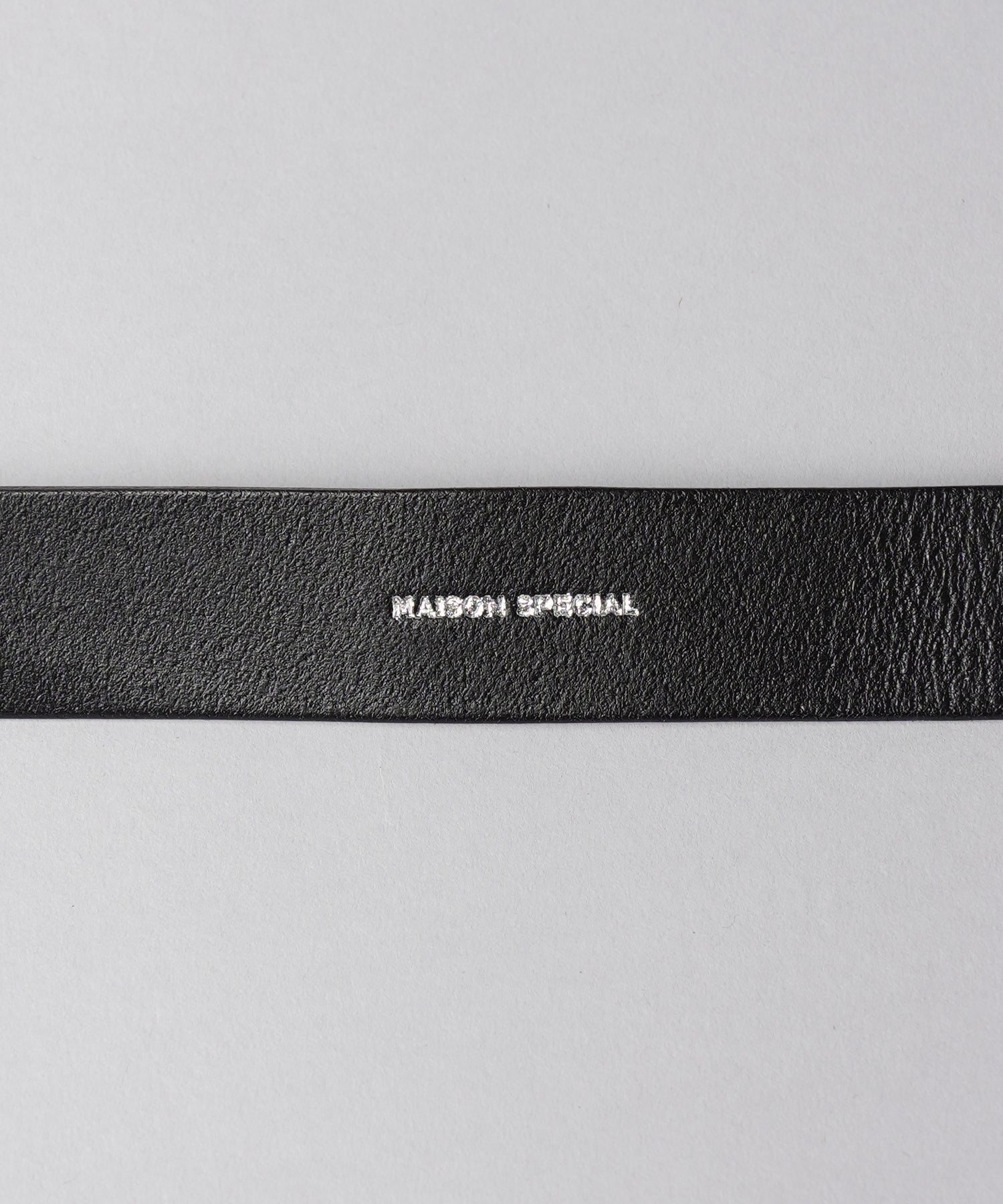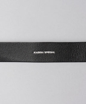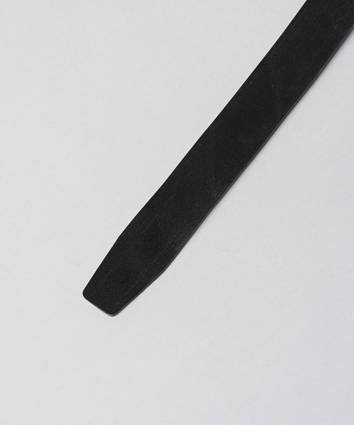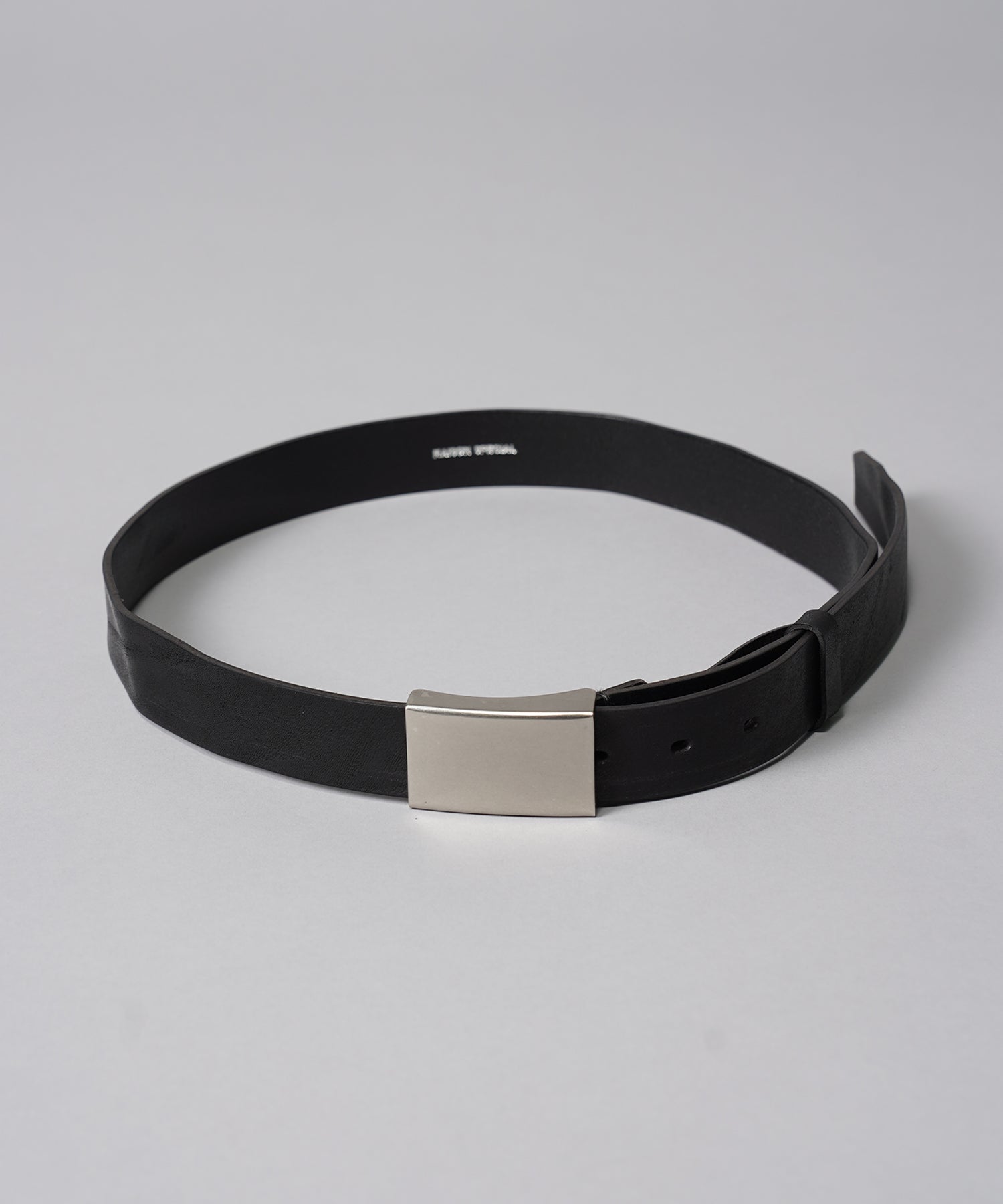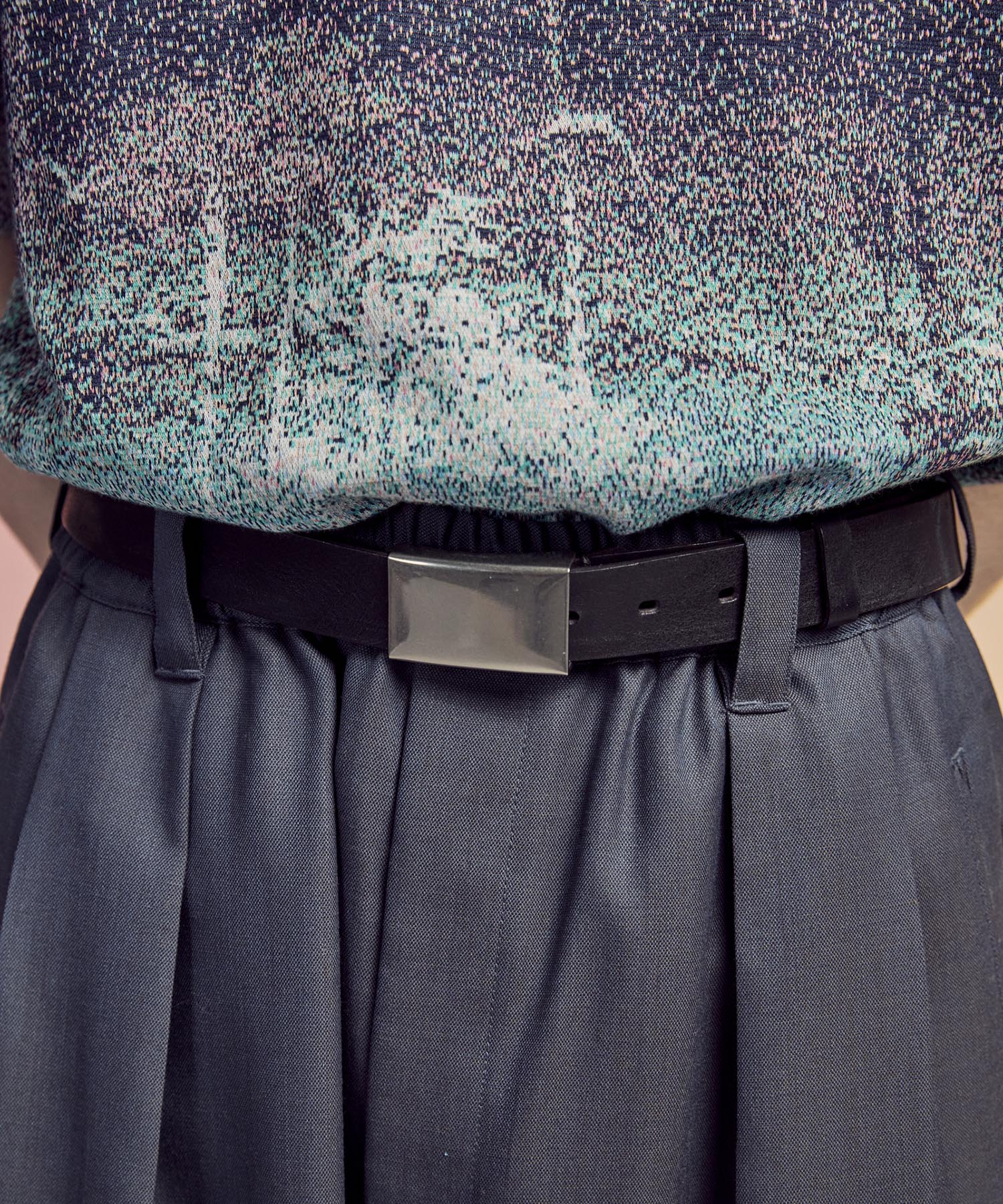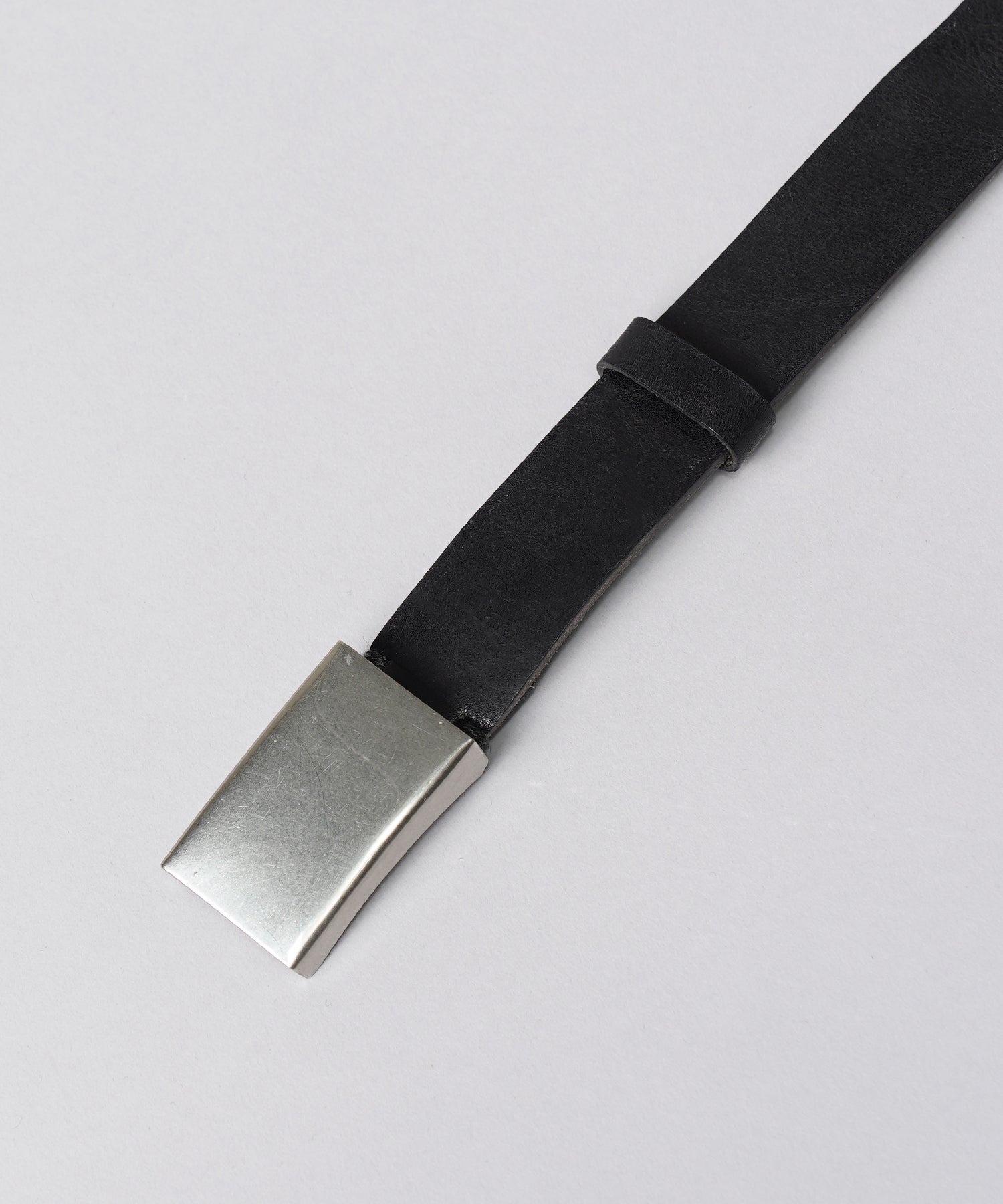 ■トップのプレートバックルがスタイリングのアクセントとして活躍するレザーベルト。