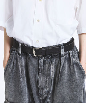 ■スタイリングのアクセントとして活躍するレザーベルトは、厚みのある牛革を採用することで洗練された重厚感を演出。
