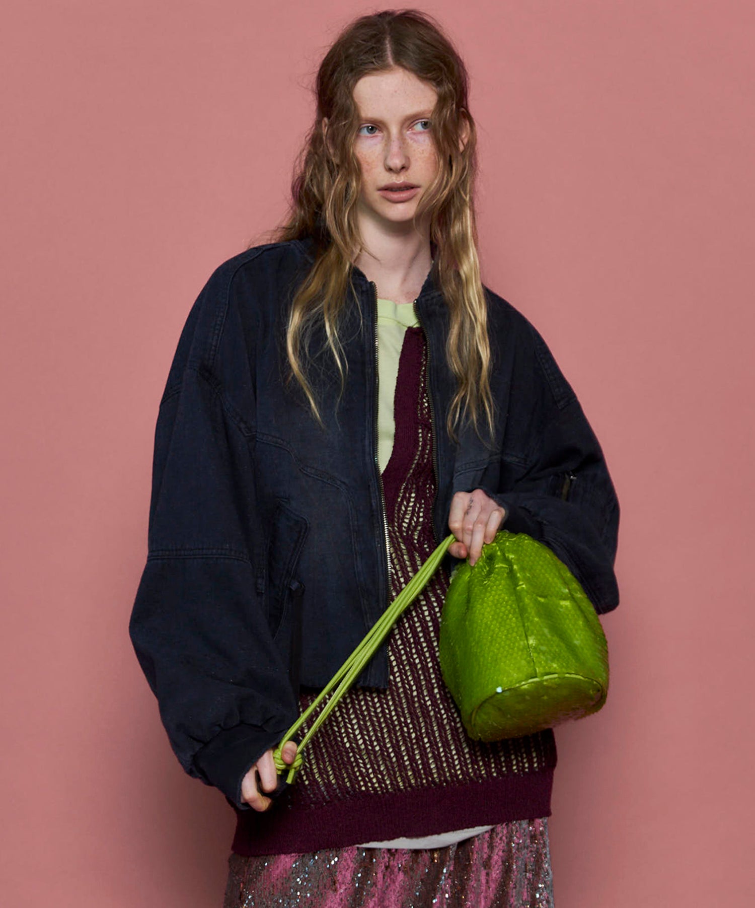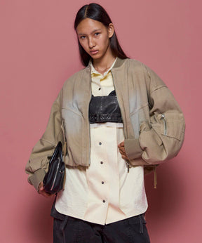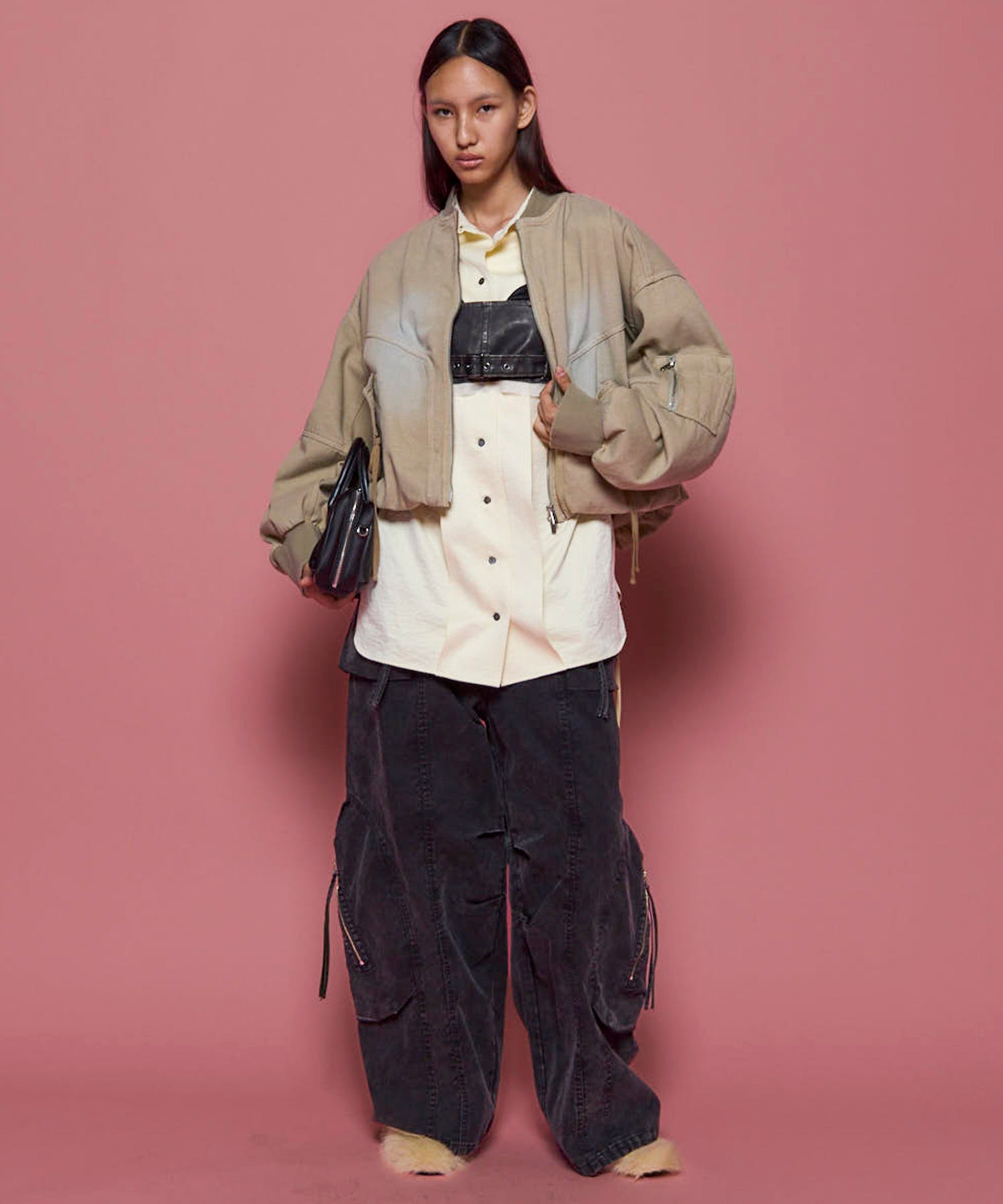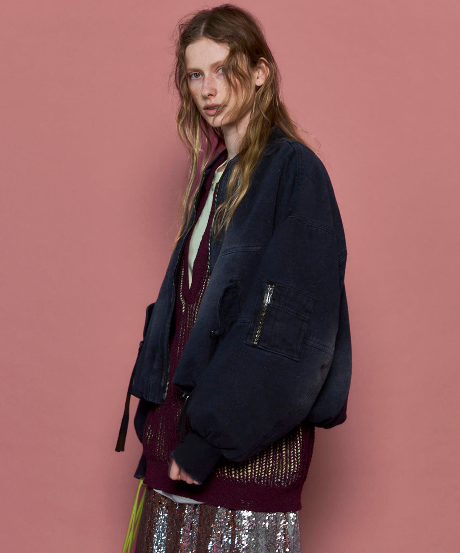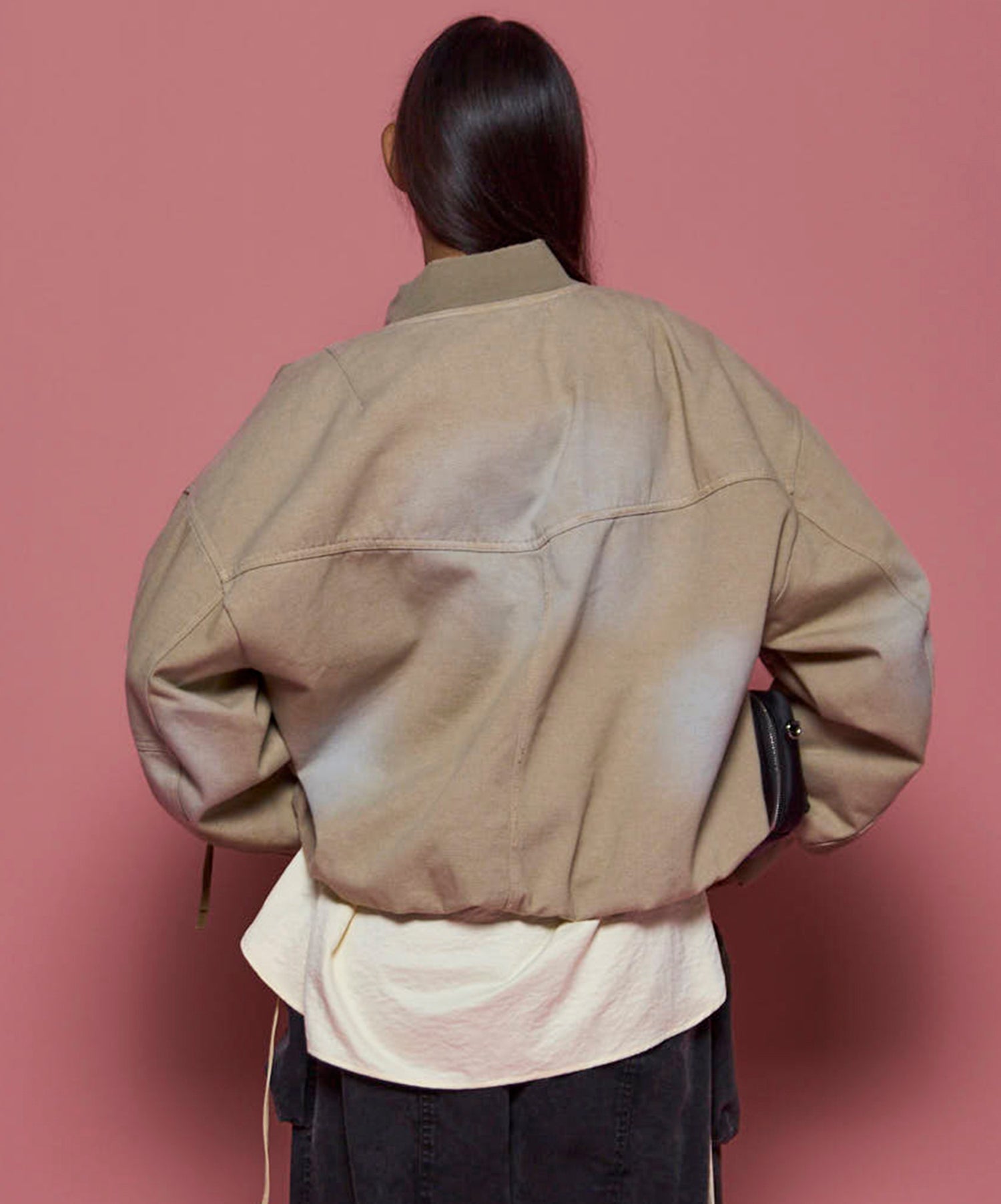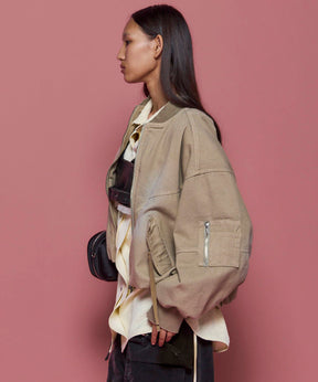 ・裾のバルーン、ドロップショルダーにワイドなボリュームスリーブ、ややショート丈のバランスが今の気分にマッチしたMA-1。