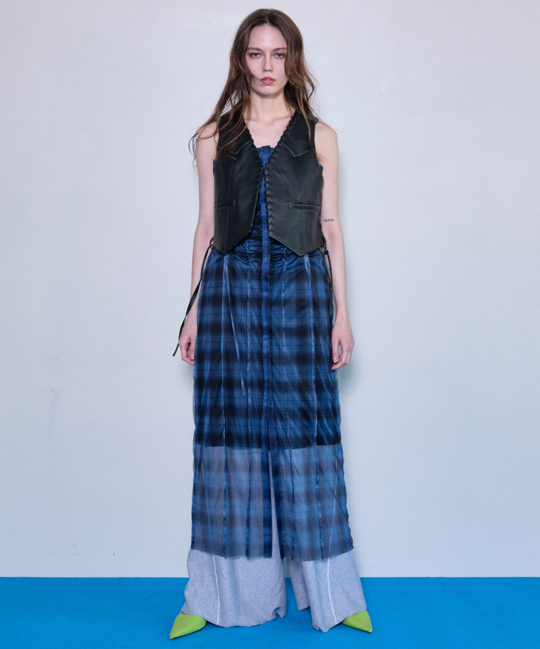 シンプルなデザインながらも、サイドのレースアップディテールが女性らしいシルエットを演出します。
